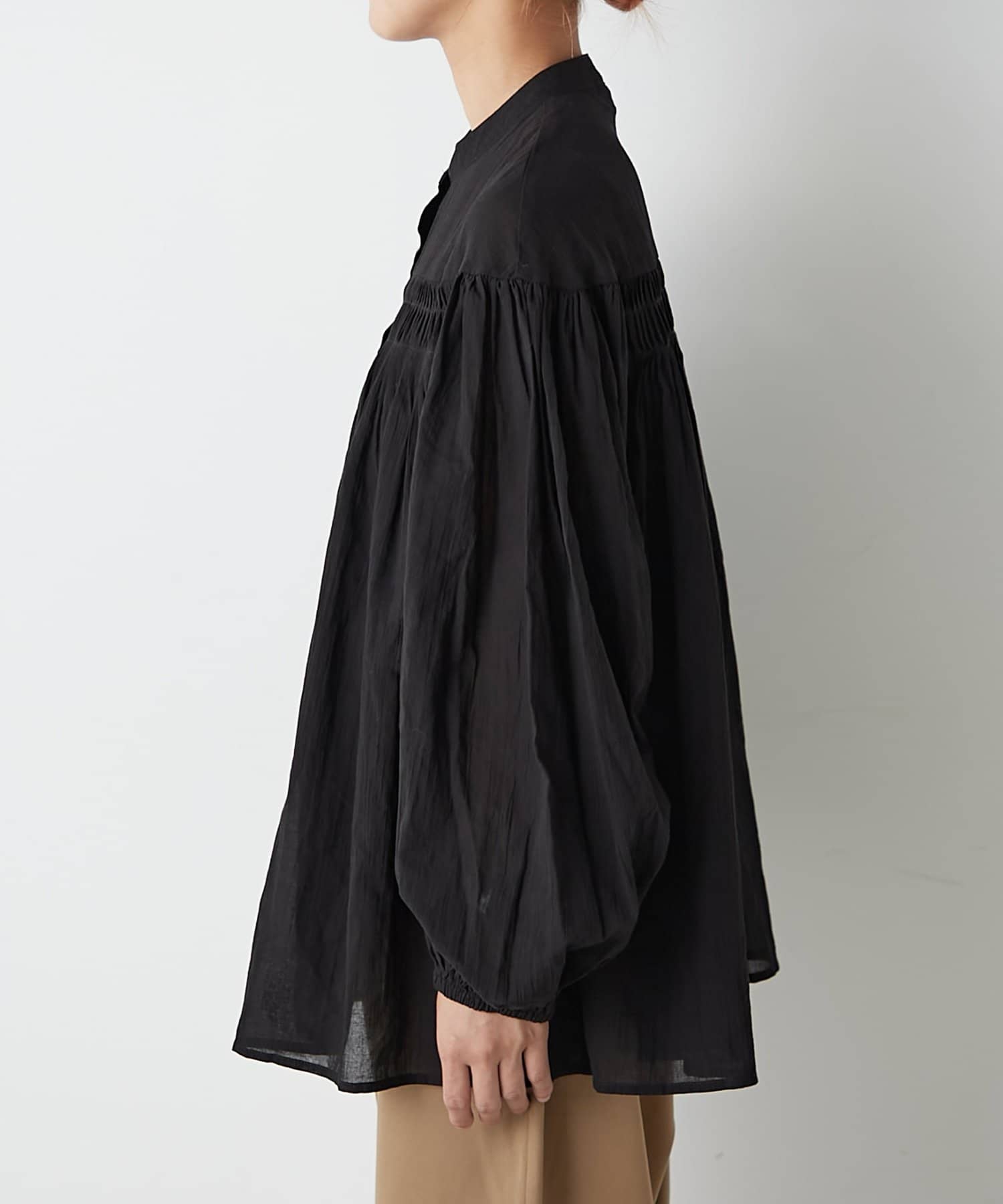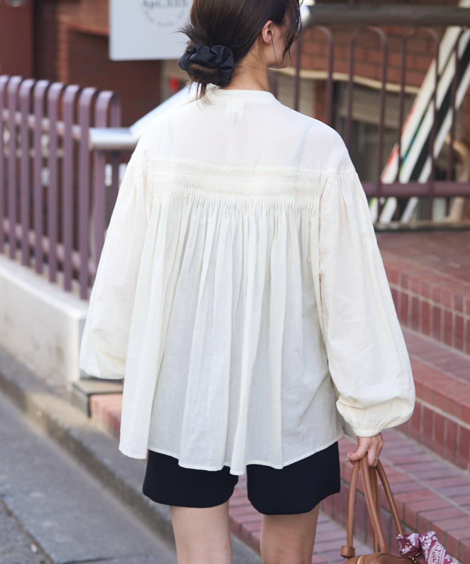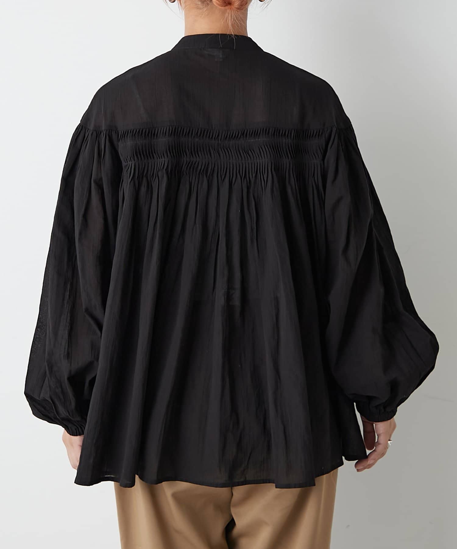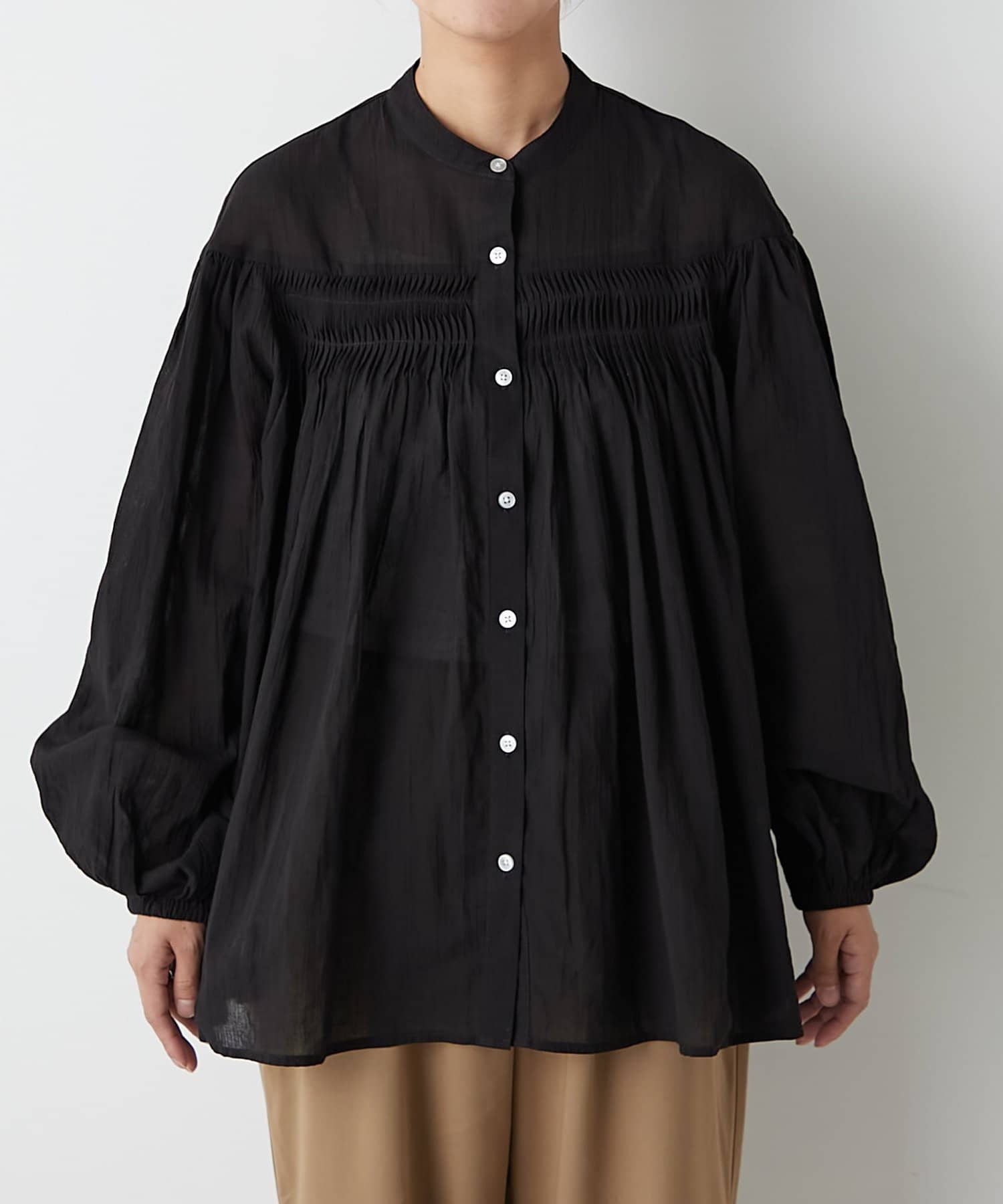 胸元のタックデザインが目を惹く1枚。
