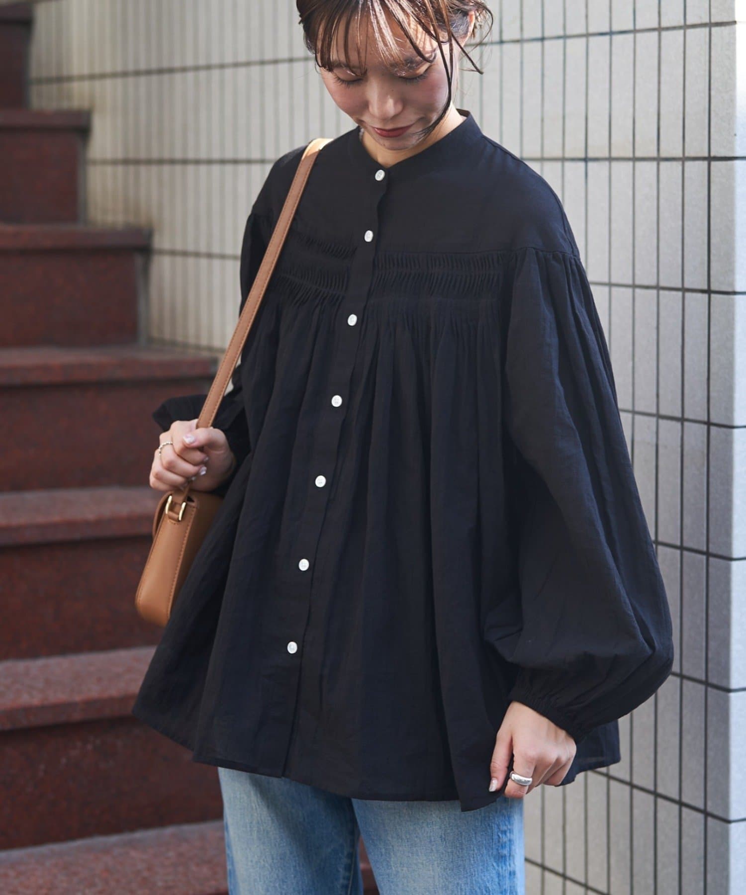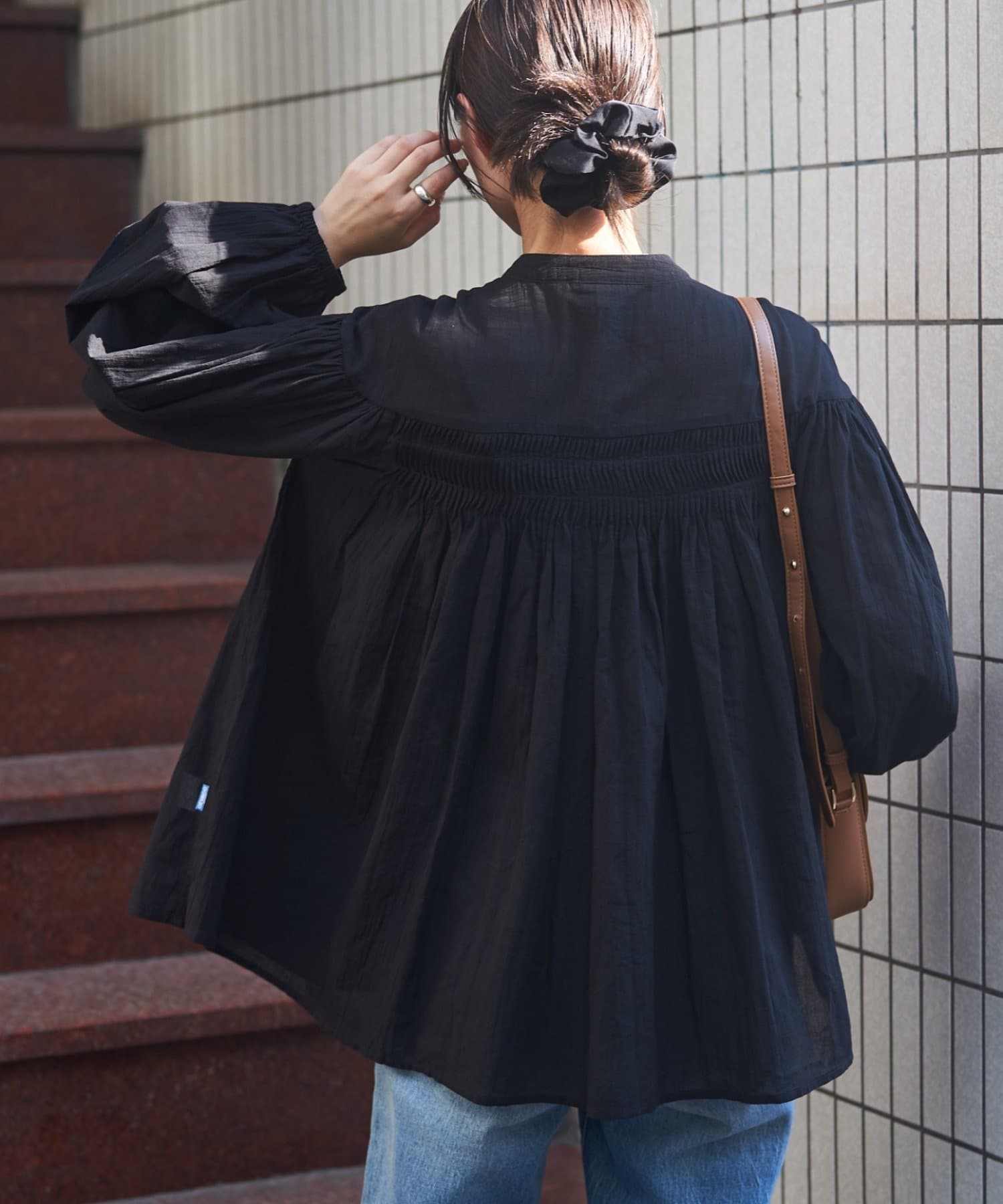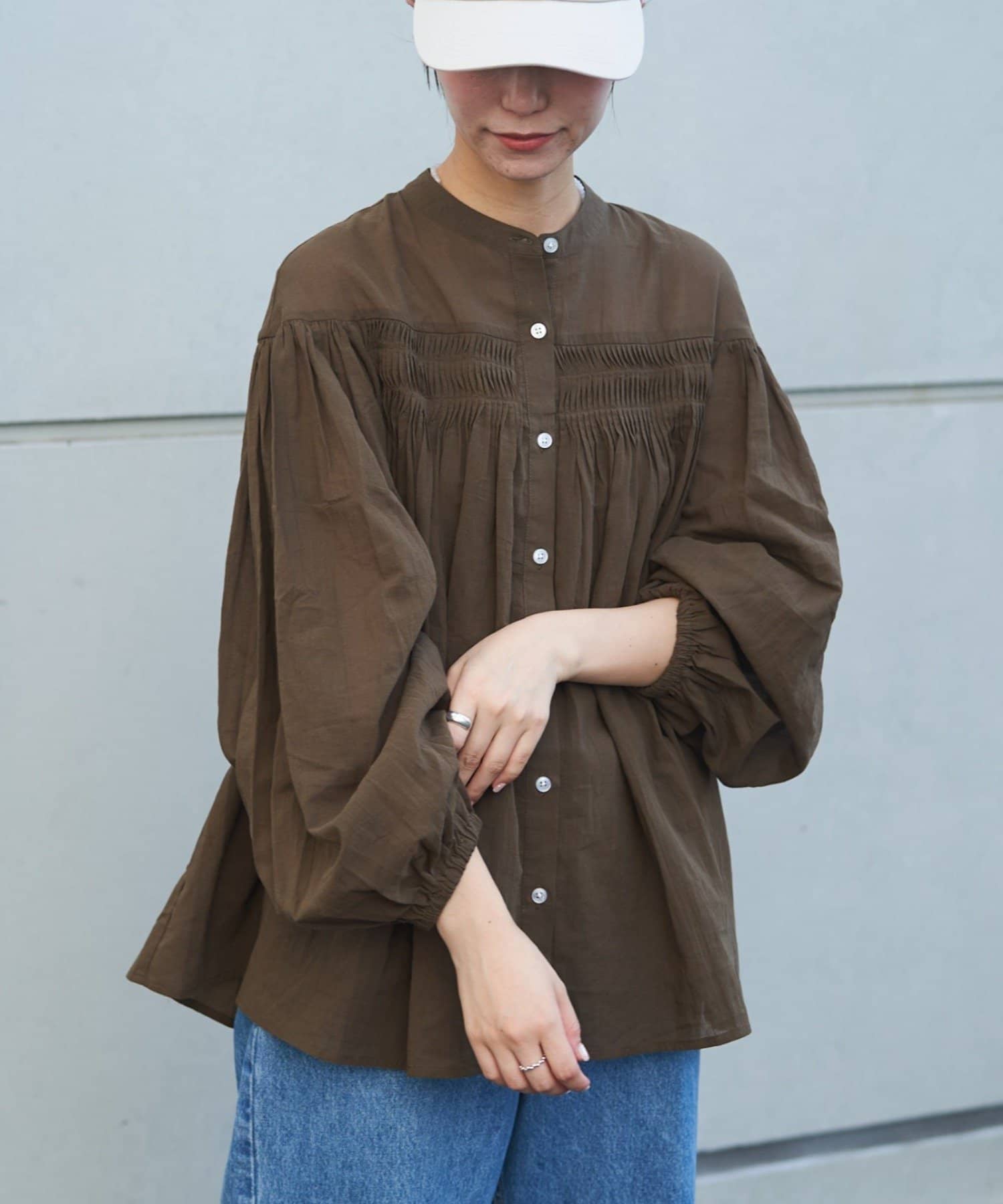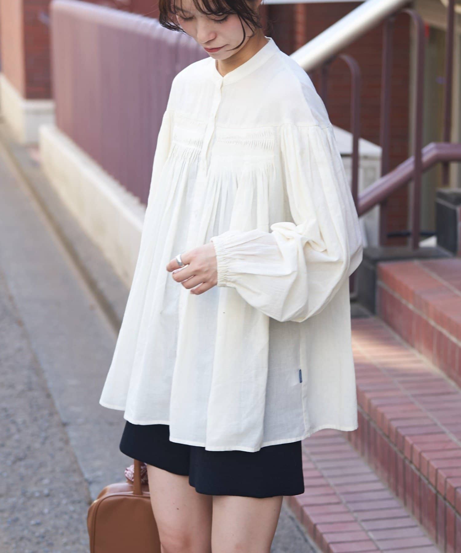 胸元のタックデザインが目を惹く1枚。