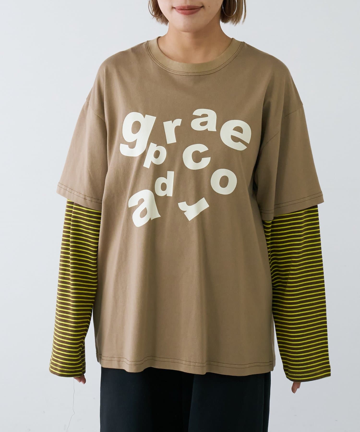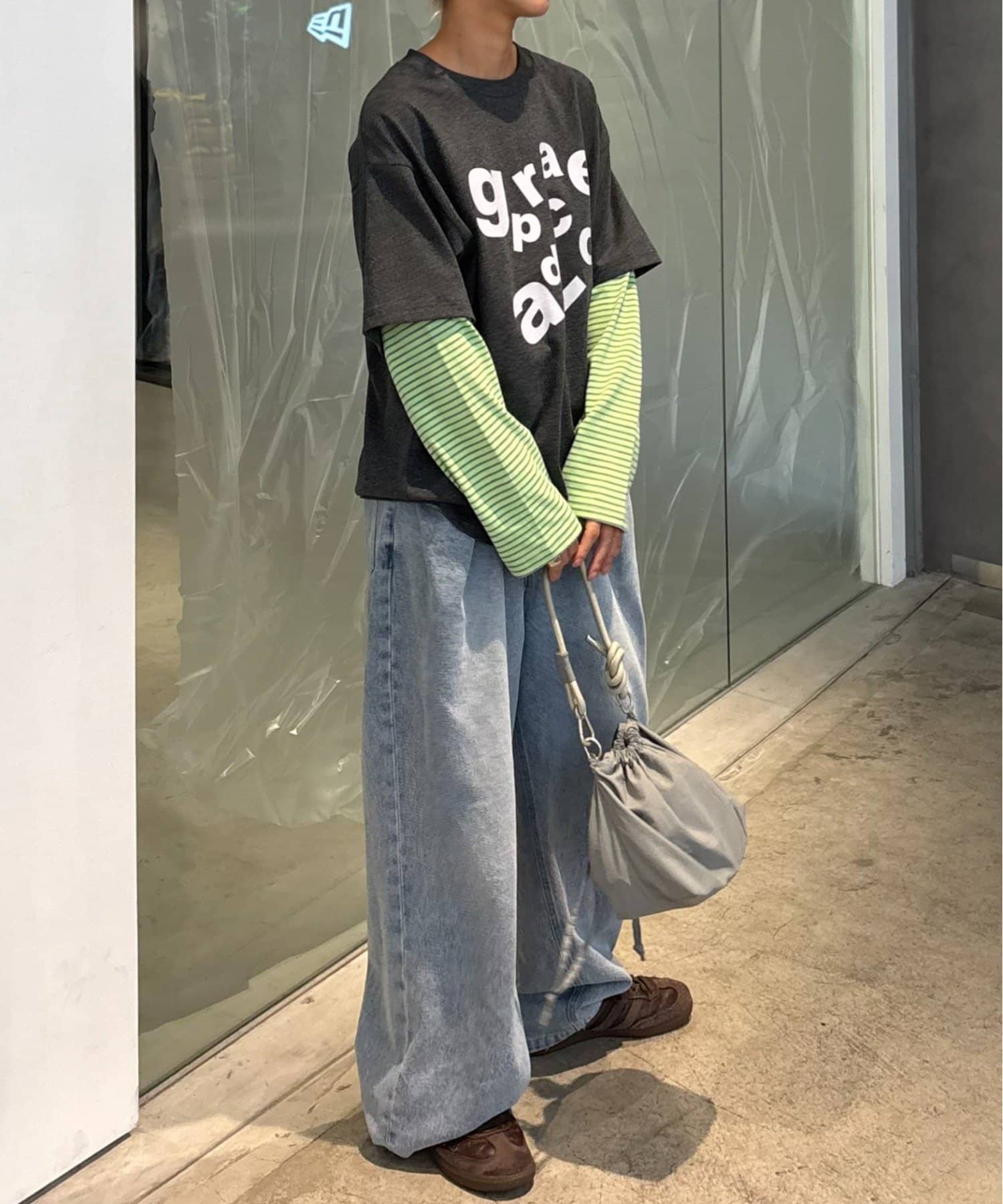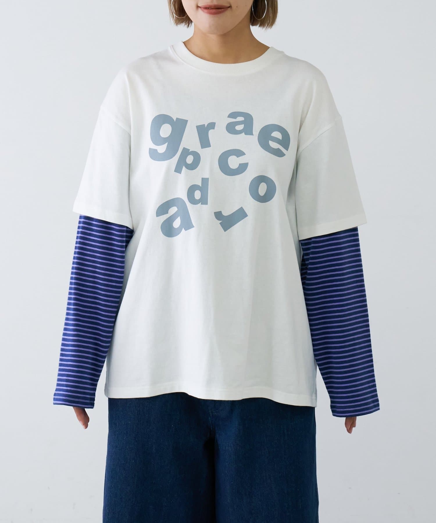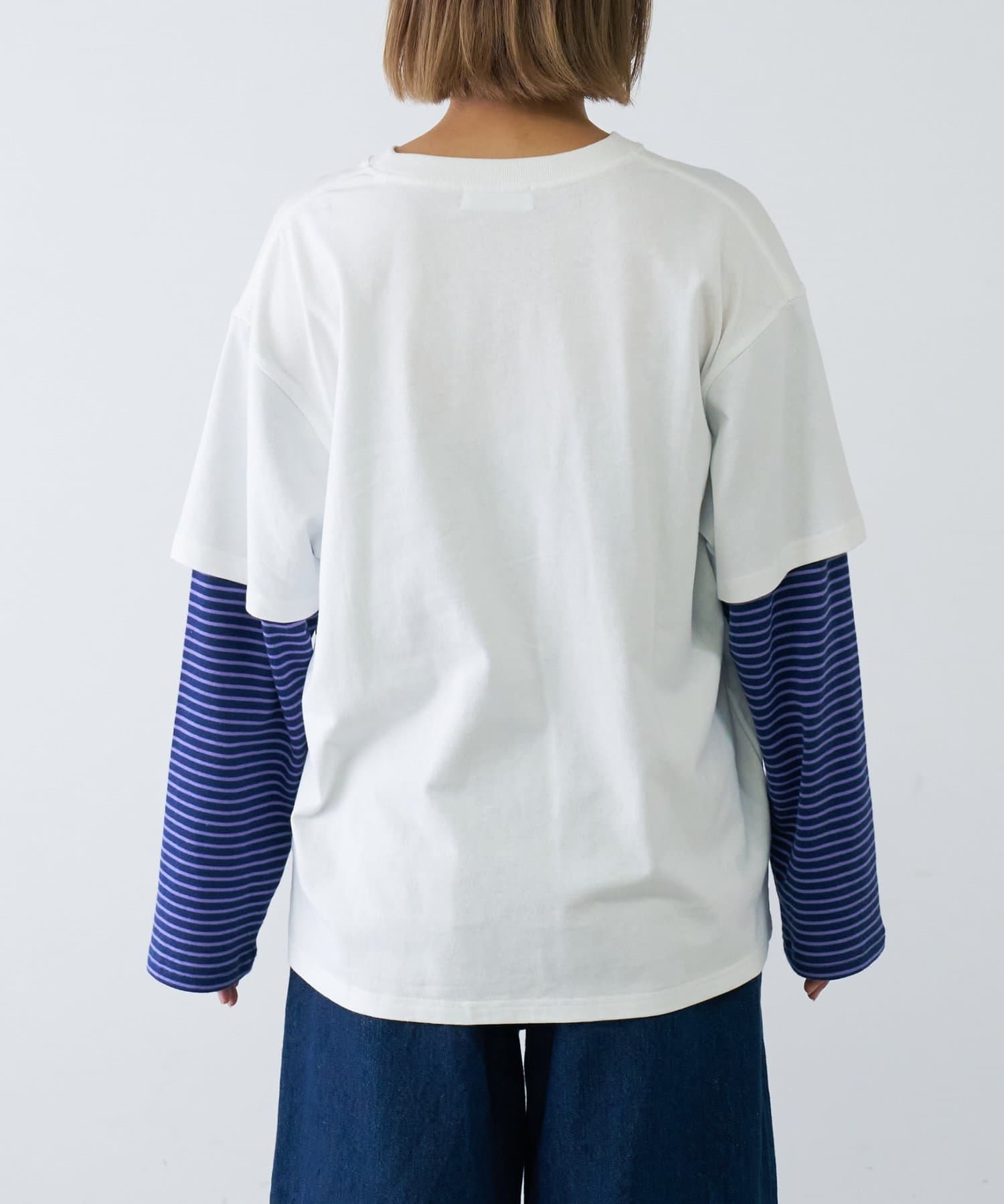 【UNISEX】レイヤードボーダーロゴロンTEE