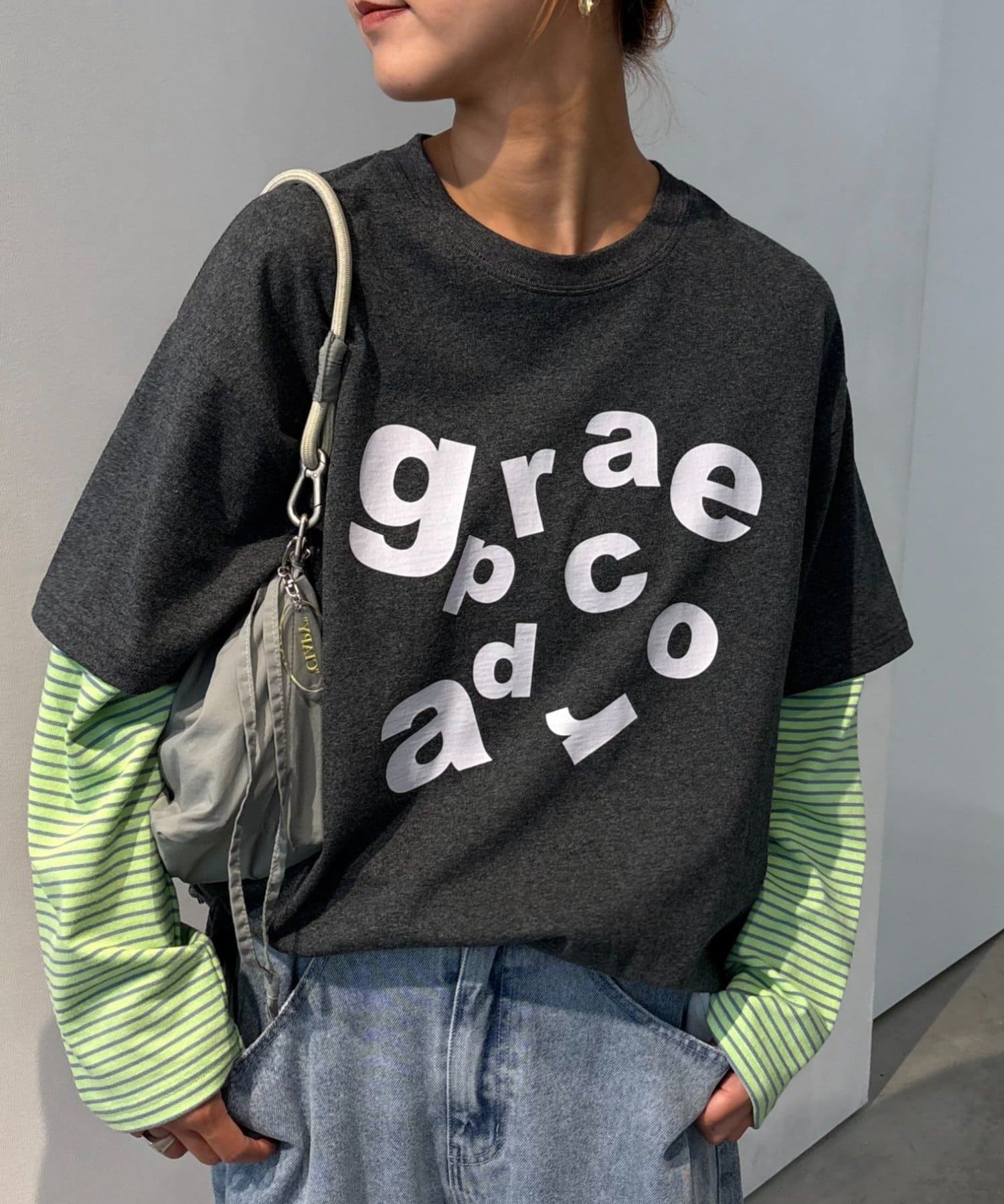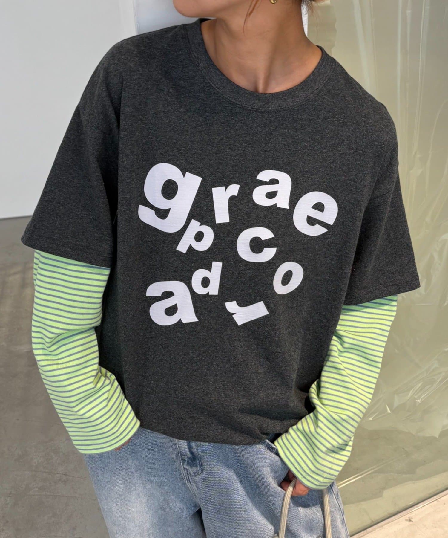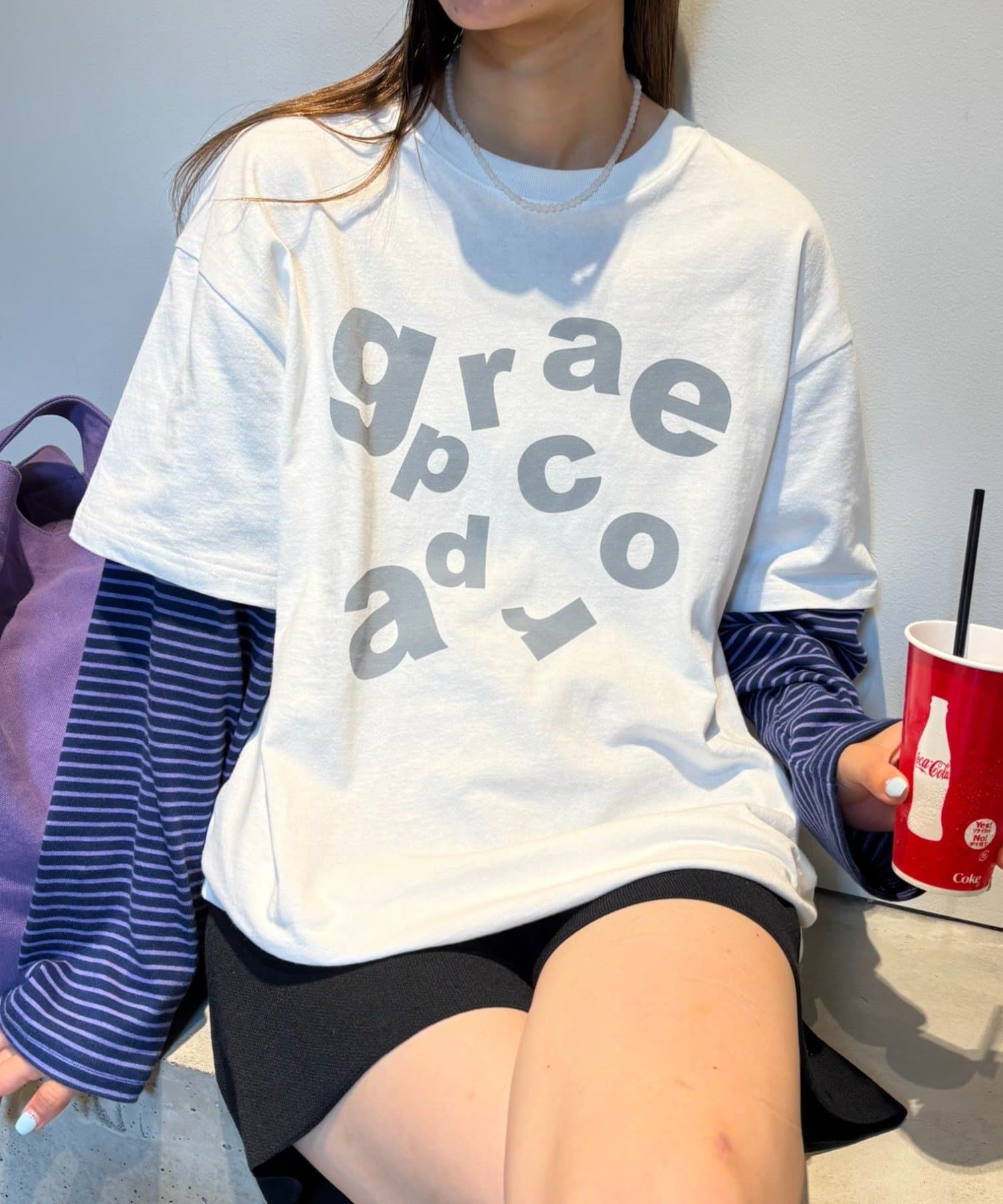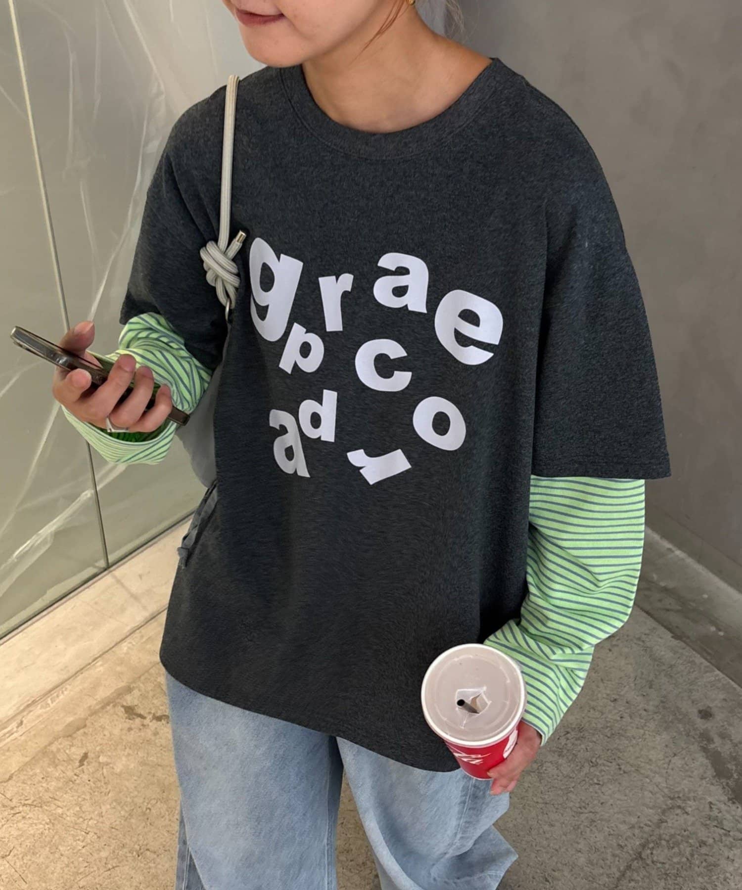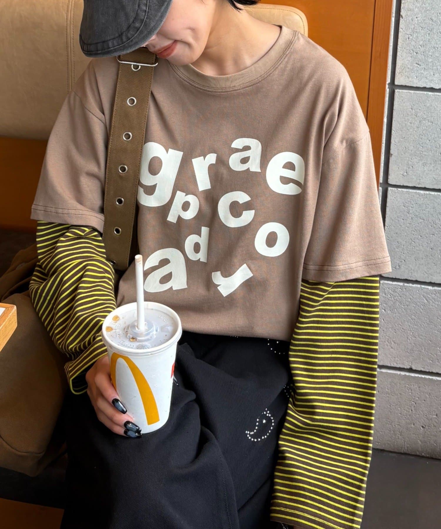 【UNISEX】レイヤードボーダーロゴロンTEE