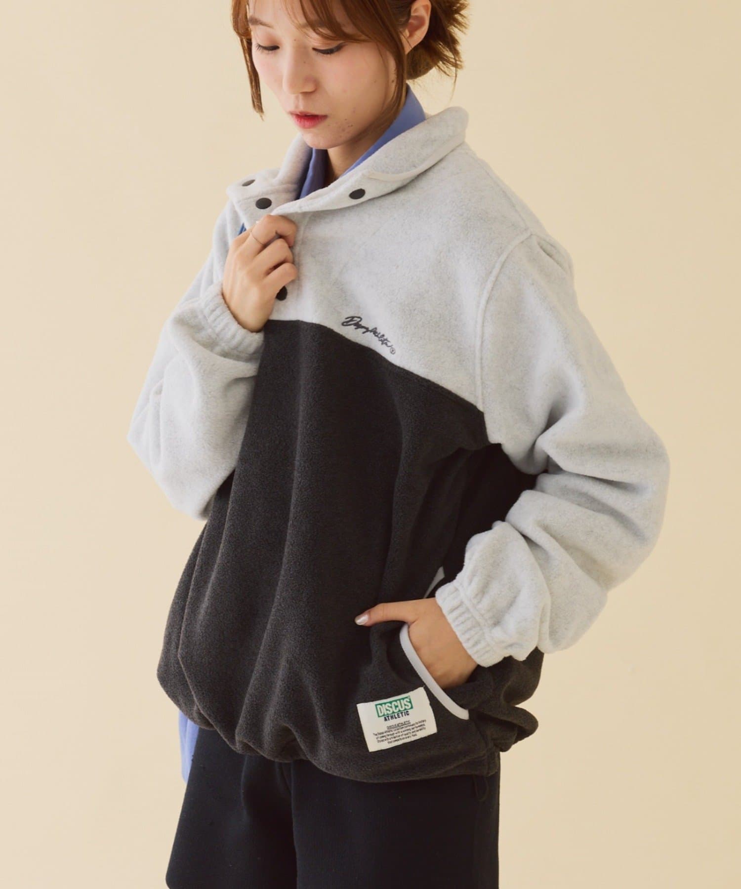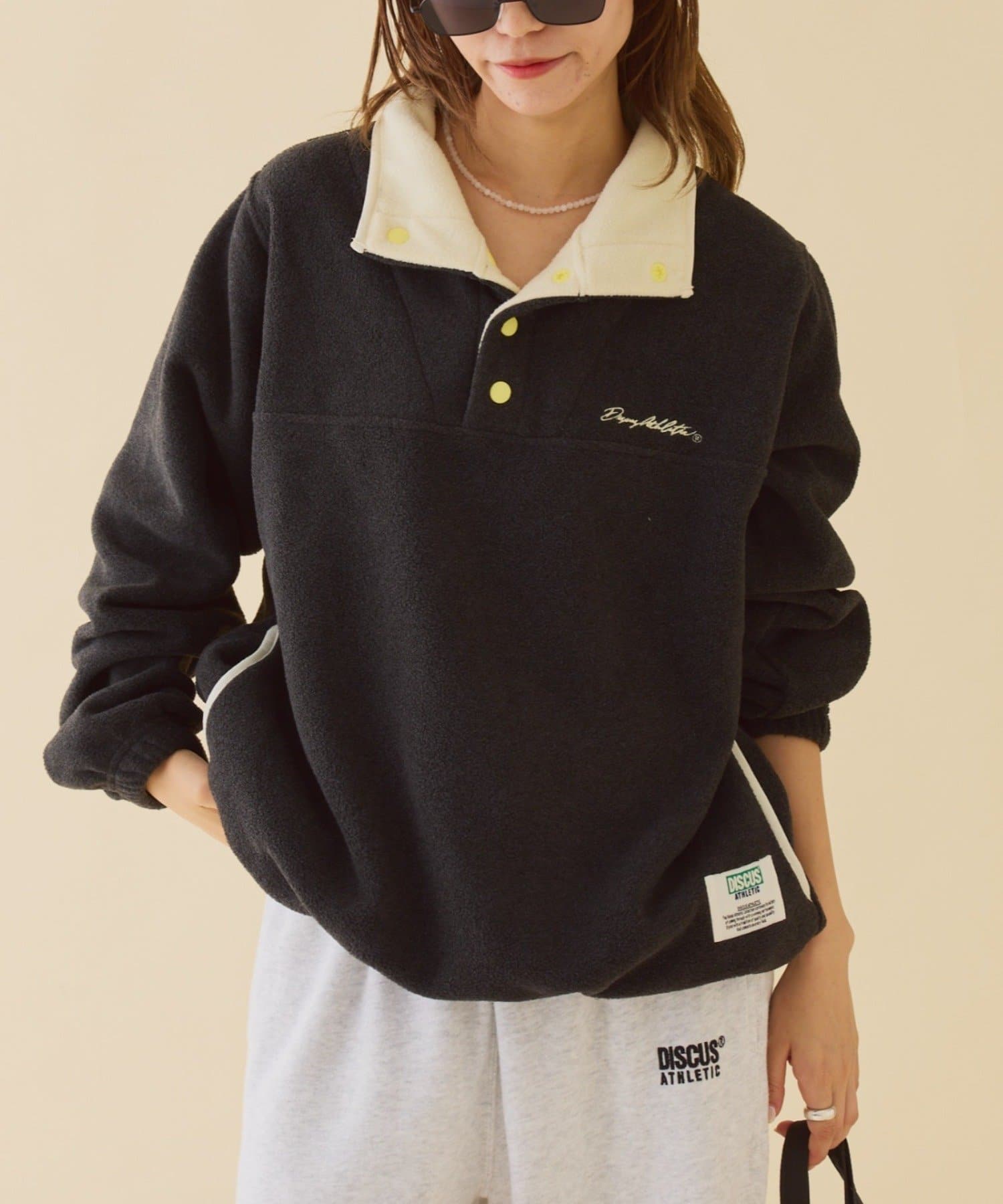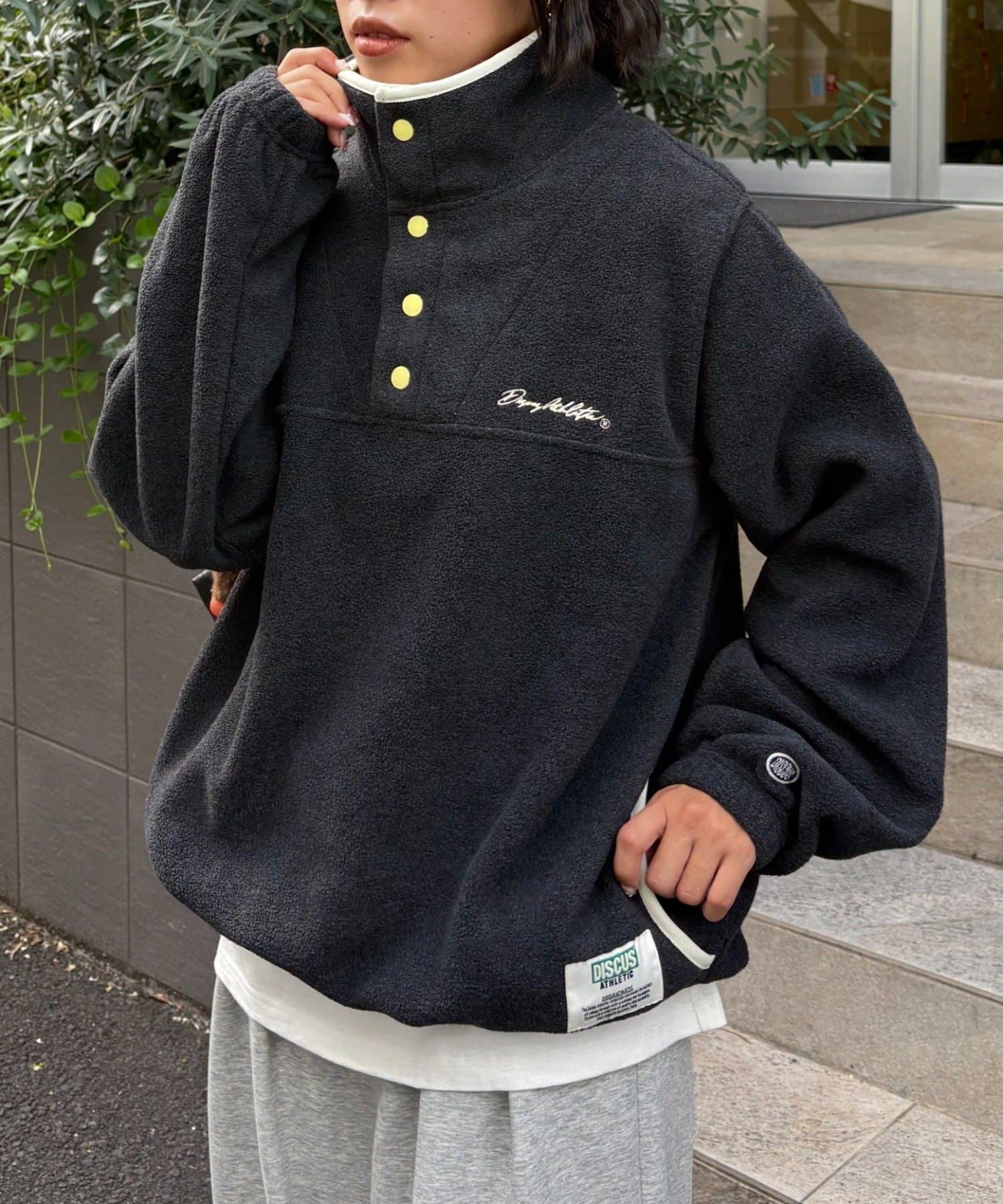 【WEB限定】【DISCUS】フリースハーフスナップ釦プルオーバー