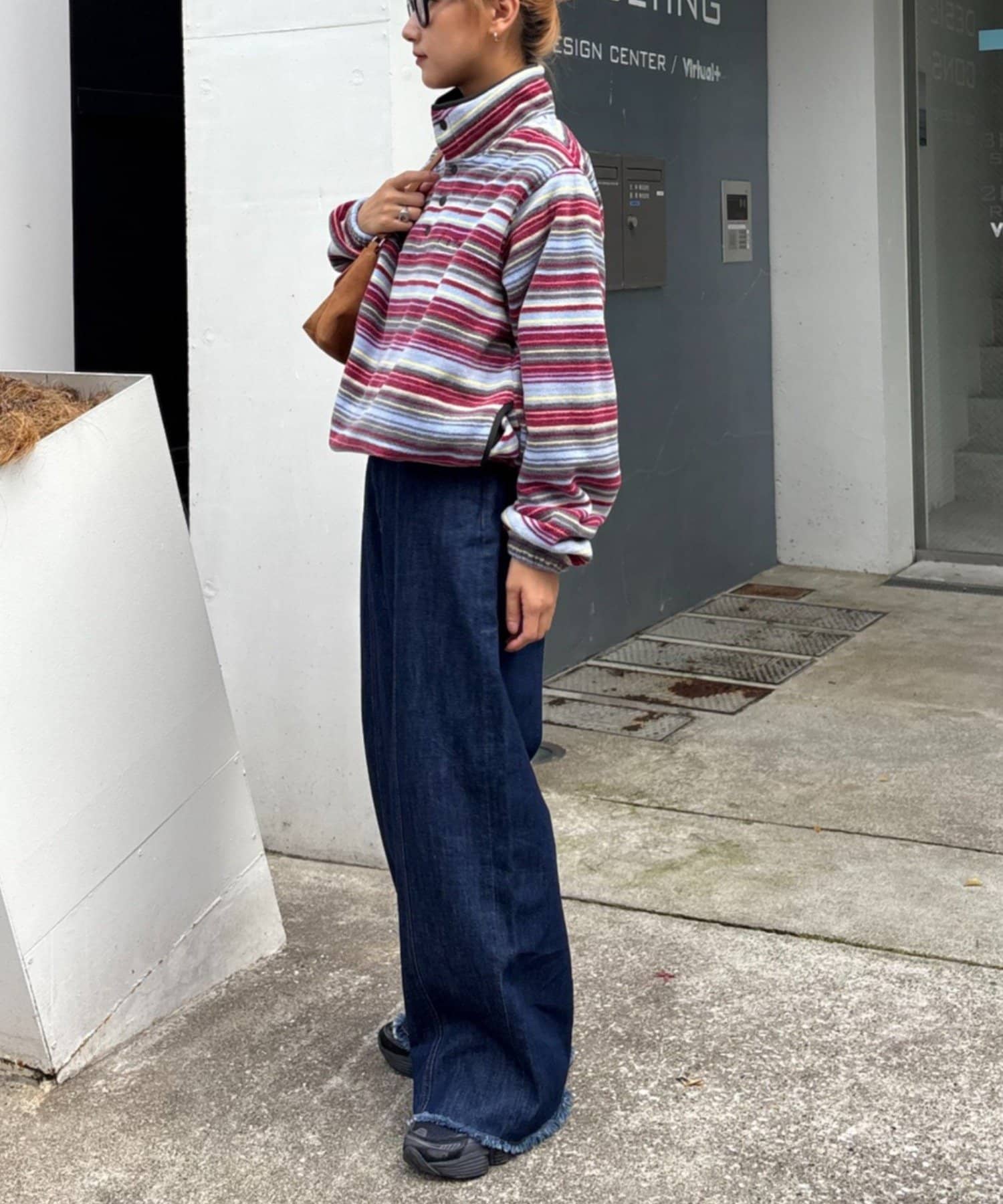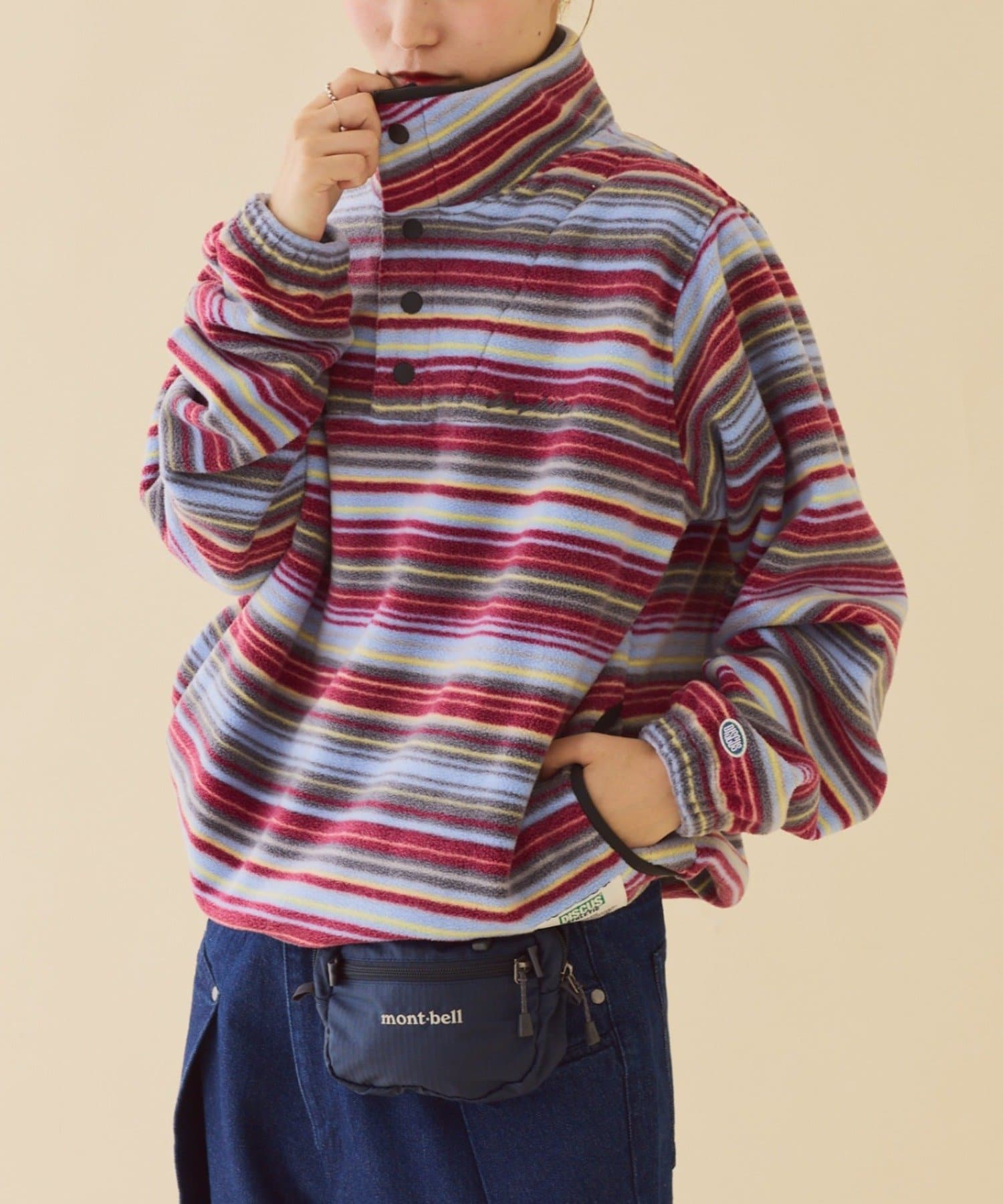 配色やボーダーなど、カラーによって異なるデザインが魅力のフリース。