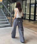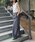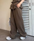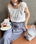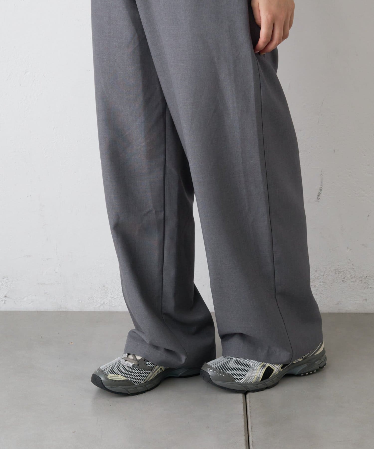 程よいワイドシルエットに加え、ウエストゴム仕様なのでストレスフリーな着心地を実現。