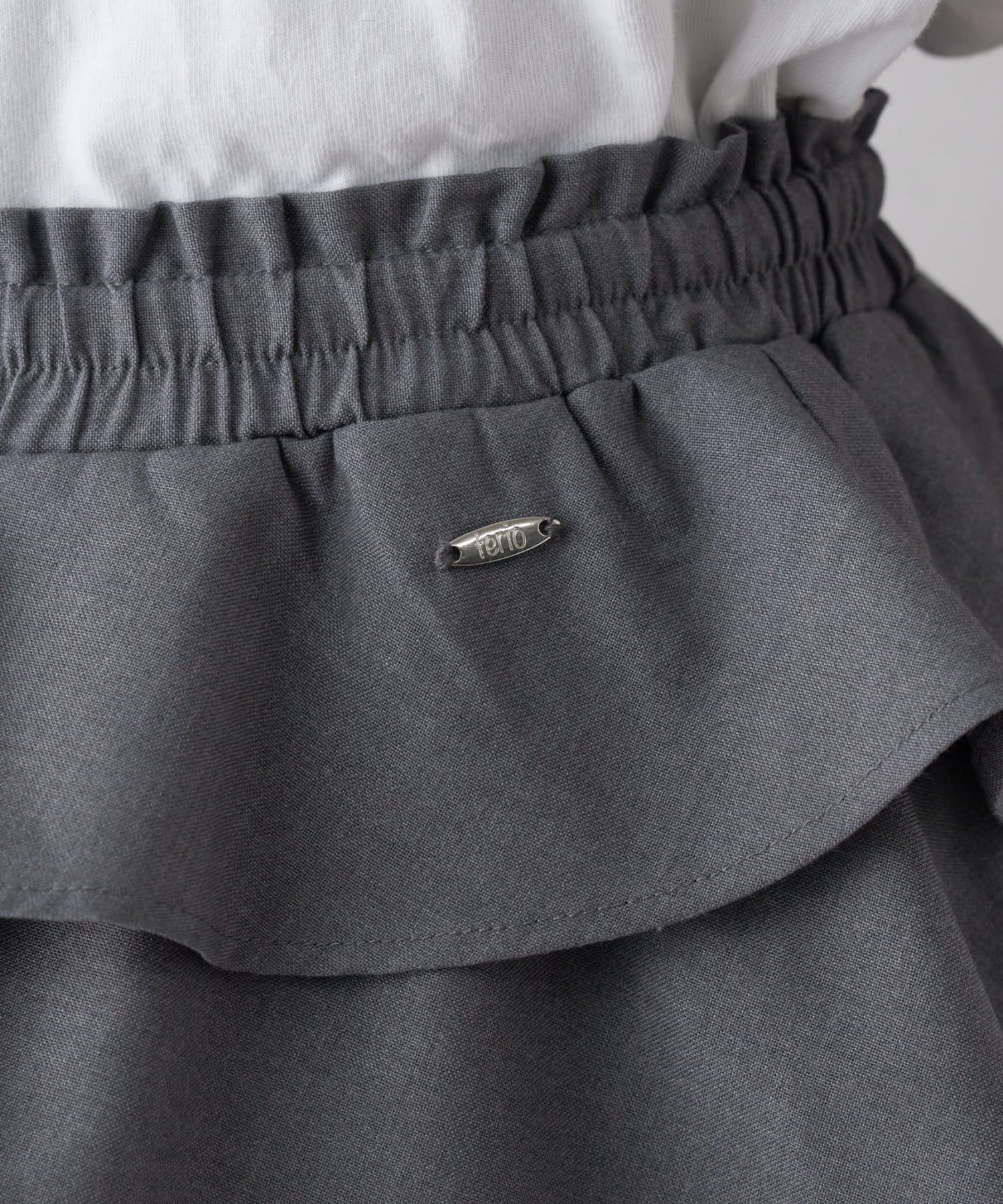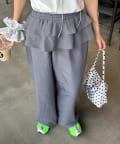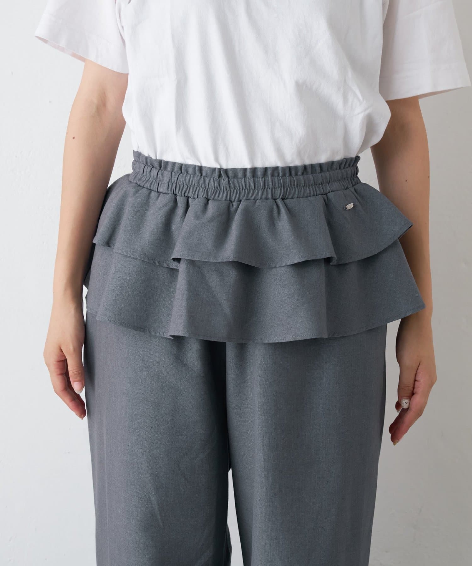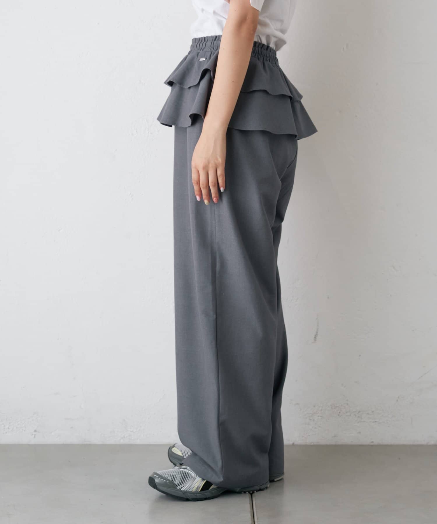 ウエストに施されたフリルデザインはスウェットやアウターと合わせたときもアクセントになるように