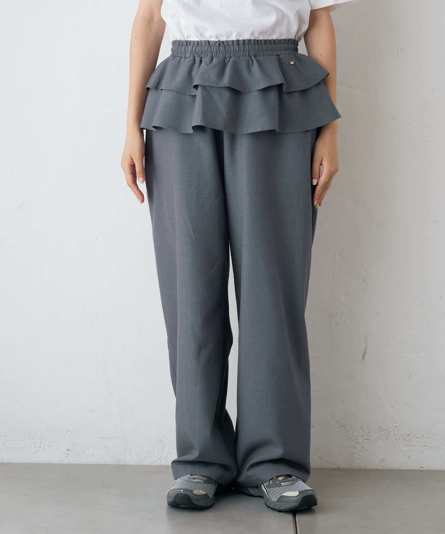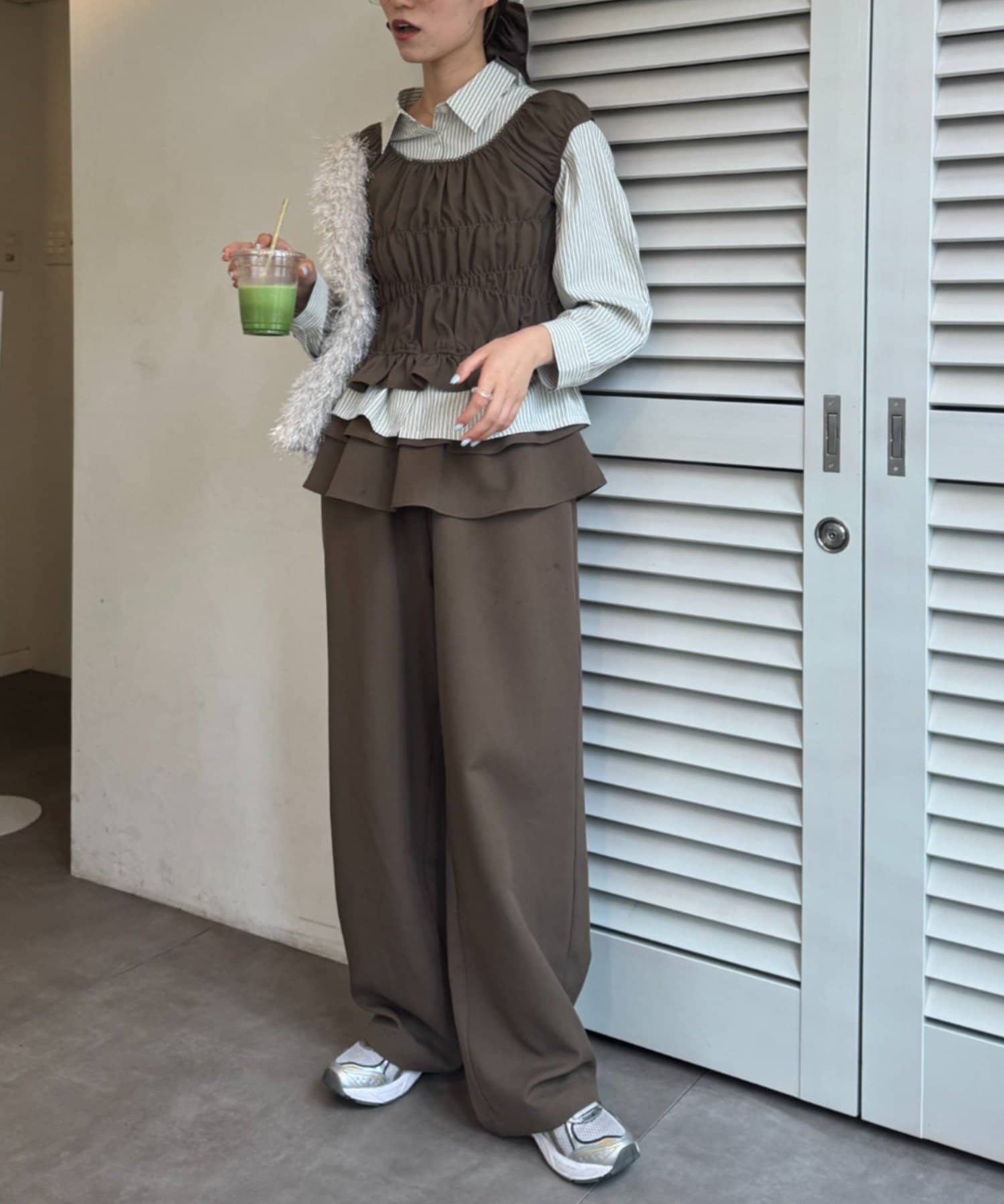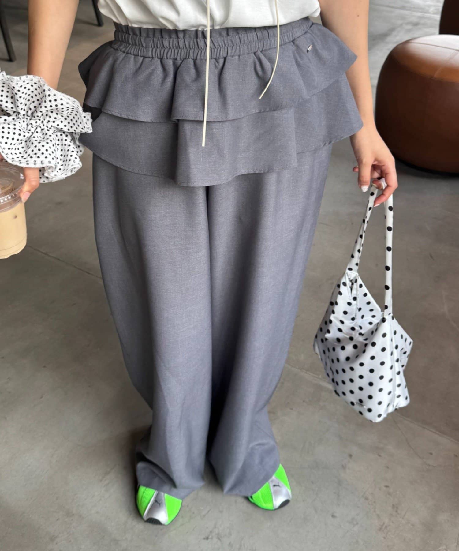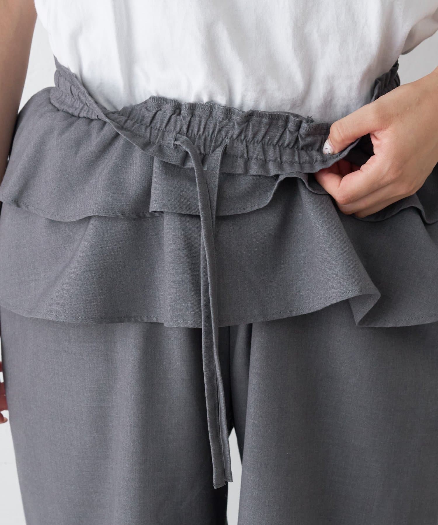 ウエストにあしらわれたフリルは、立体感にこだわりコーデのポイントになります♡
