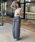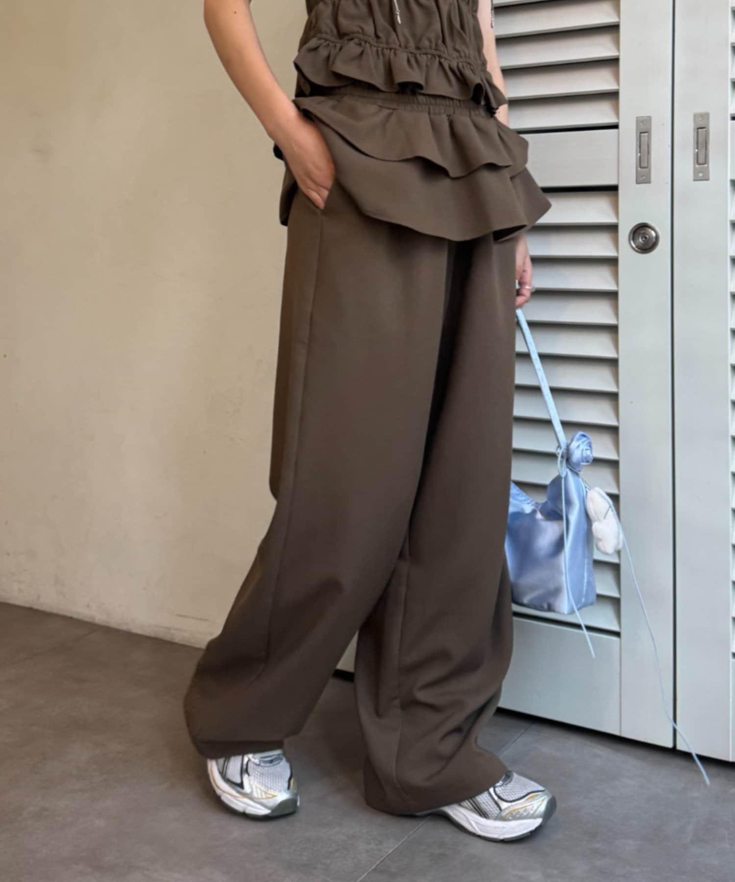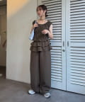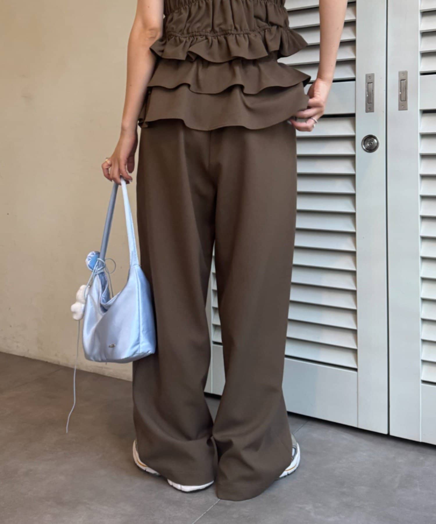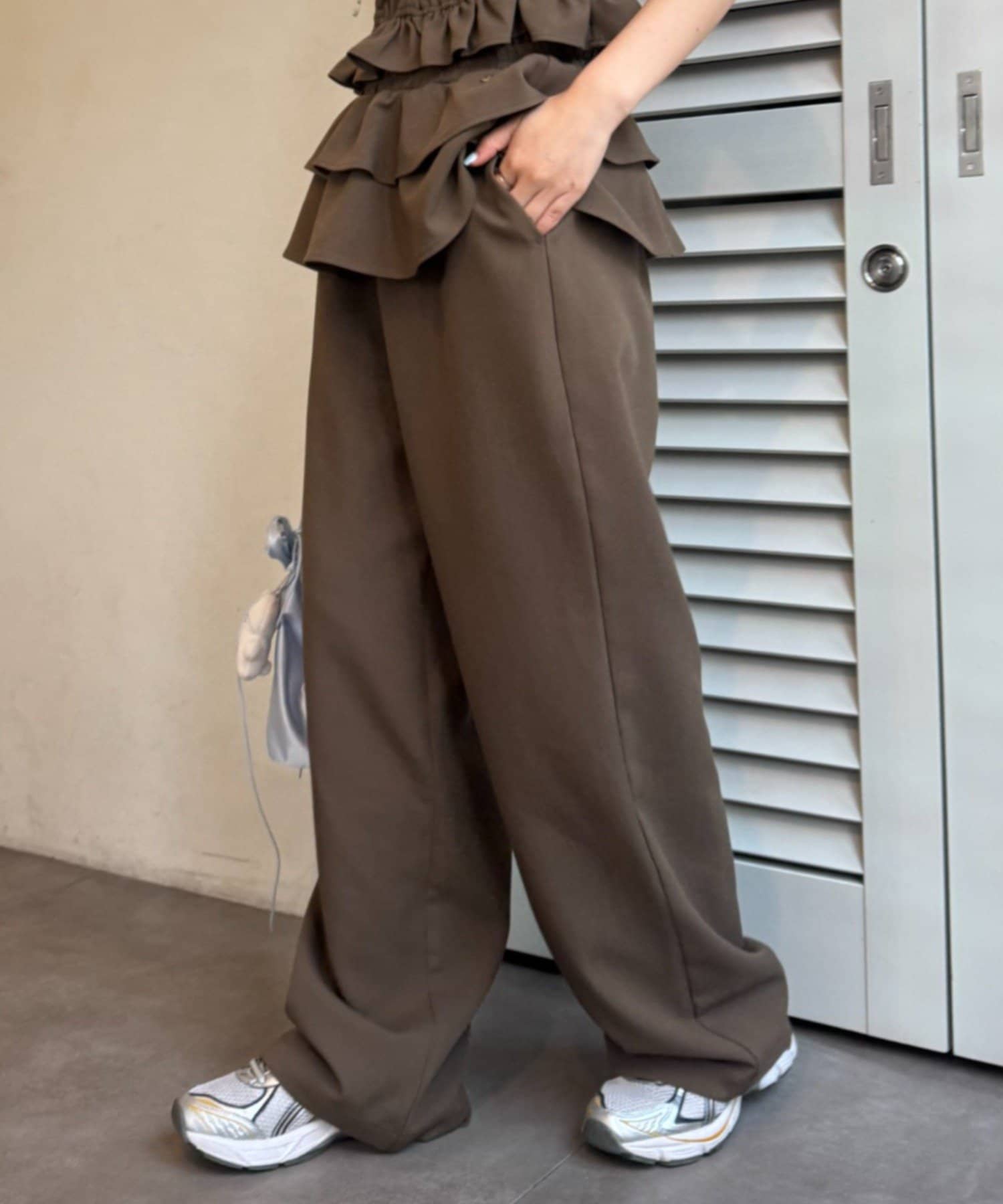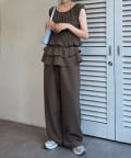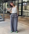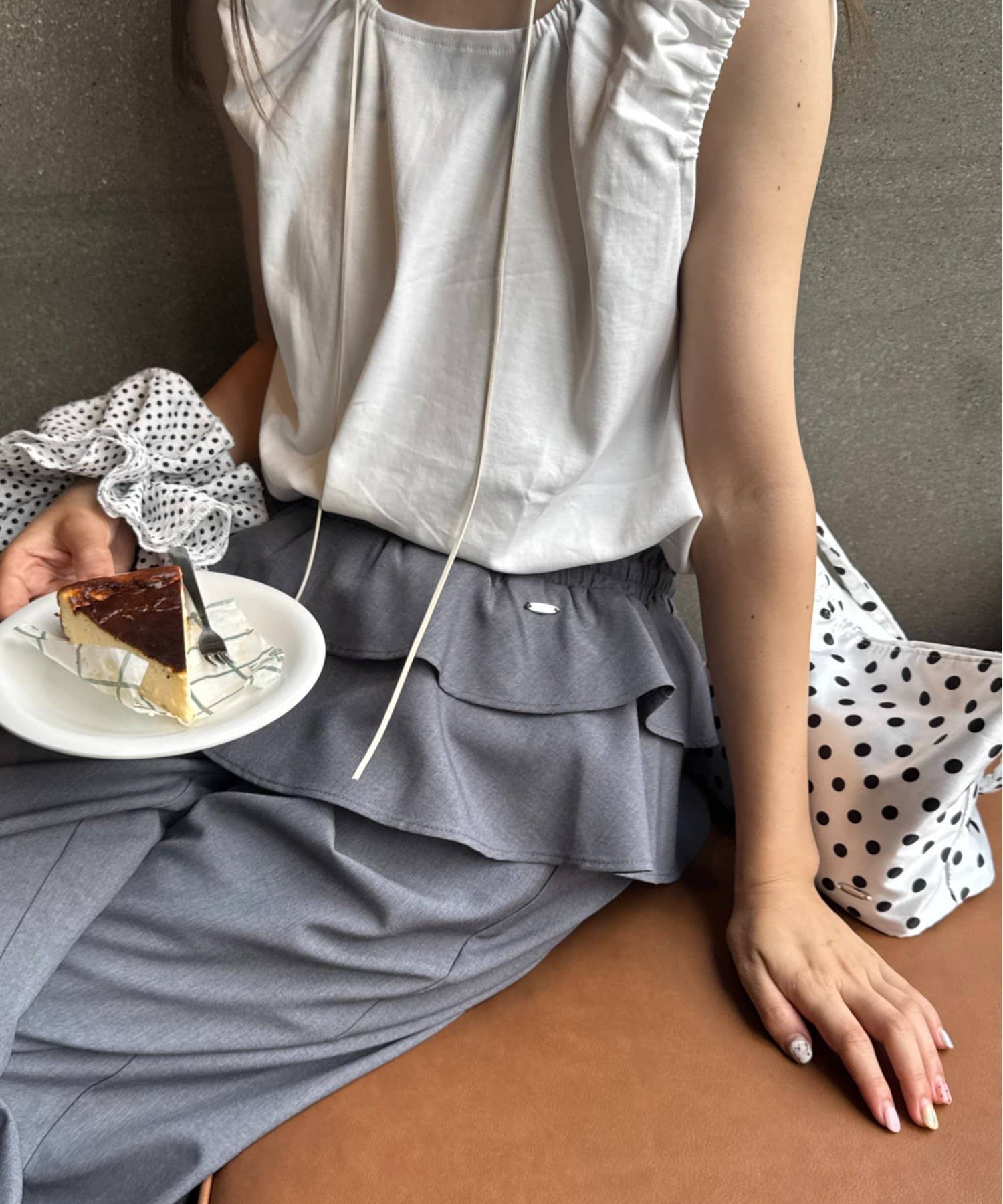 ウエストにあしらわれたフリルは、立体感にこだわりコーデのポイントになります♡