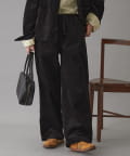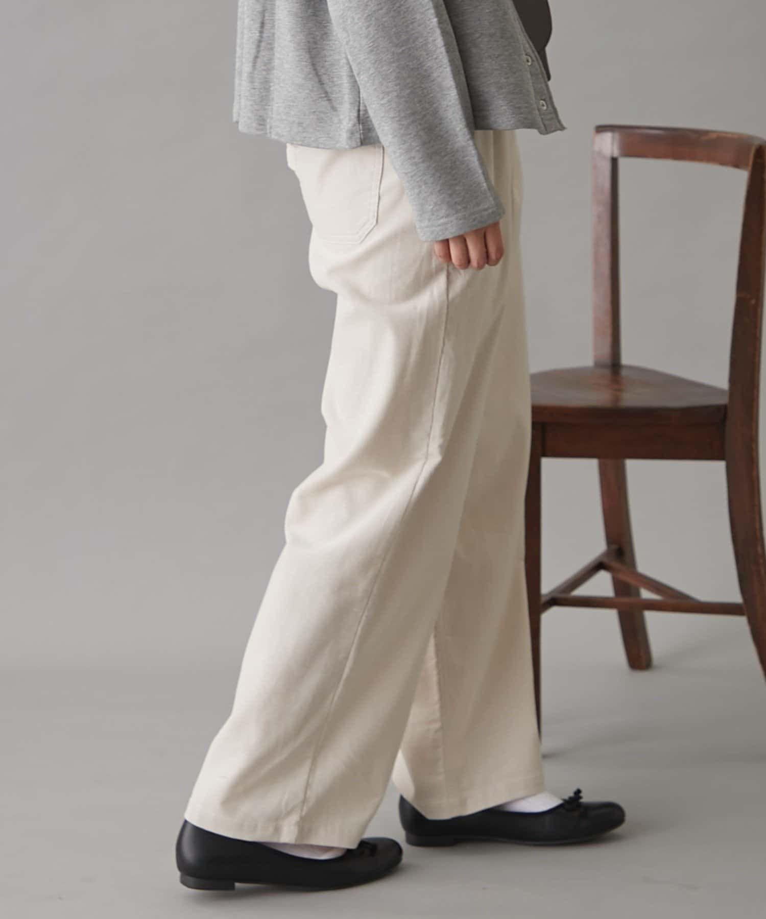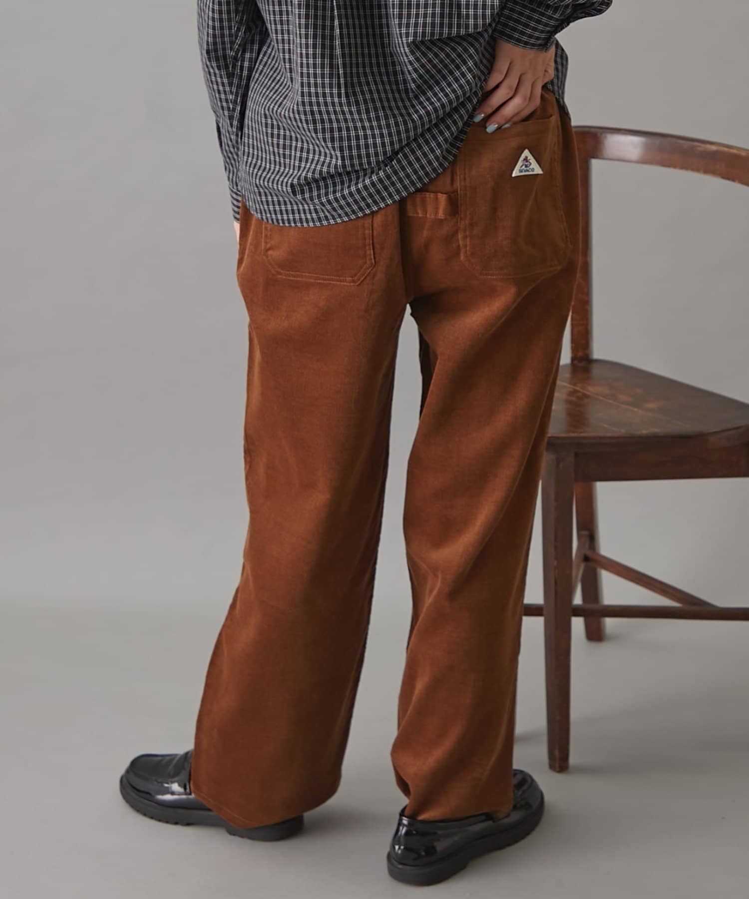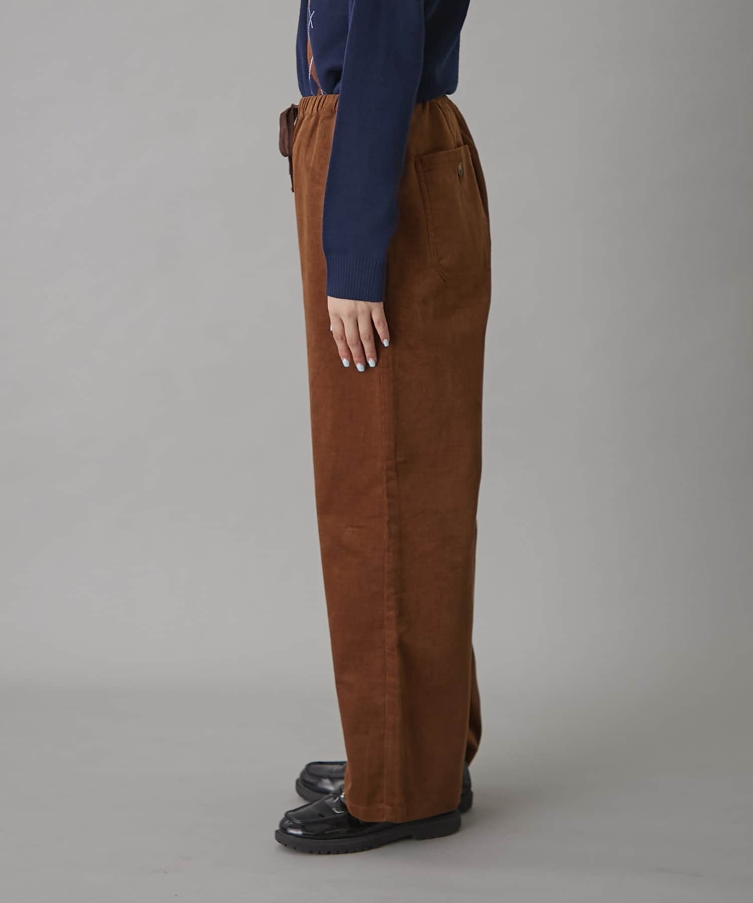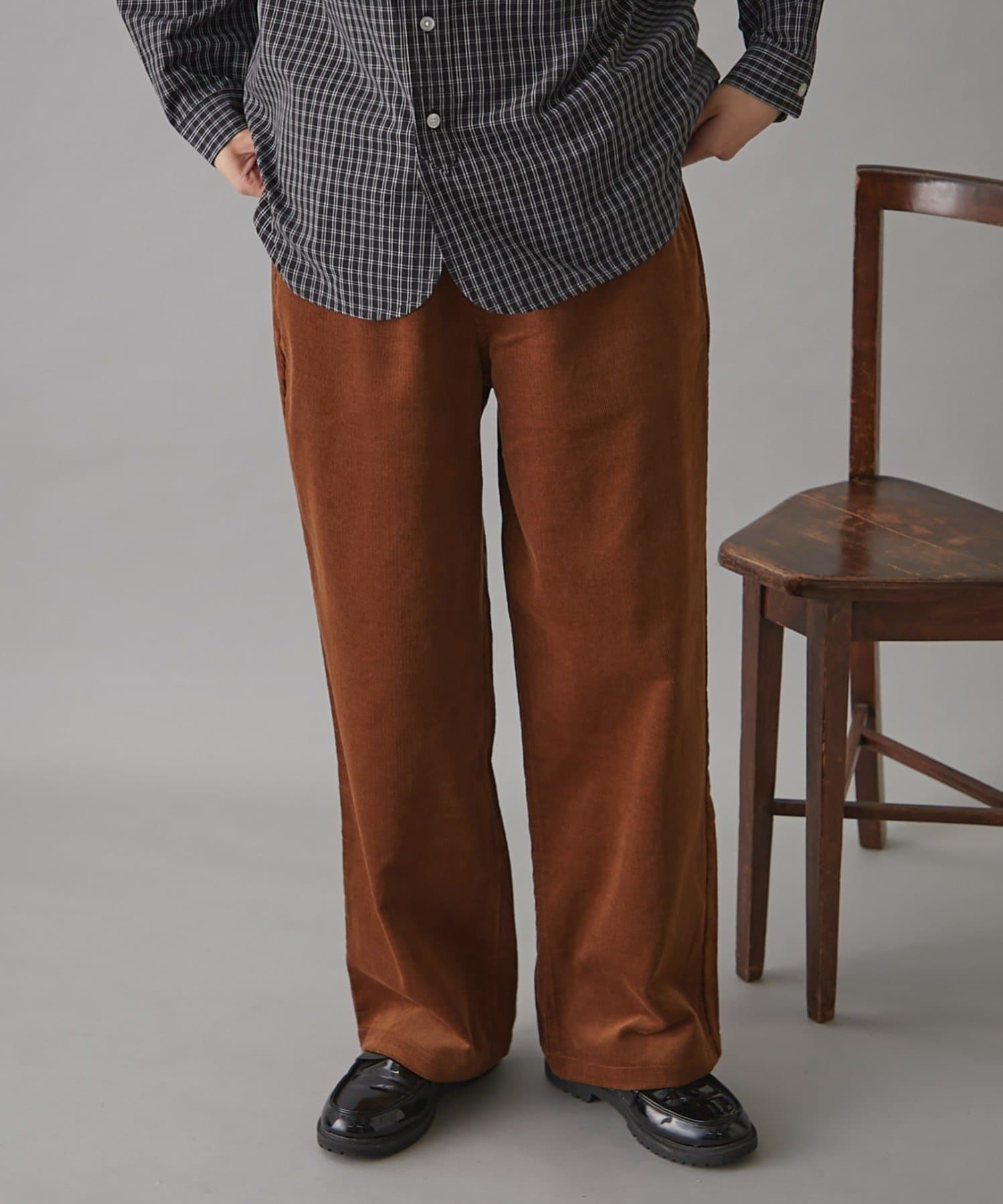 温かみのあるコーデュロイ素材が特徴的なワイドパンツ。