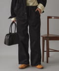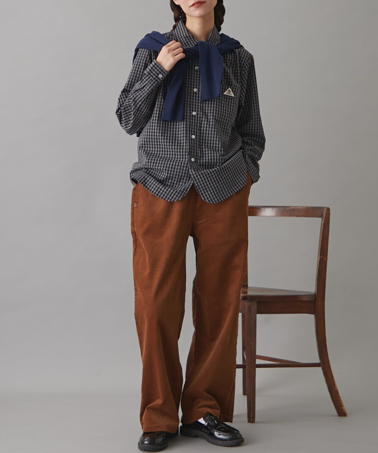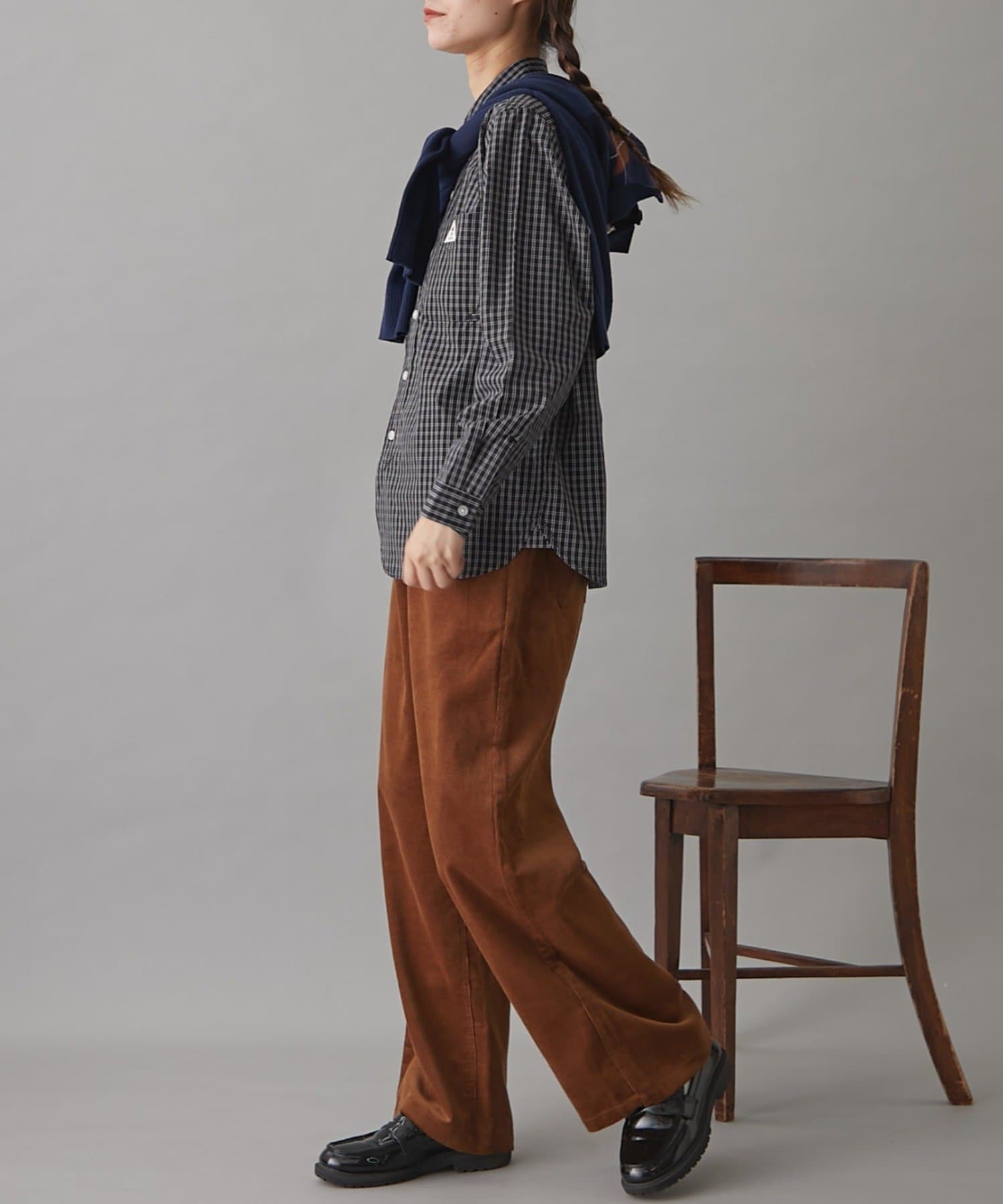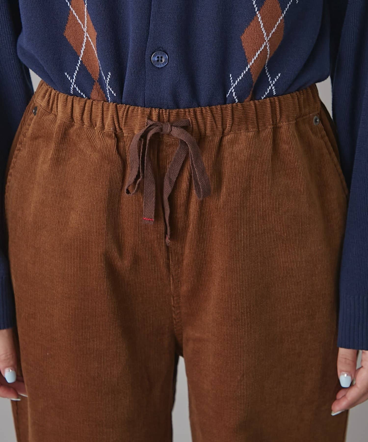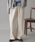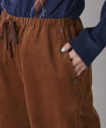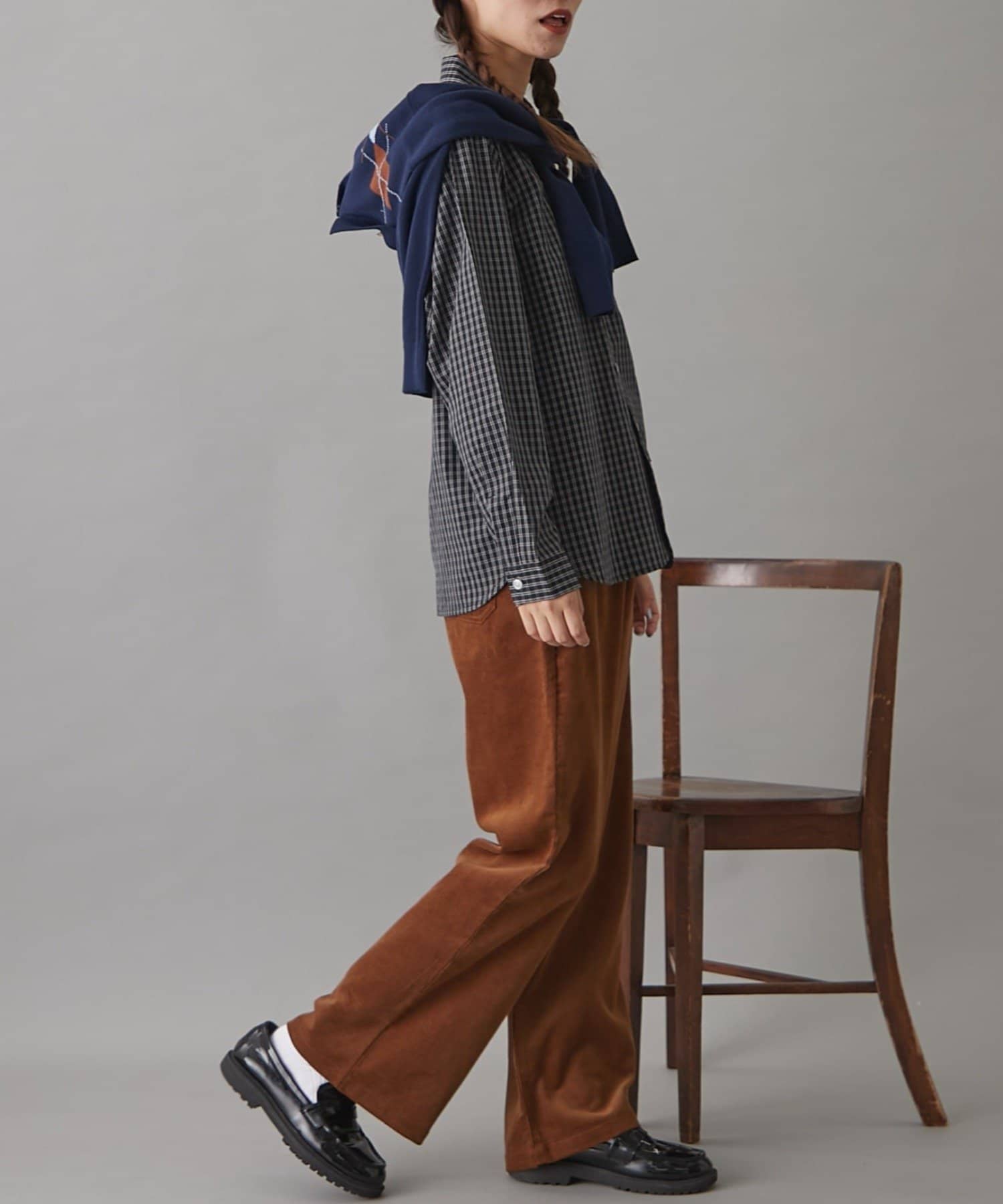 温かみのあるコーデュロイ素材が特徴的なワイドパンツ。