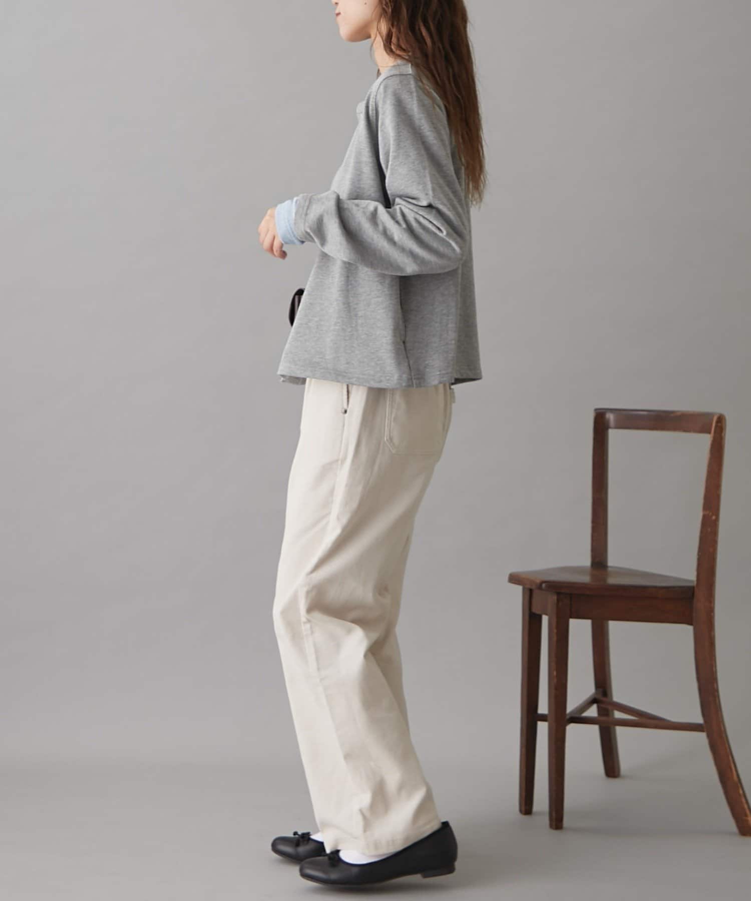 程よい太さのワイドシルエットは、リラックス感がありながらも、カジュアルになりすぎない上品さをプラス。