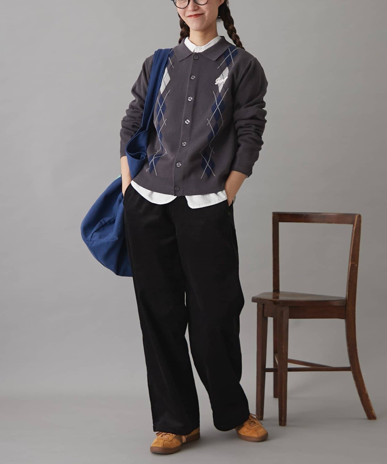 足元はローファーでトラッドに、スニーカーでカジュアルにと、様々なテイストを楽しめます。