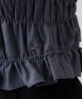 ビスチェの裾には、さりげないフリルを施し、フェミニンな印象をプラス。