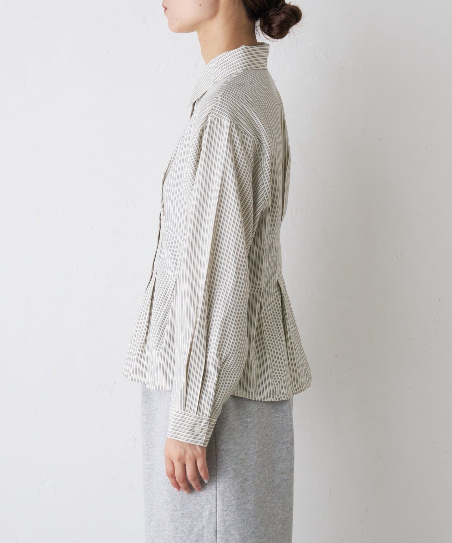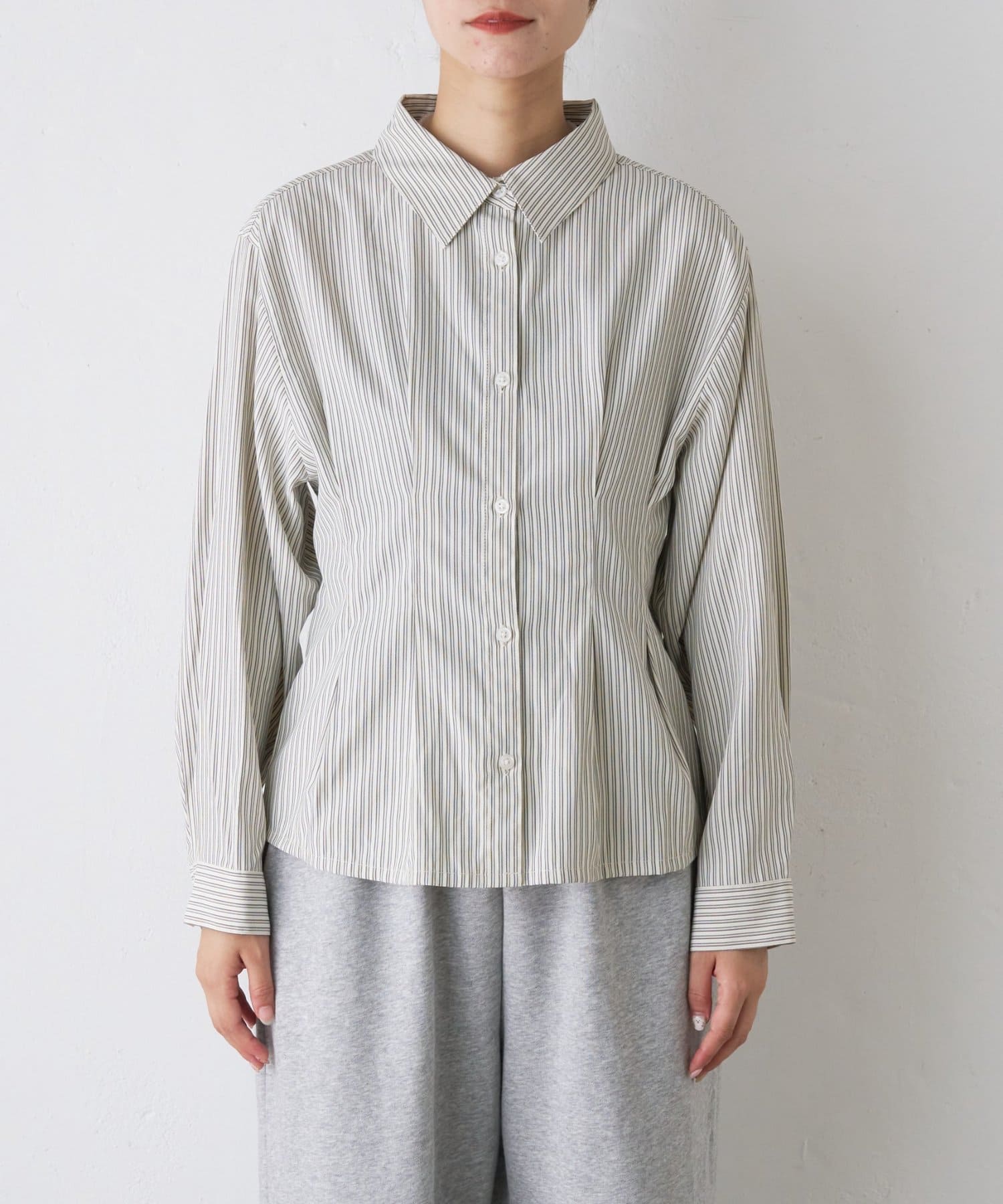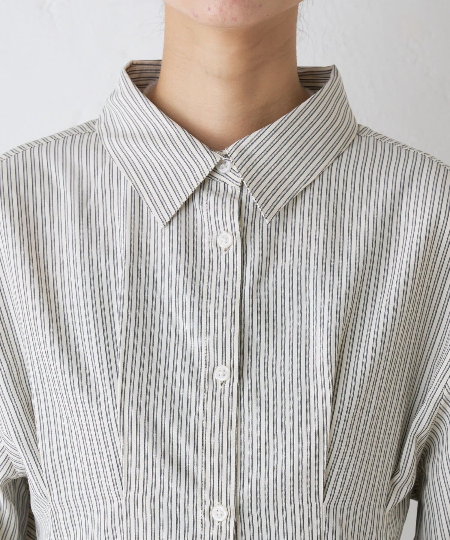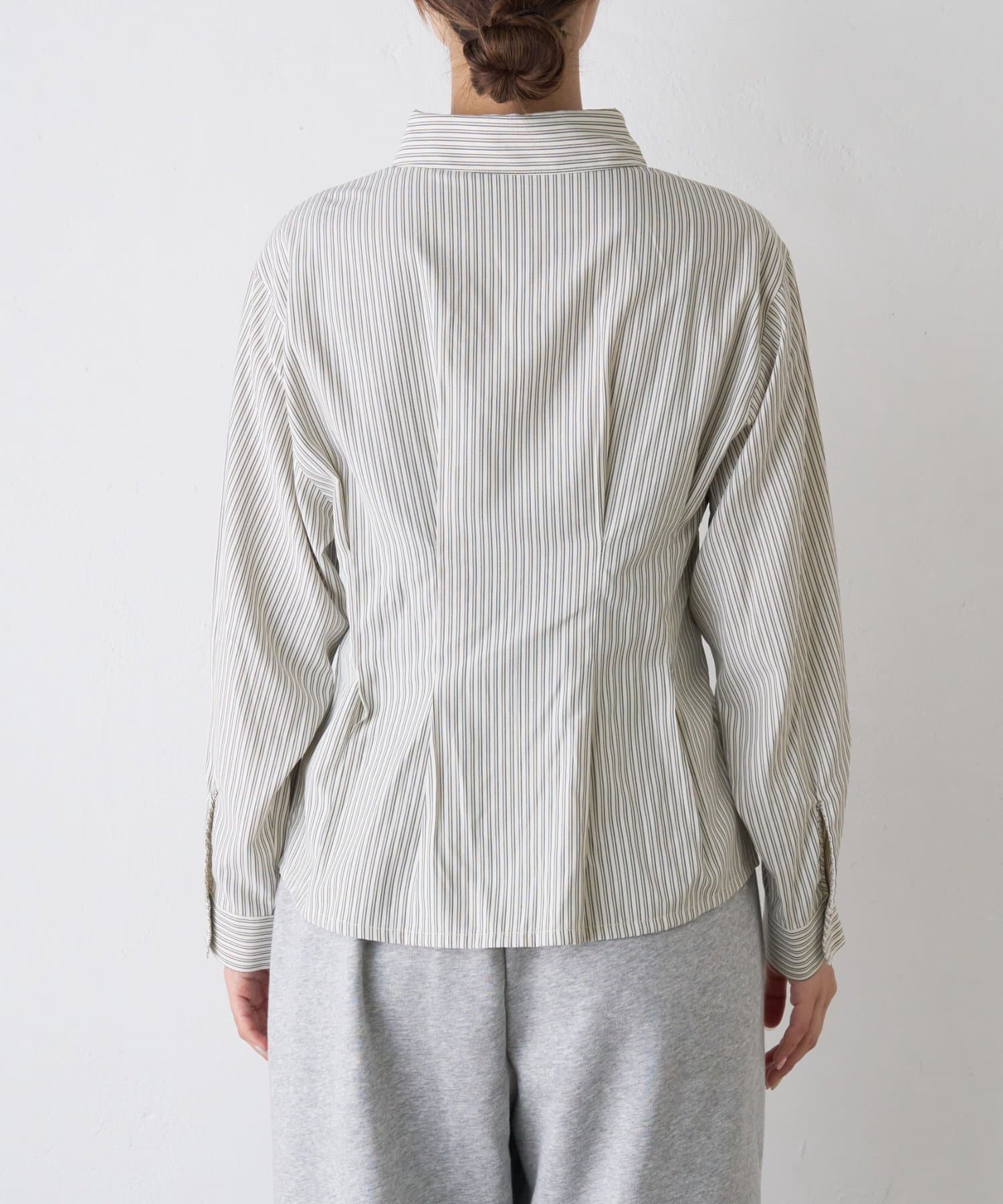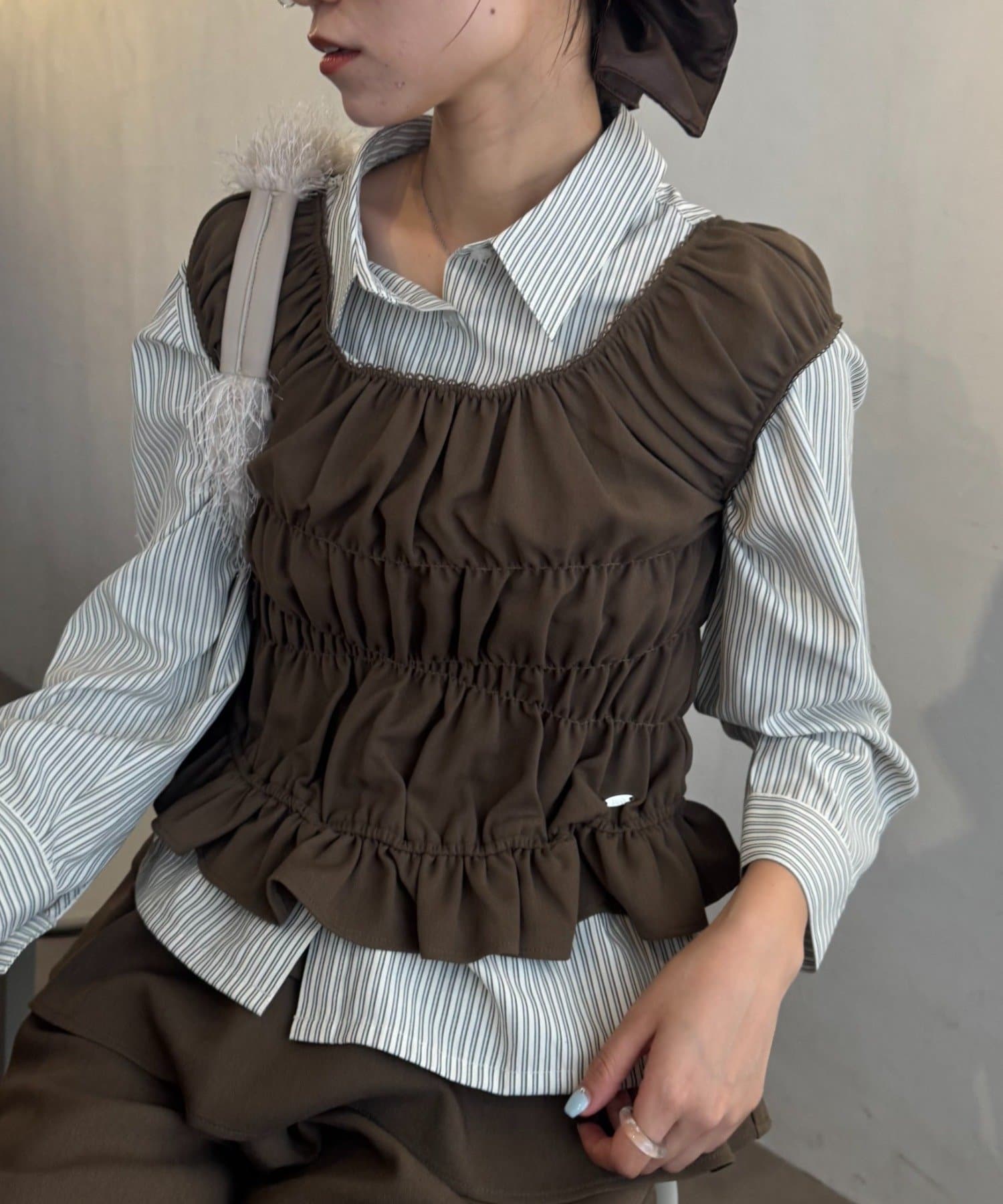 【簡単レイヤードが叶うセットアイテム】シャーリングビスチェ付きストライプシャツ