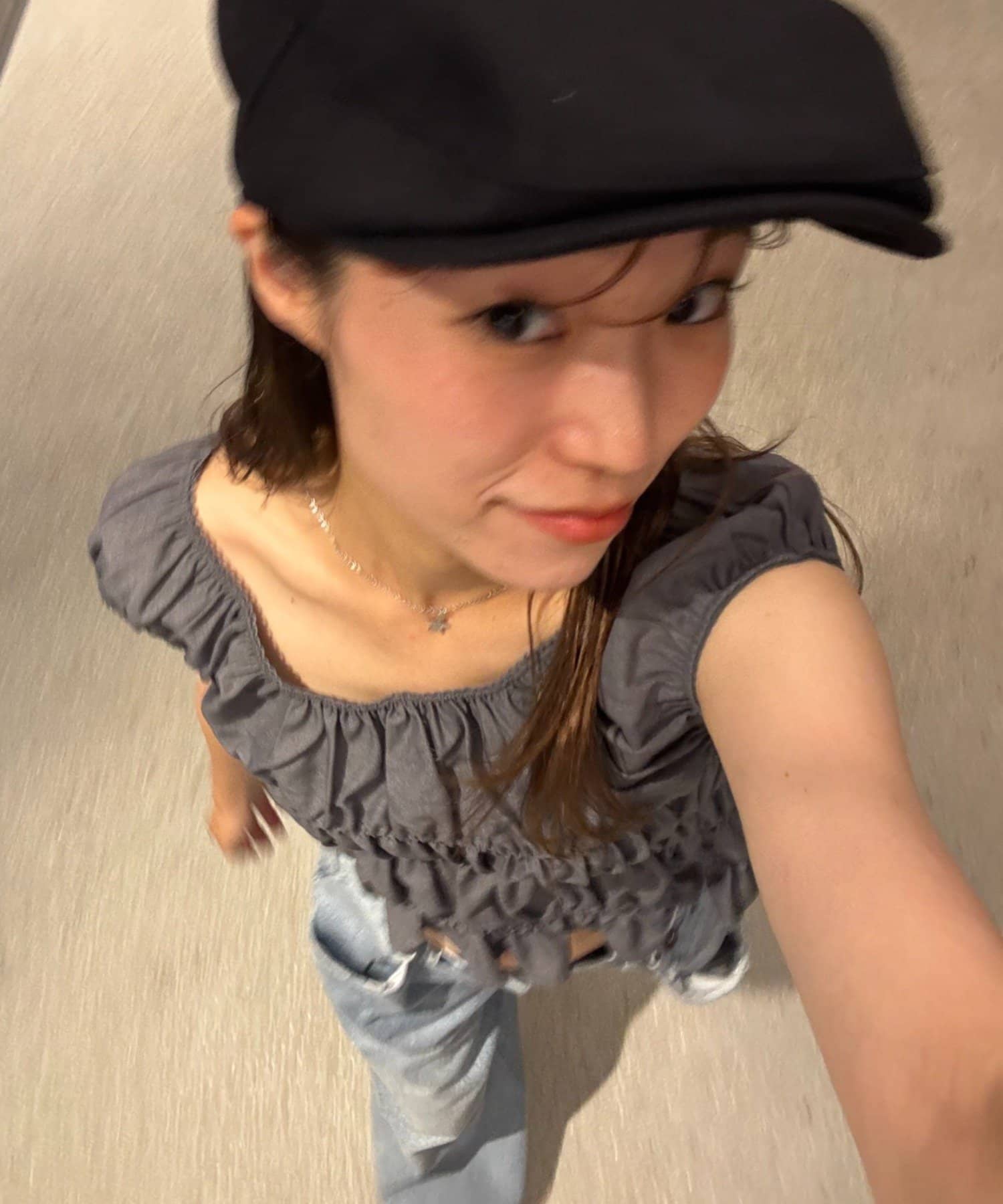 一見コンパクトに見えますが、アームホールにゆとりがある詐欺見えトップスです♪