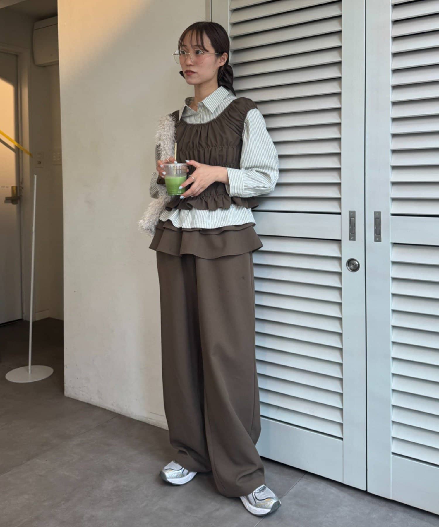同韓国企画シリーズの【TERIO韓国企画】フリル付きスラックス(TYZ4052302A0001)とセットアップとしても着用可能です。