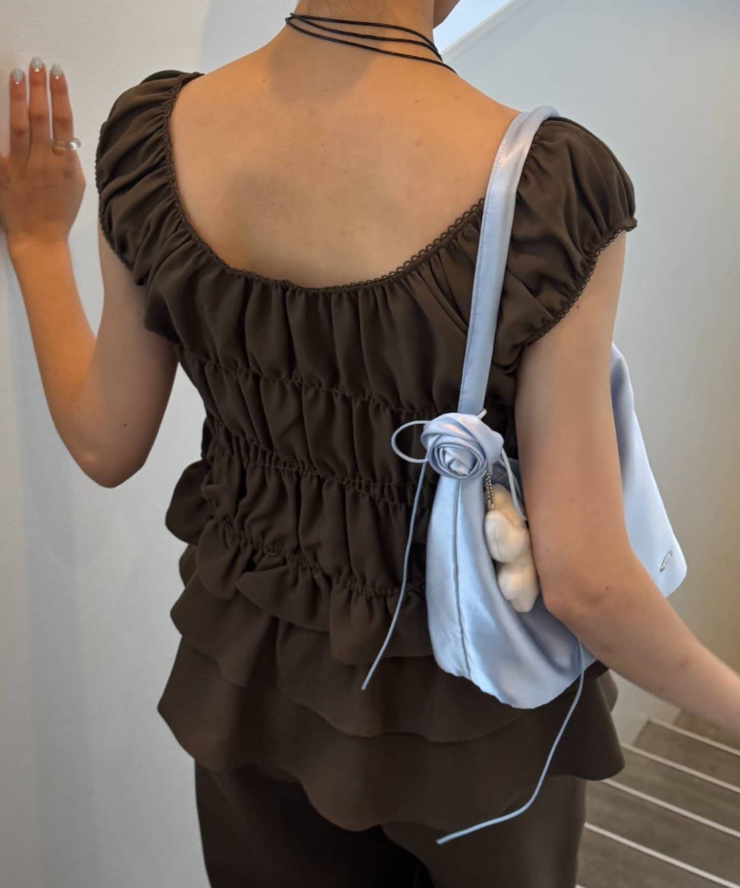 細部にまでこだわったギャザーの配置が、立体的で奥行きのある表情を生み出します。