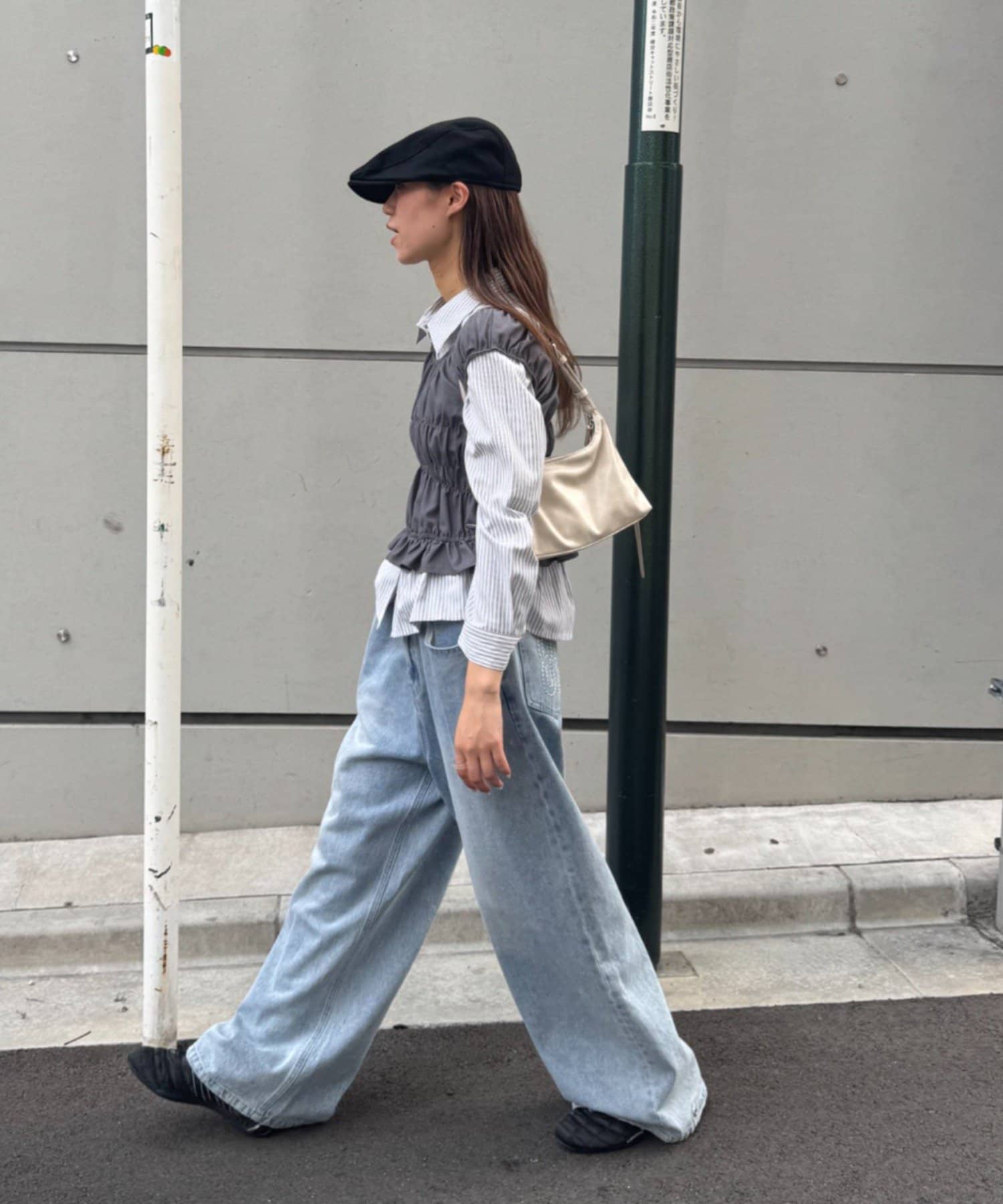 デニムパンツやスラックスと合わせて、こなれ感のあるカジュアルスタイルに。