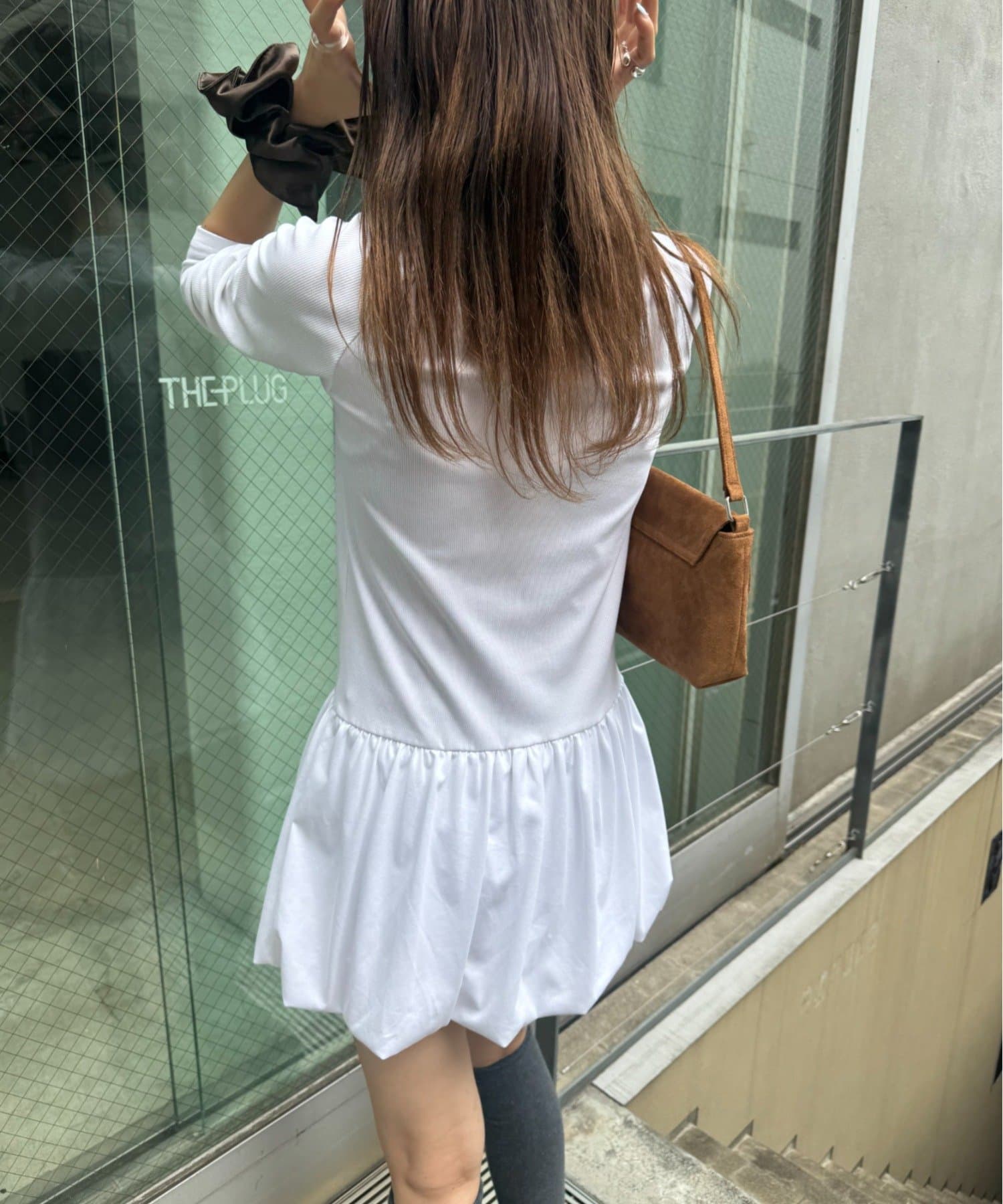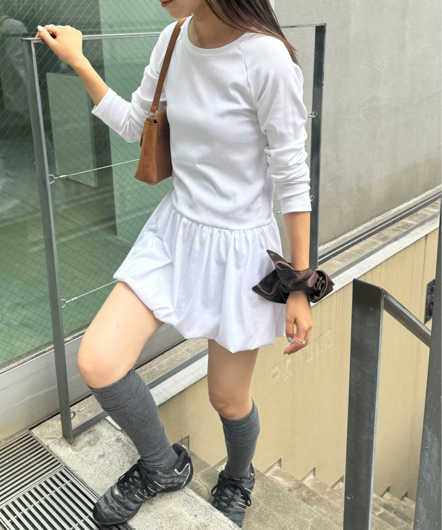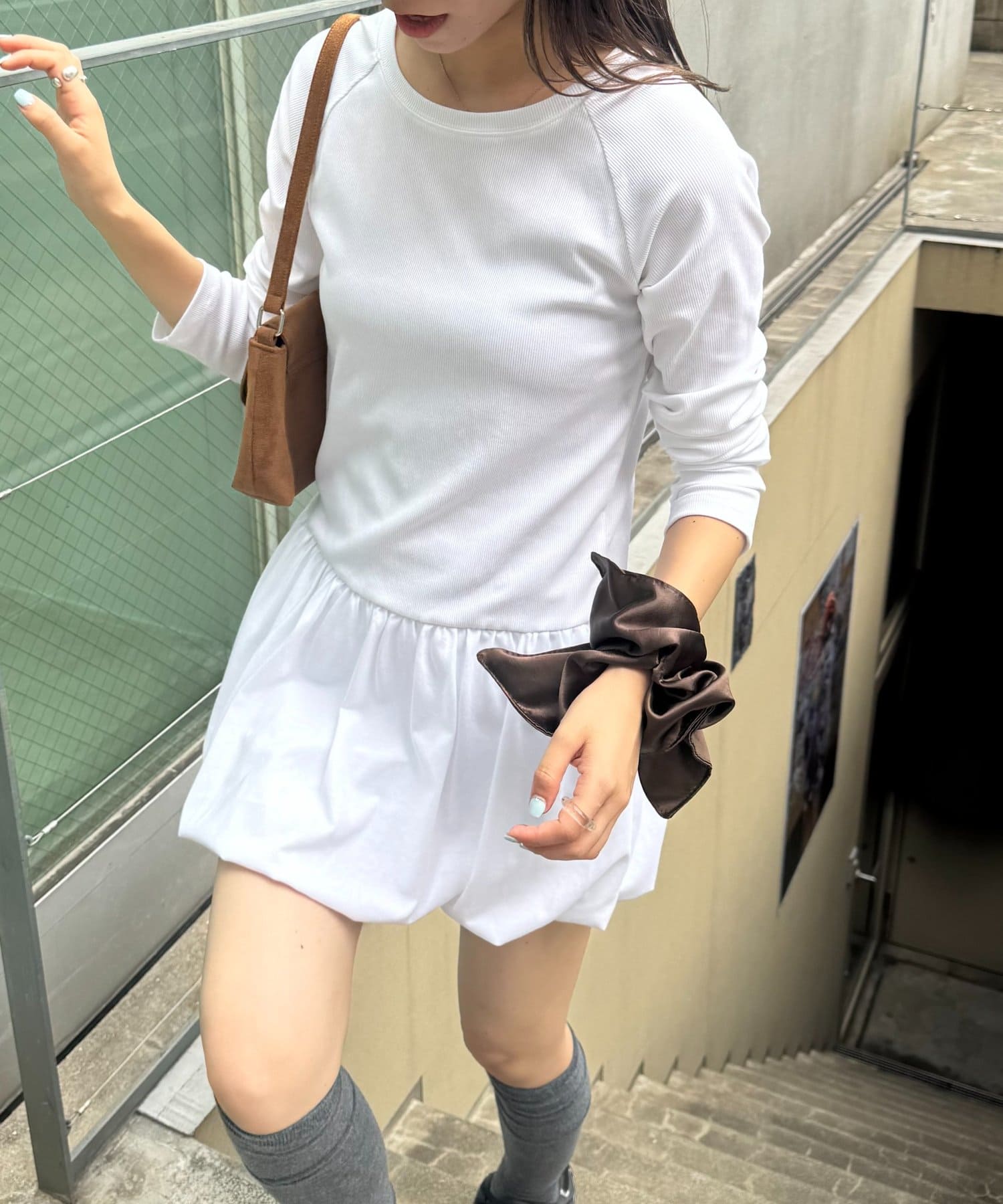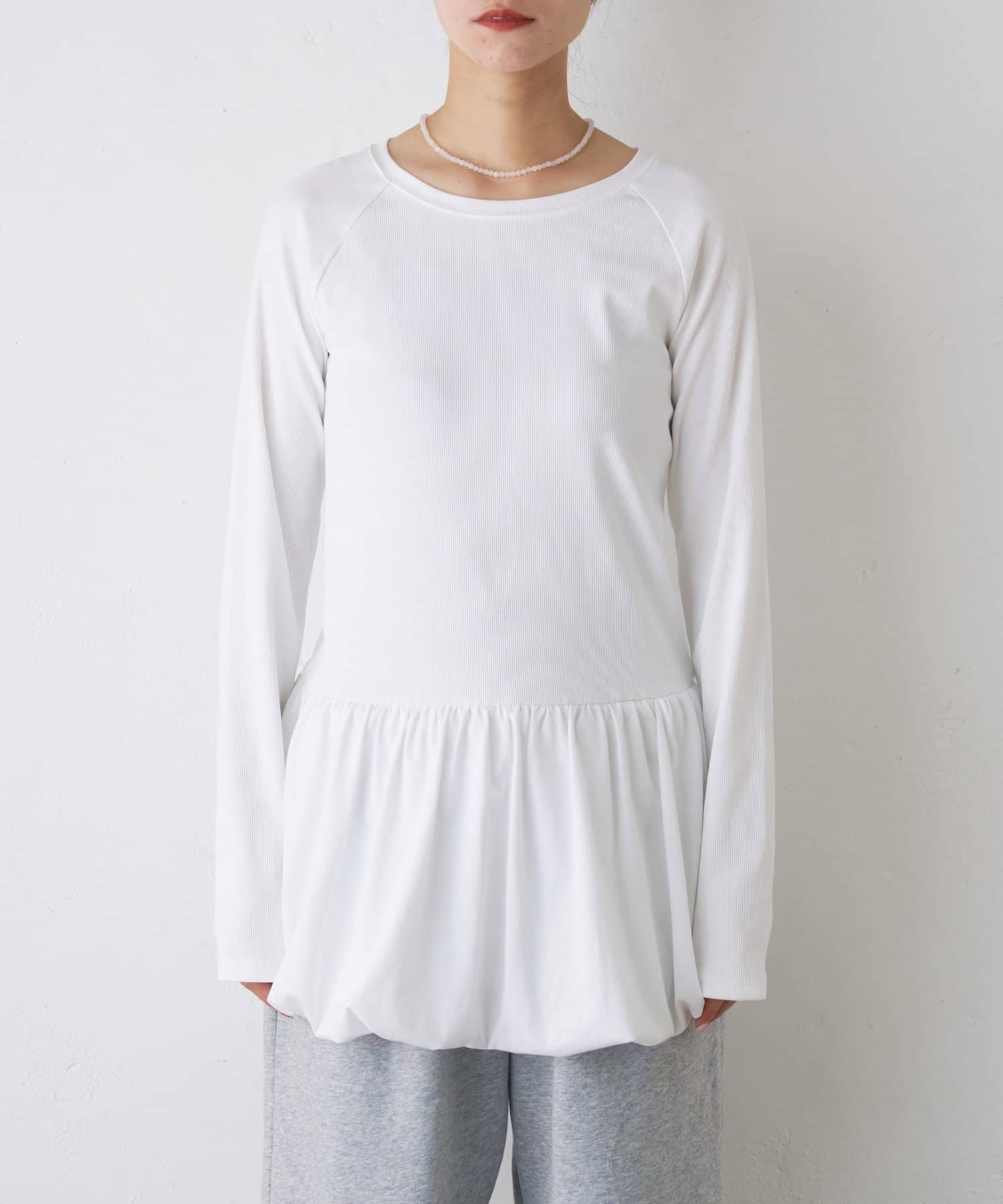 裾バルーントップス(ホワイト①)は身頃素材がリブ素材なのでワンピースとして着用するのもおすすめ!