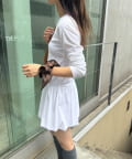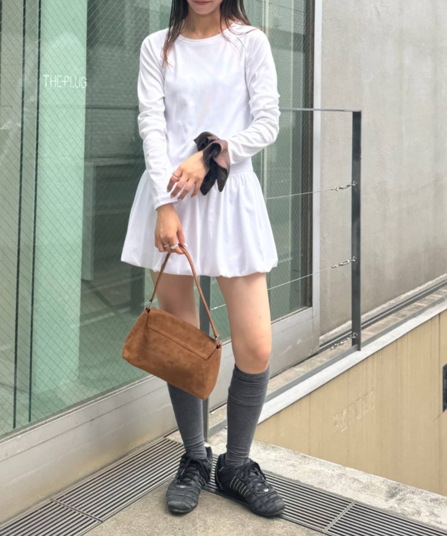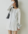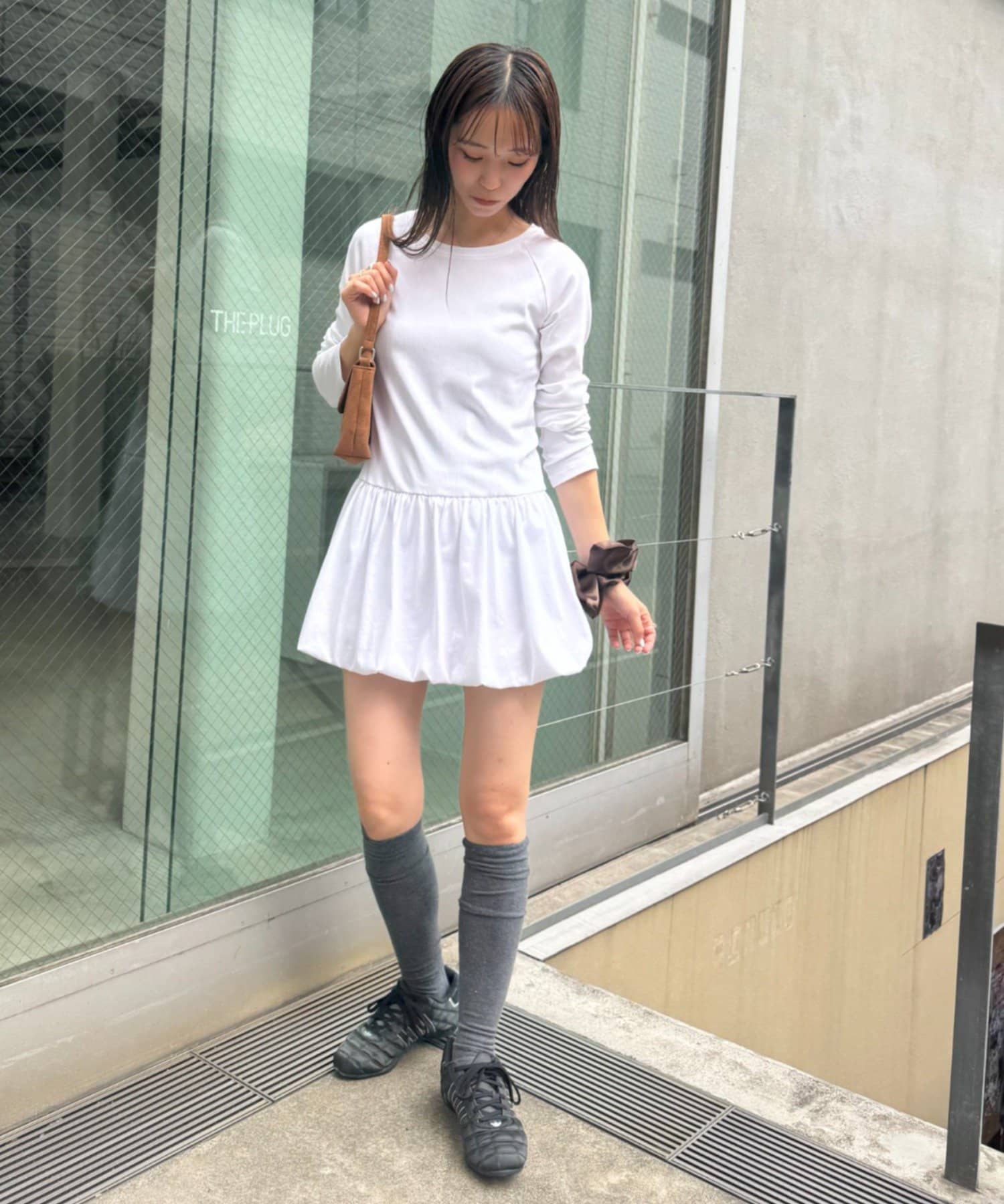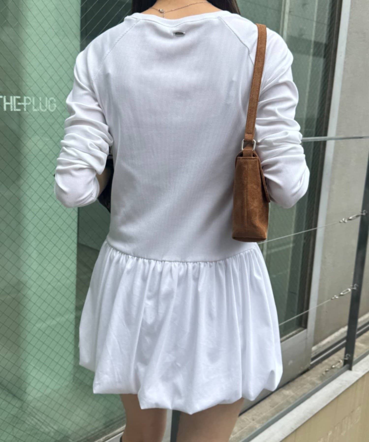 裾バルーントップス(ホワイト①)は身頃素材がリブ素材なのでワンピースとして着用するのもおすすめ!