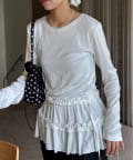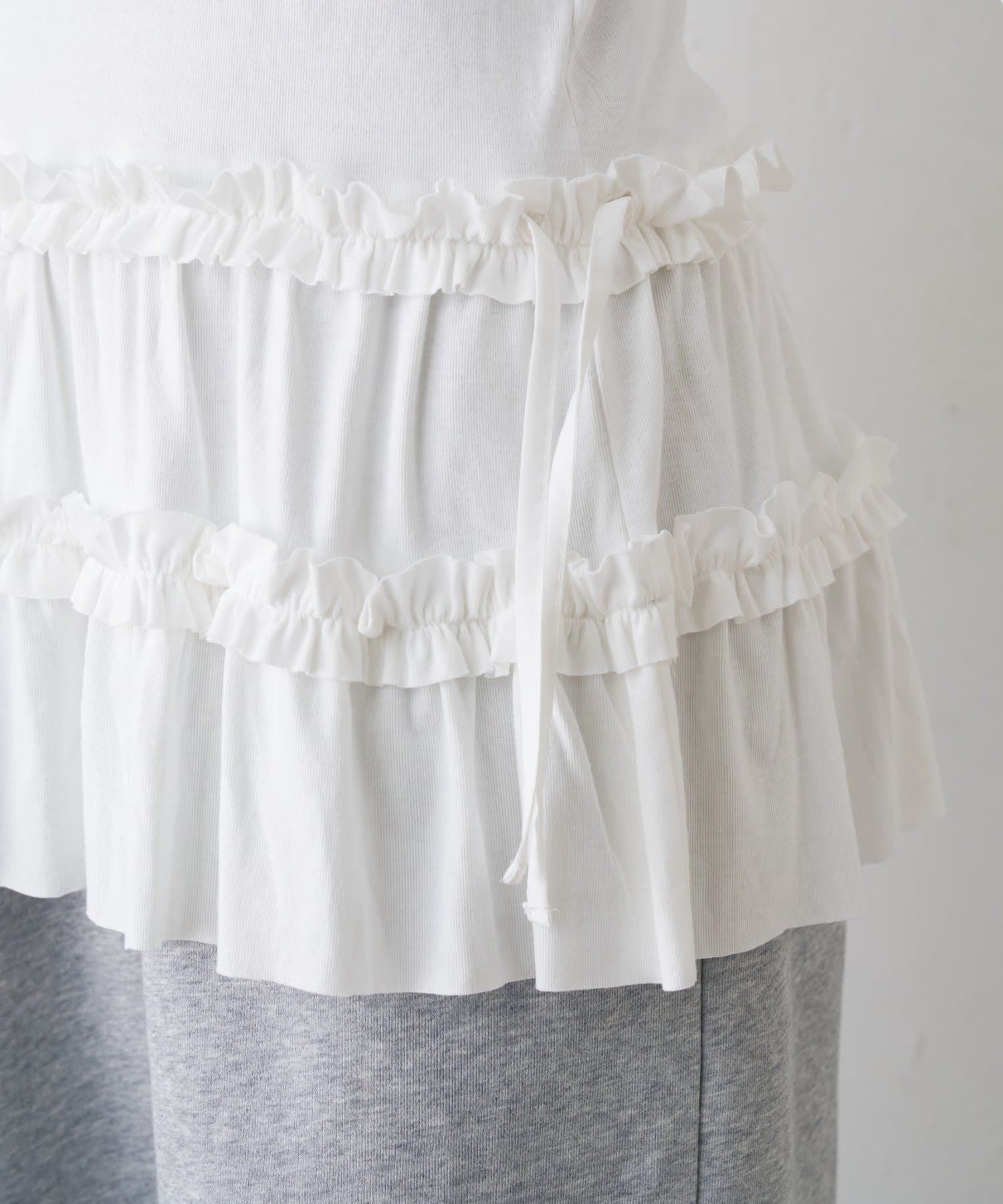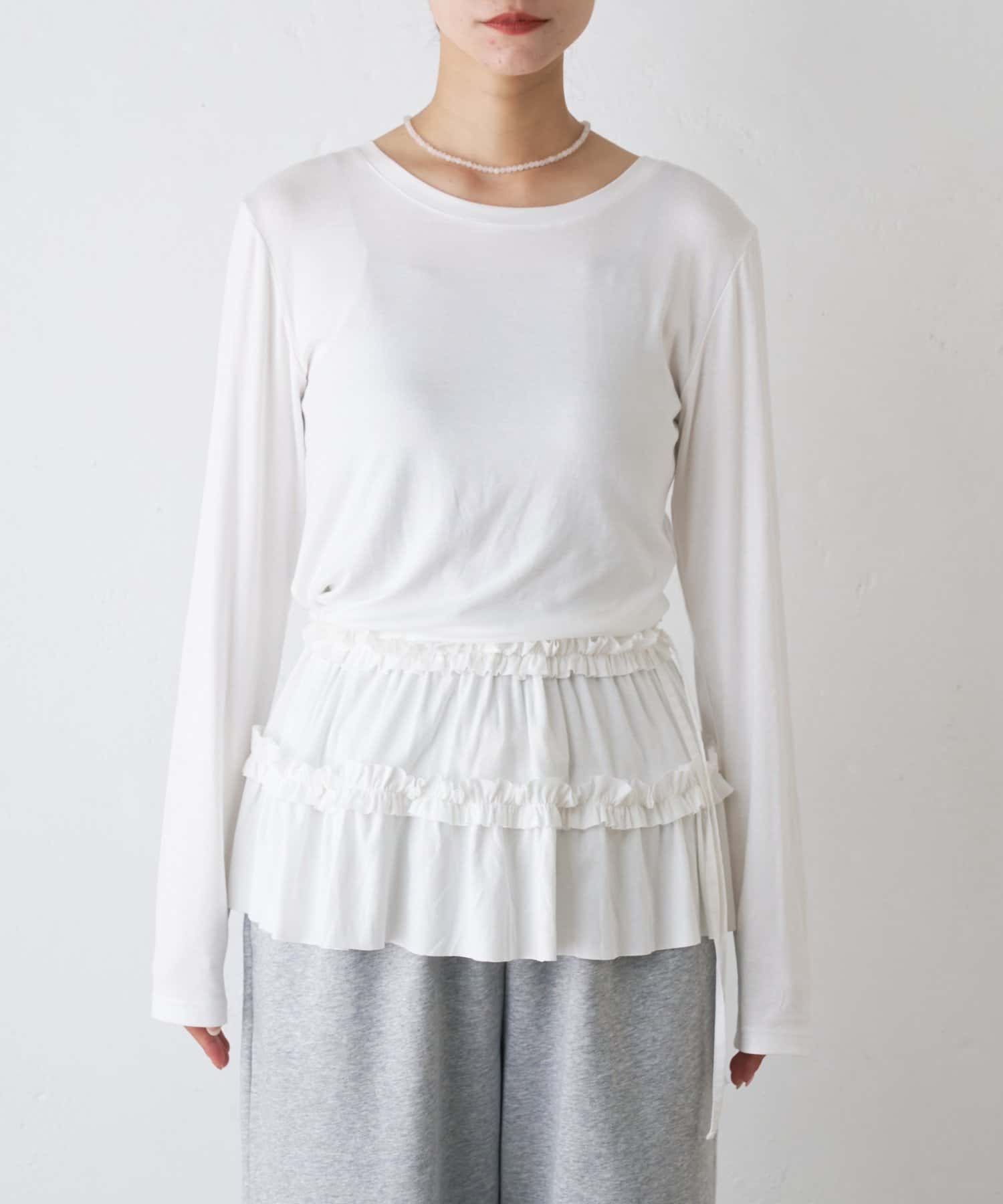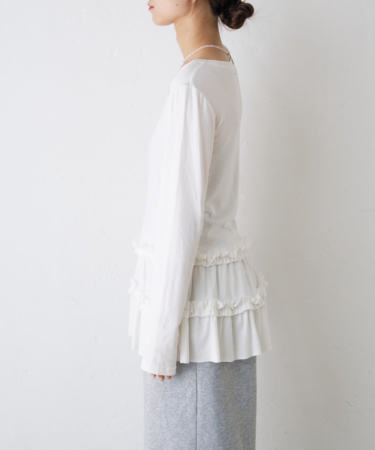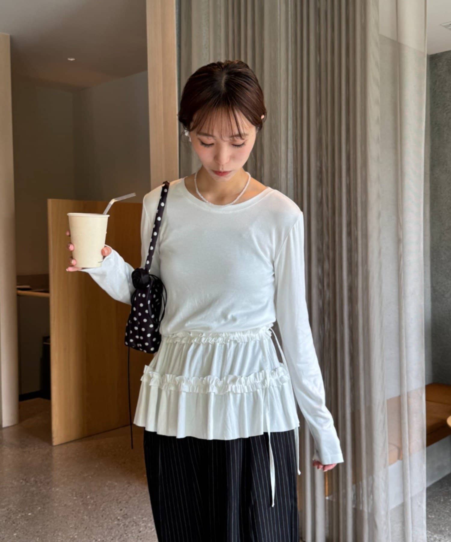 裾フリルはややタイトで程よい透け感のある落ち感のある素材に。