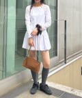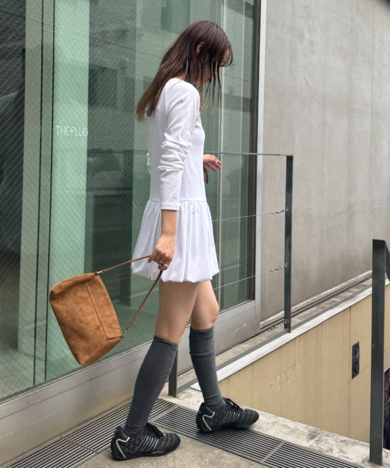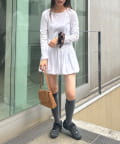ハイソックスやロングブーツと合わせてワンピースとして着ると韓国スタイルが完成します。