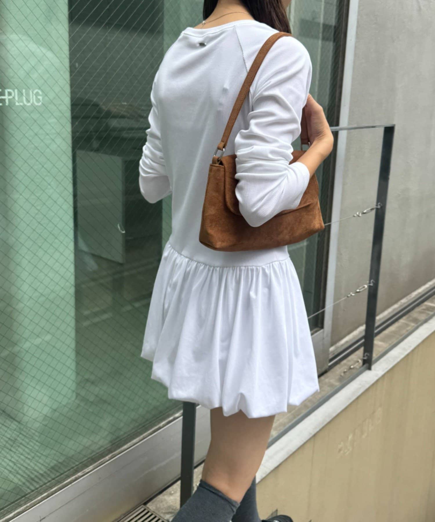 裾バルーンはリブ素材×カット素材のバルーンなので、ワンピースできたときに透け感なく着れるのがポイントです◎