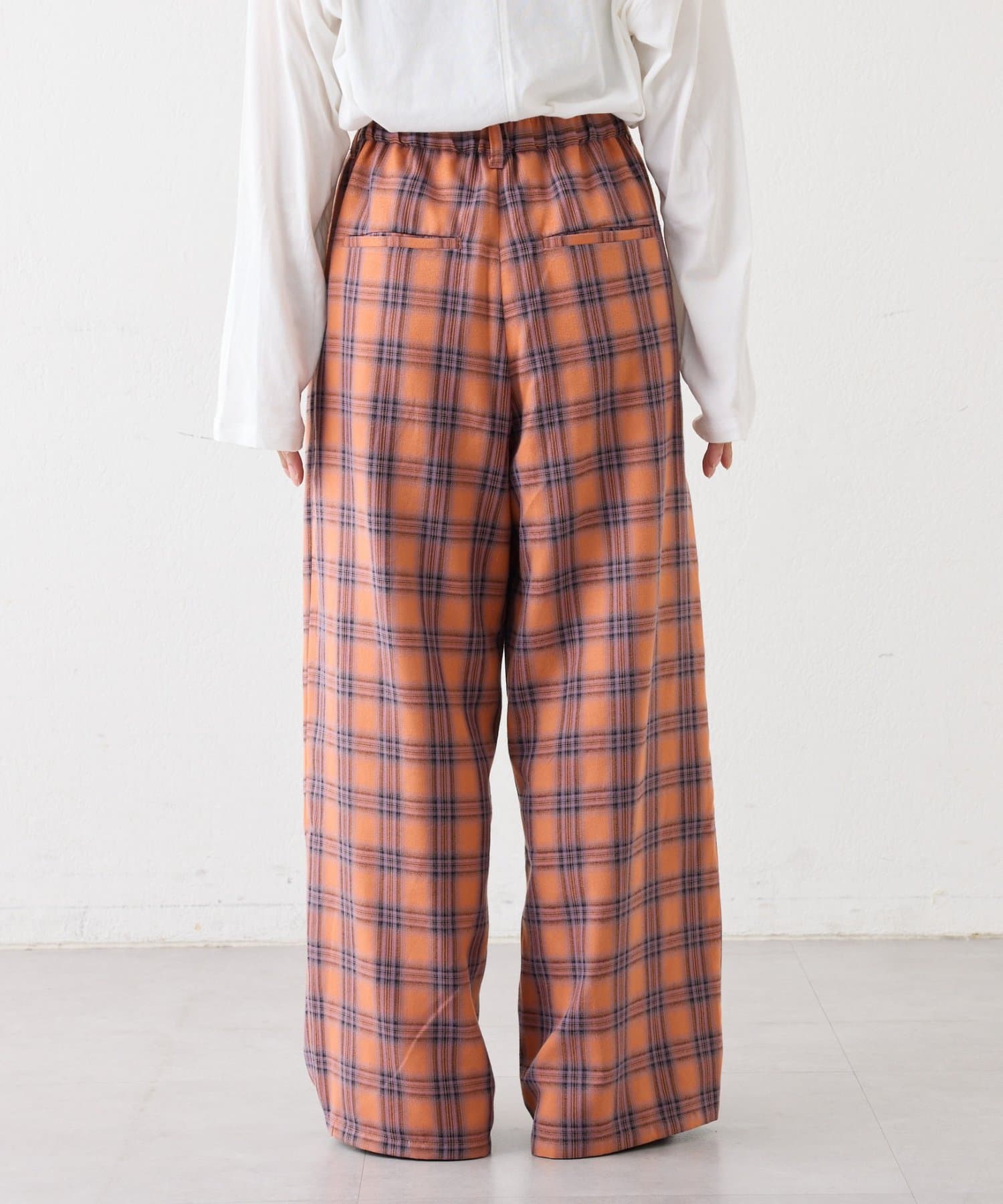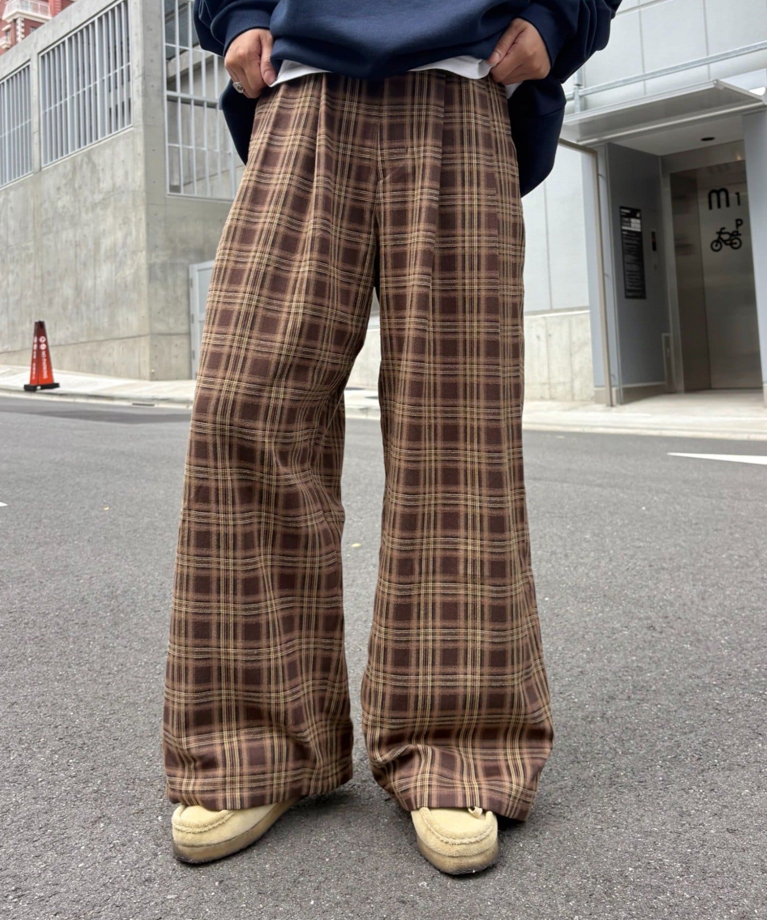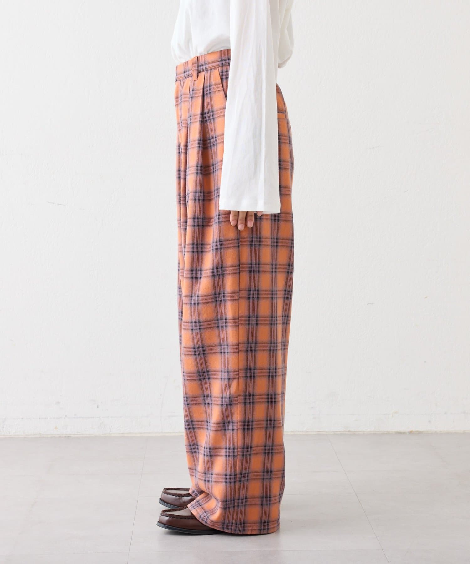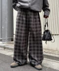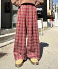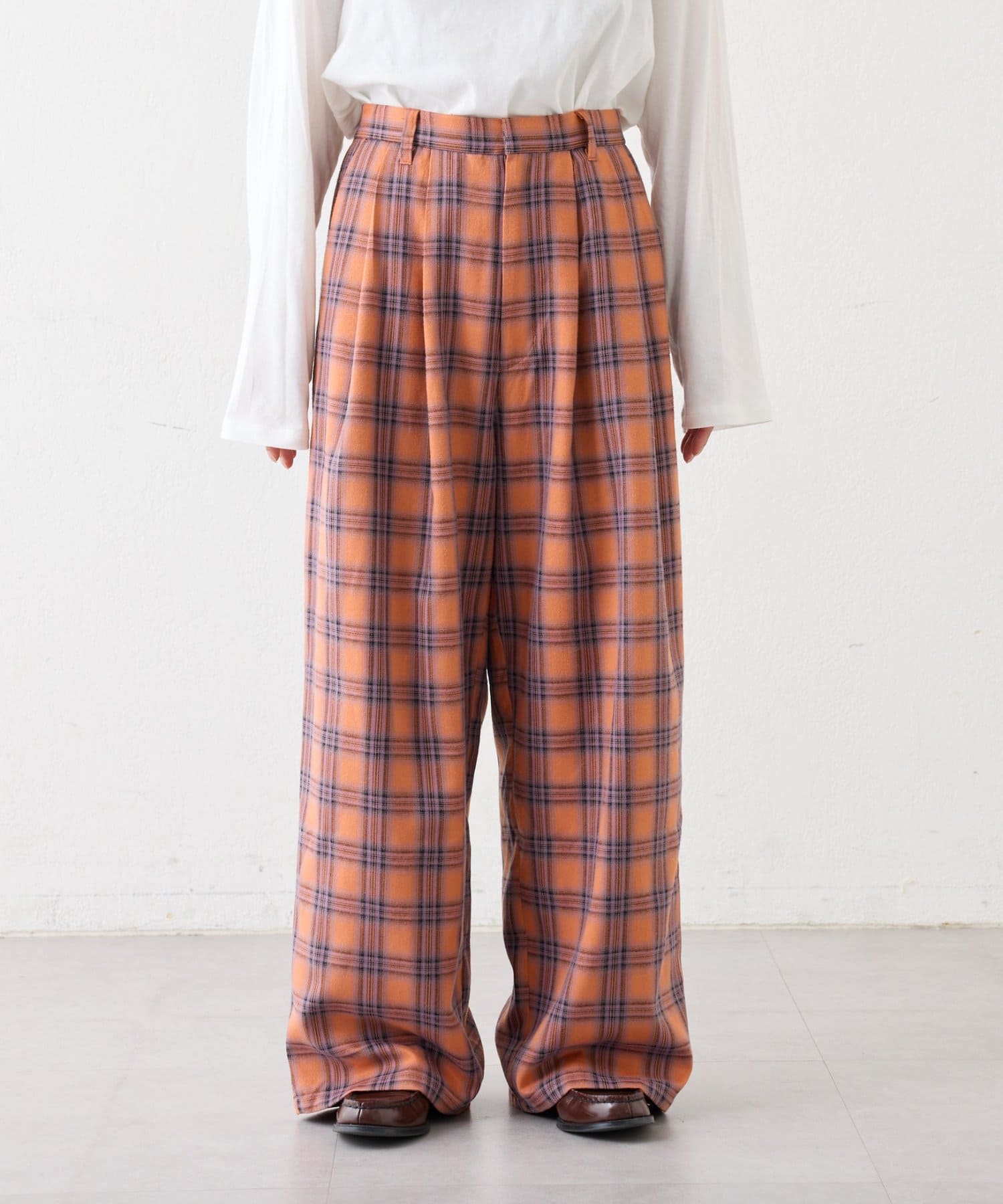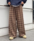 【UNISEX】ネルチェックタックボリュームワイドパンツ