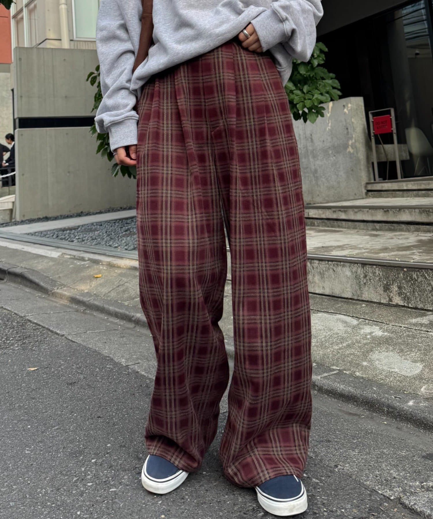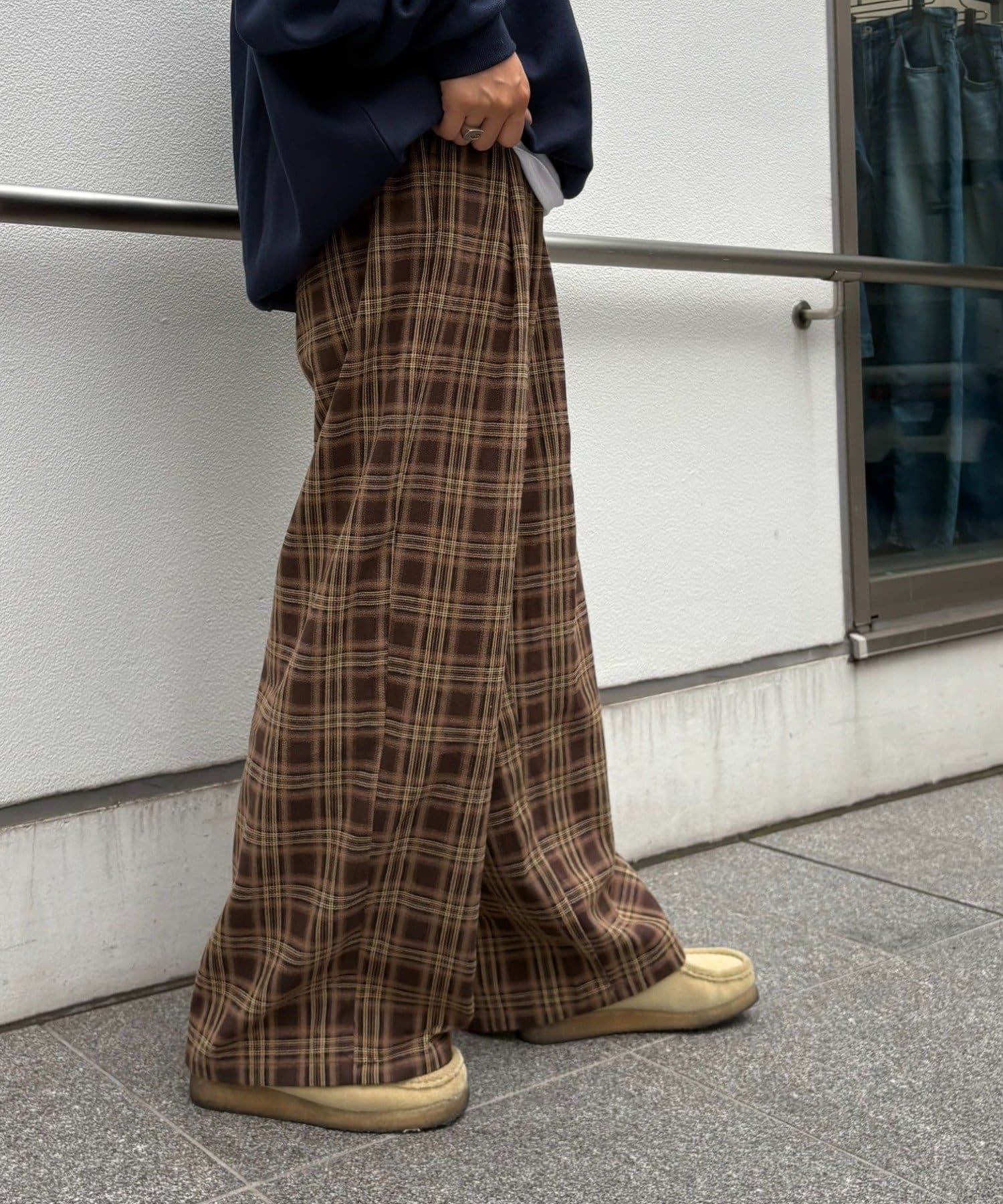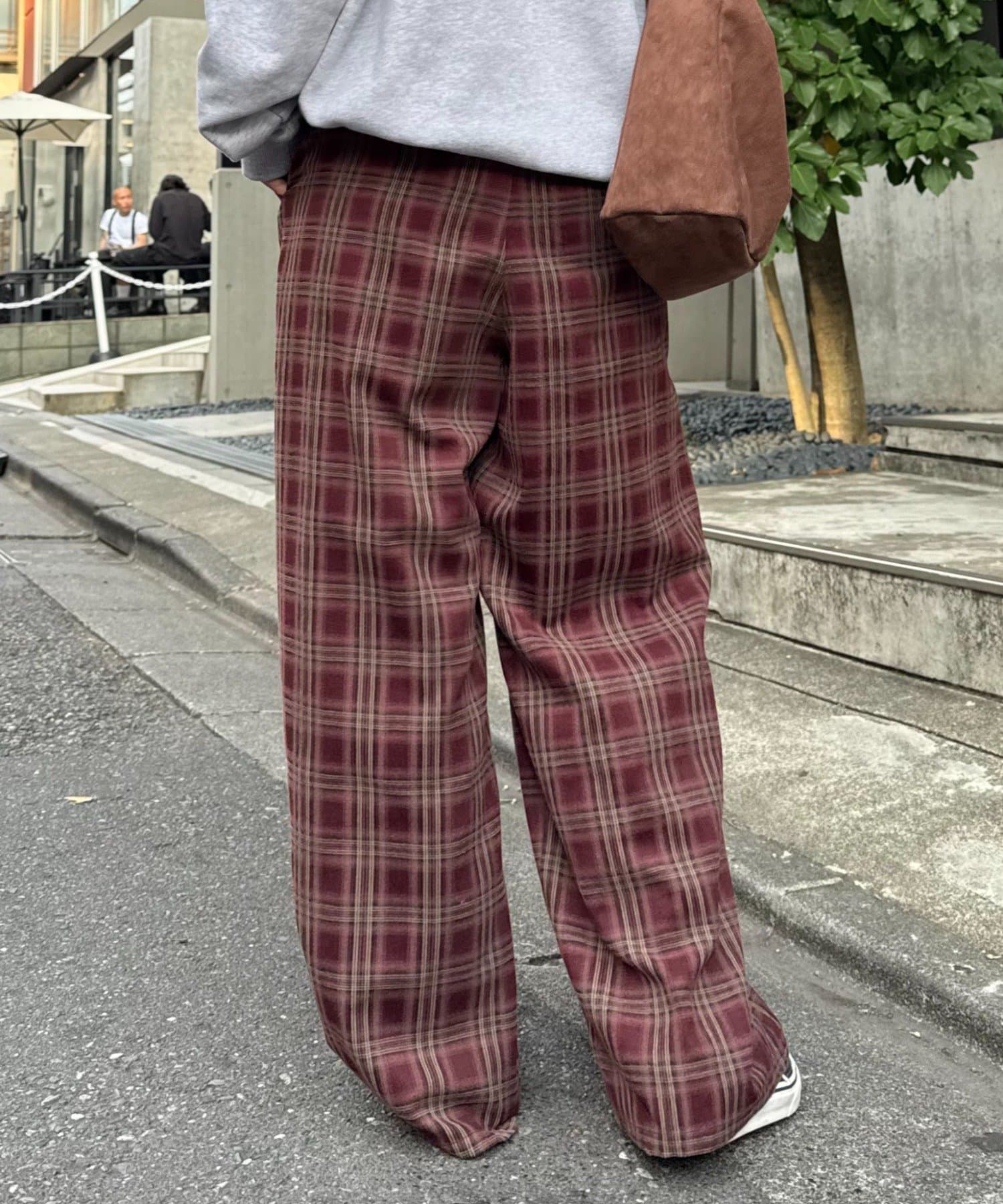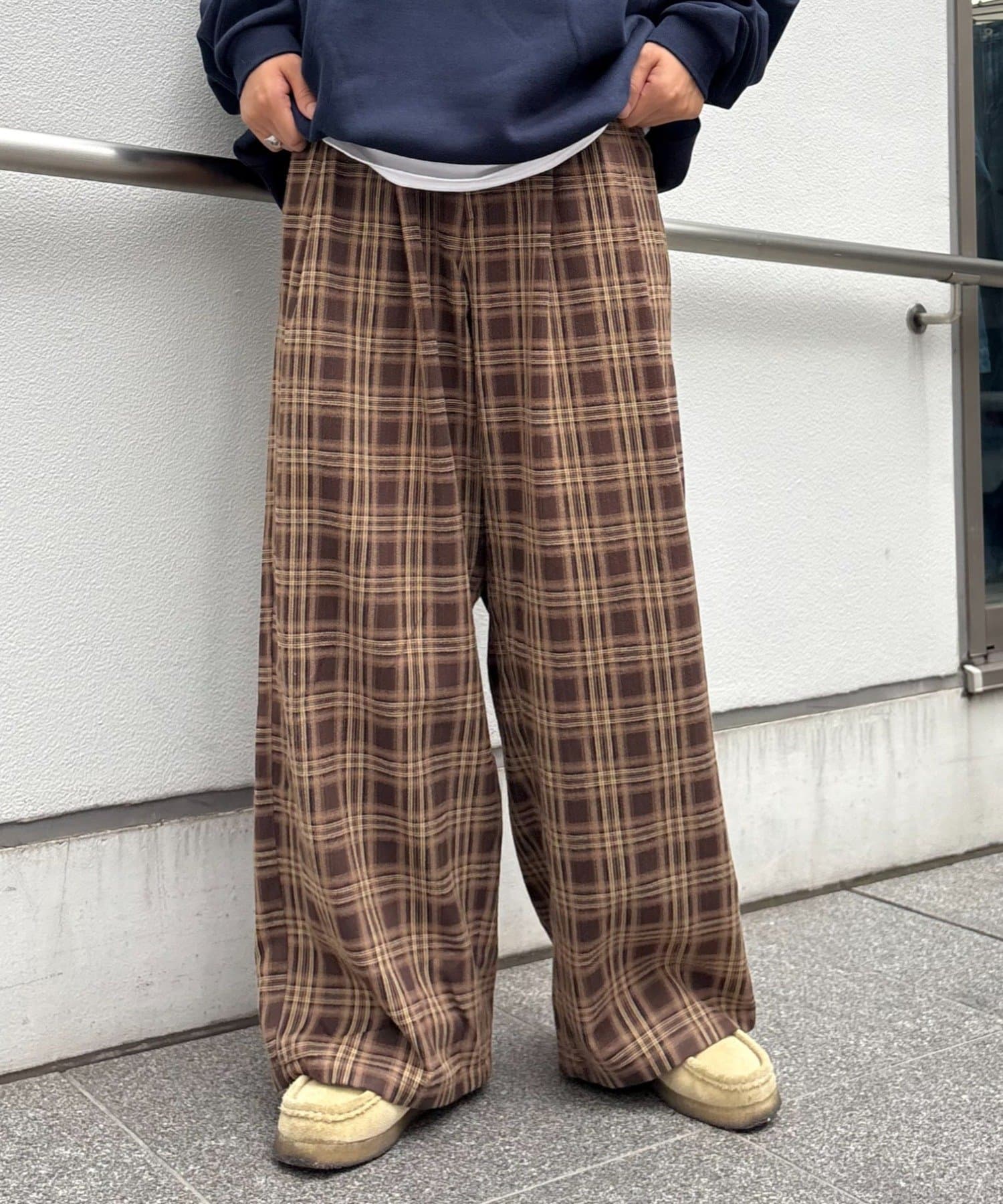 【UNISEX】ネルチェックタックボリュームワイドパンツ