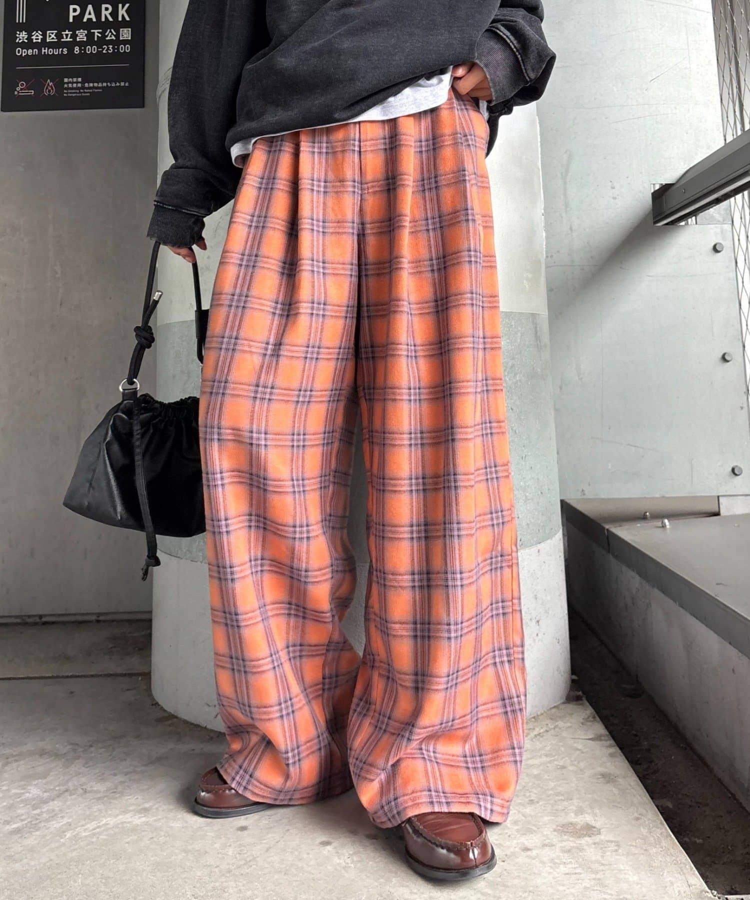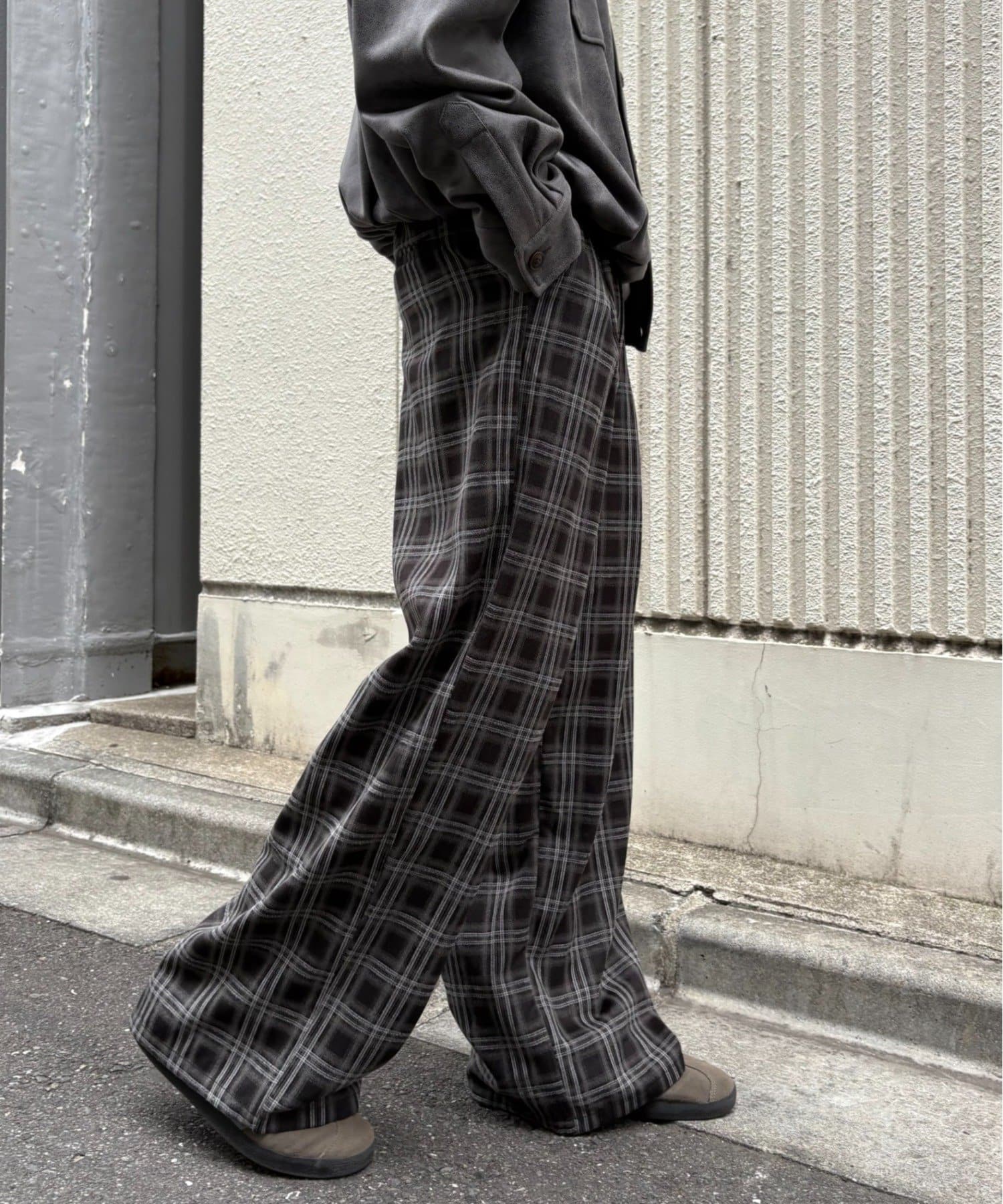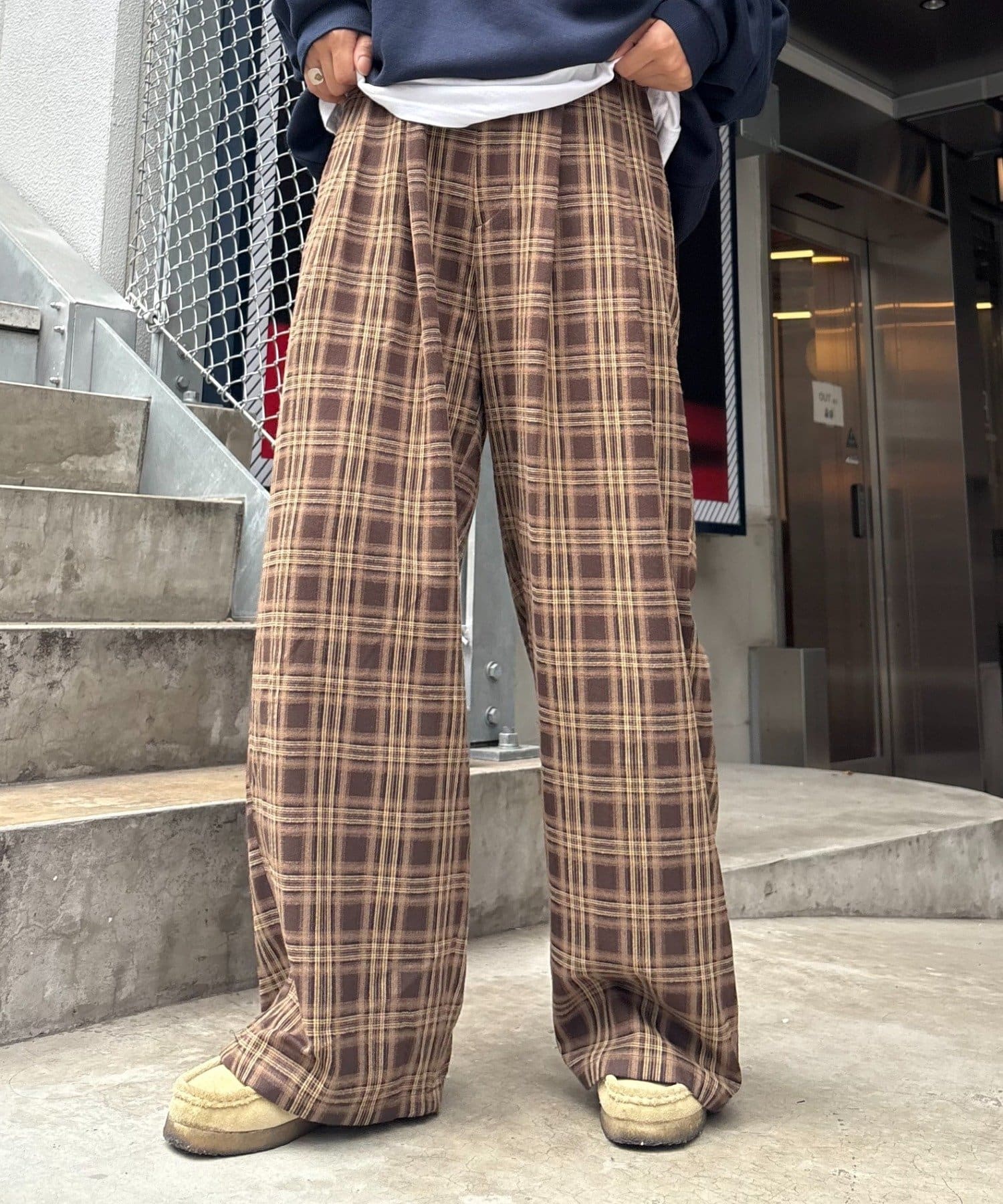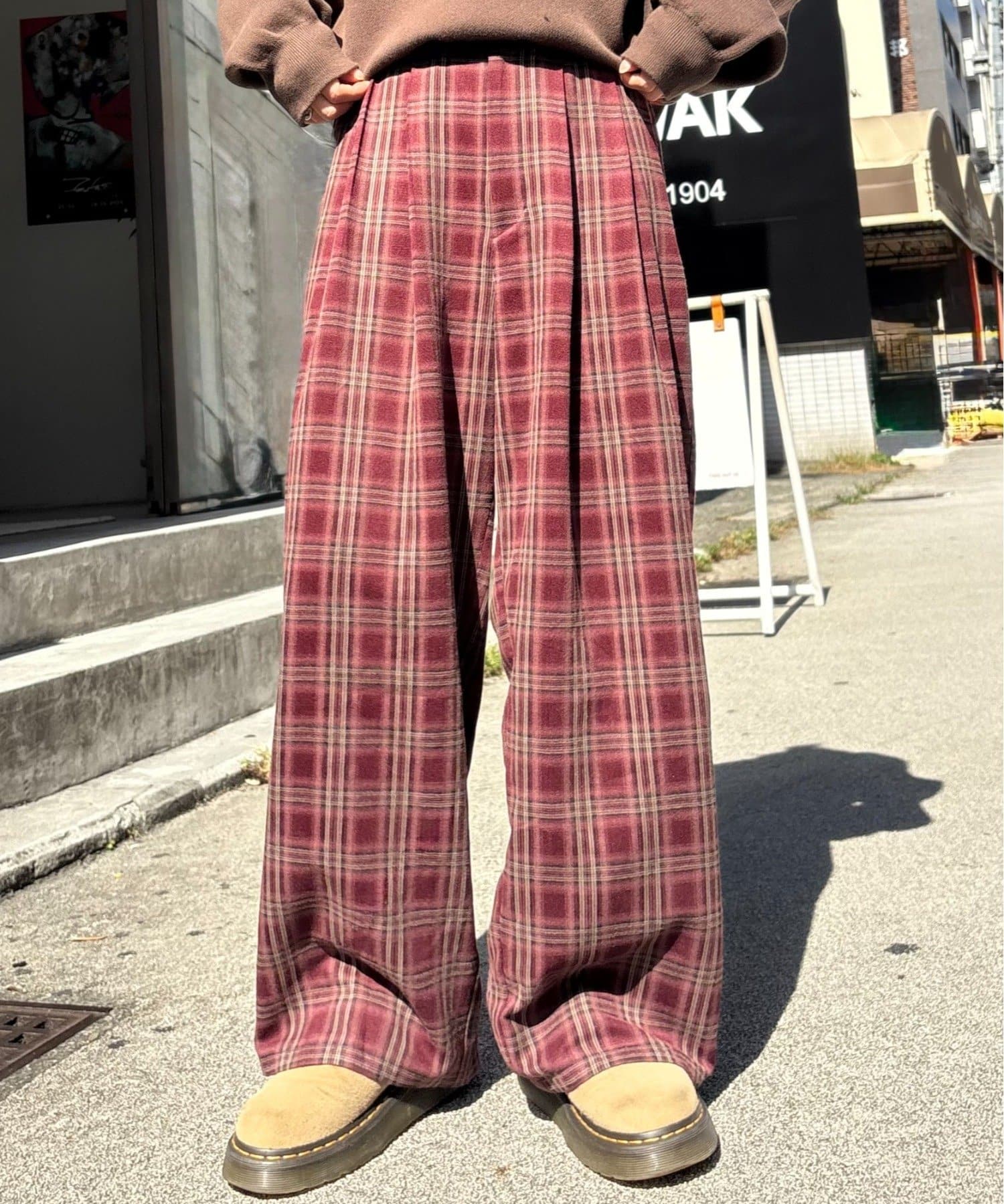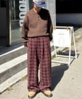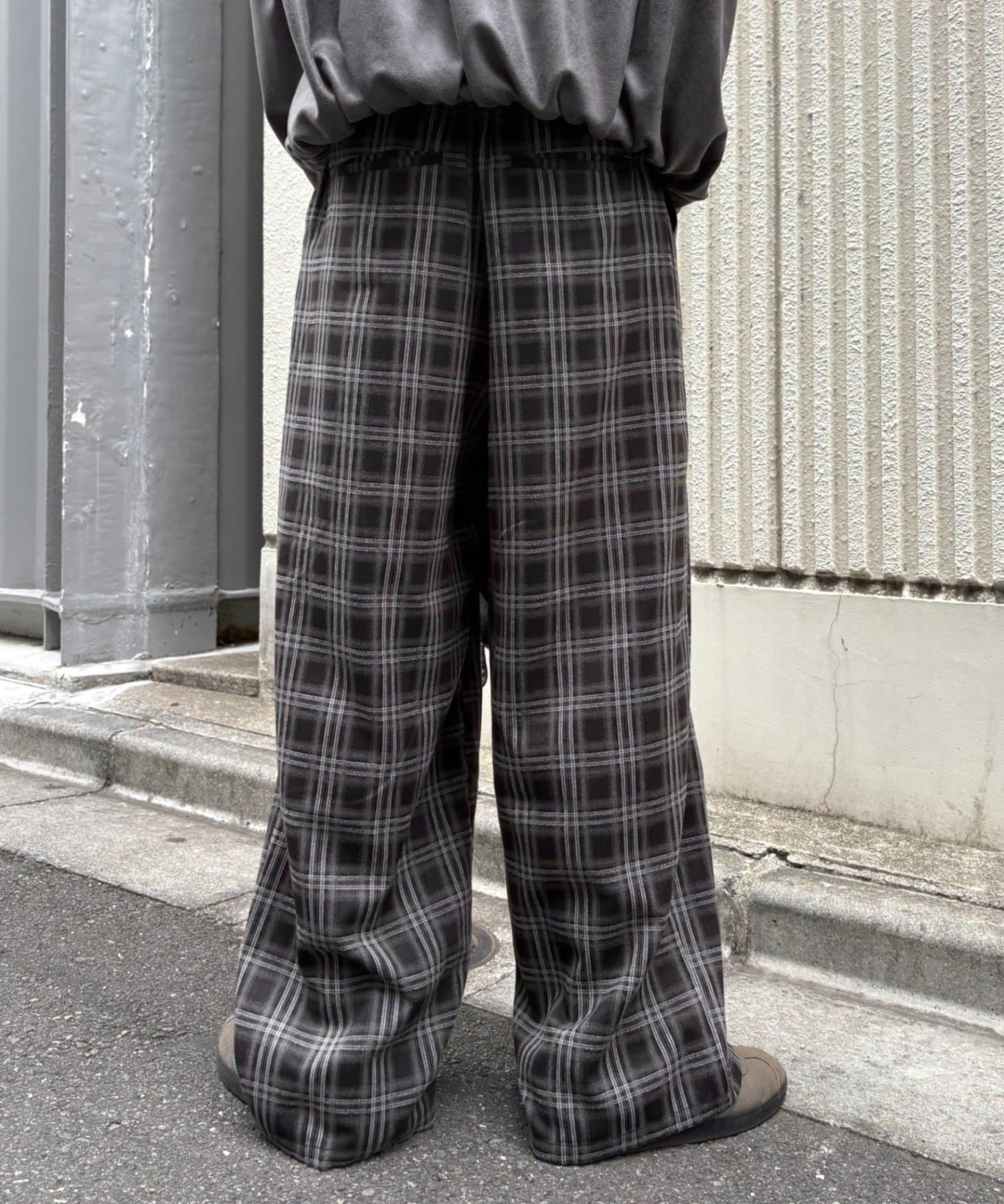 【UNISEX】ネルチェックタックボリュームワイドパンツ