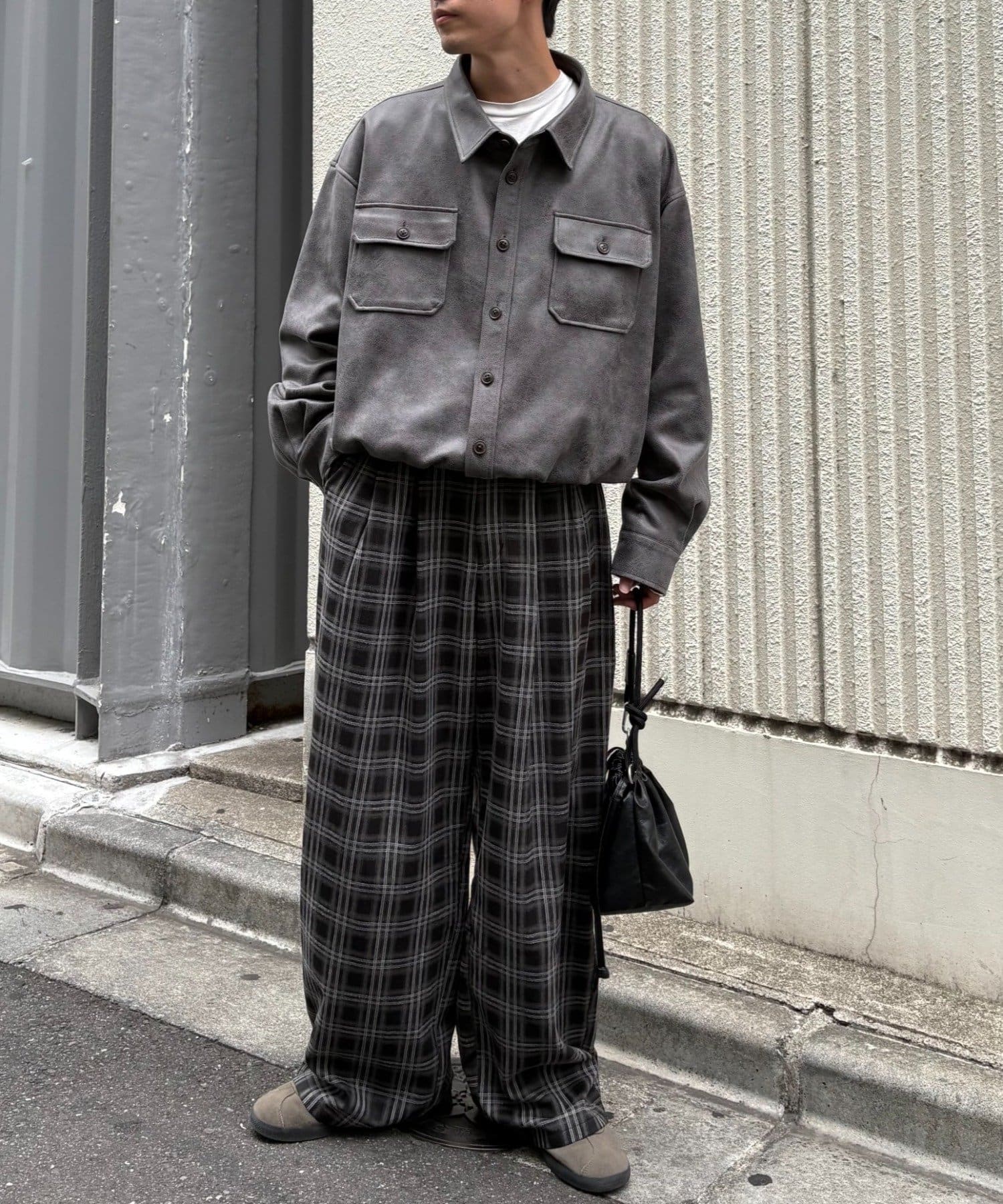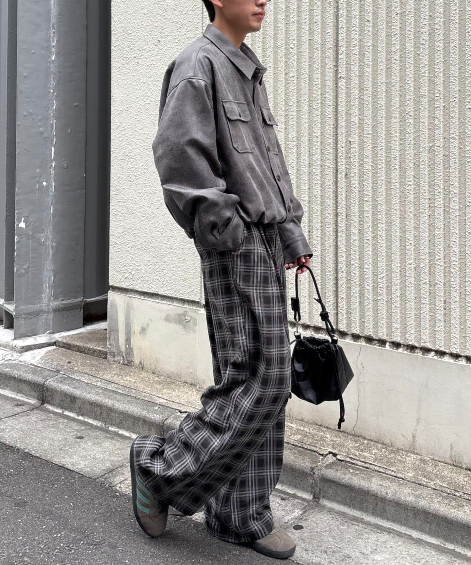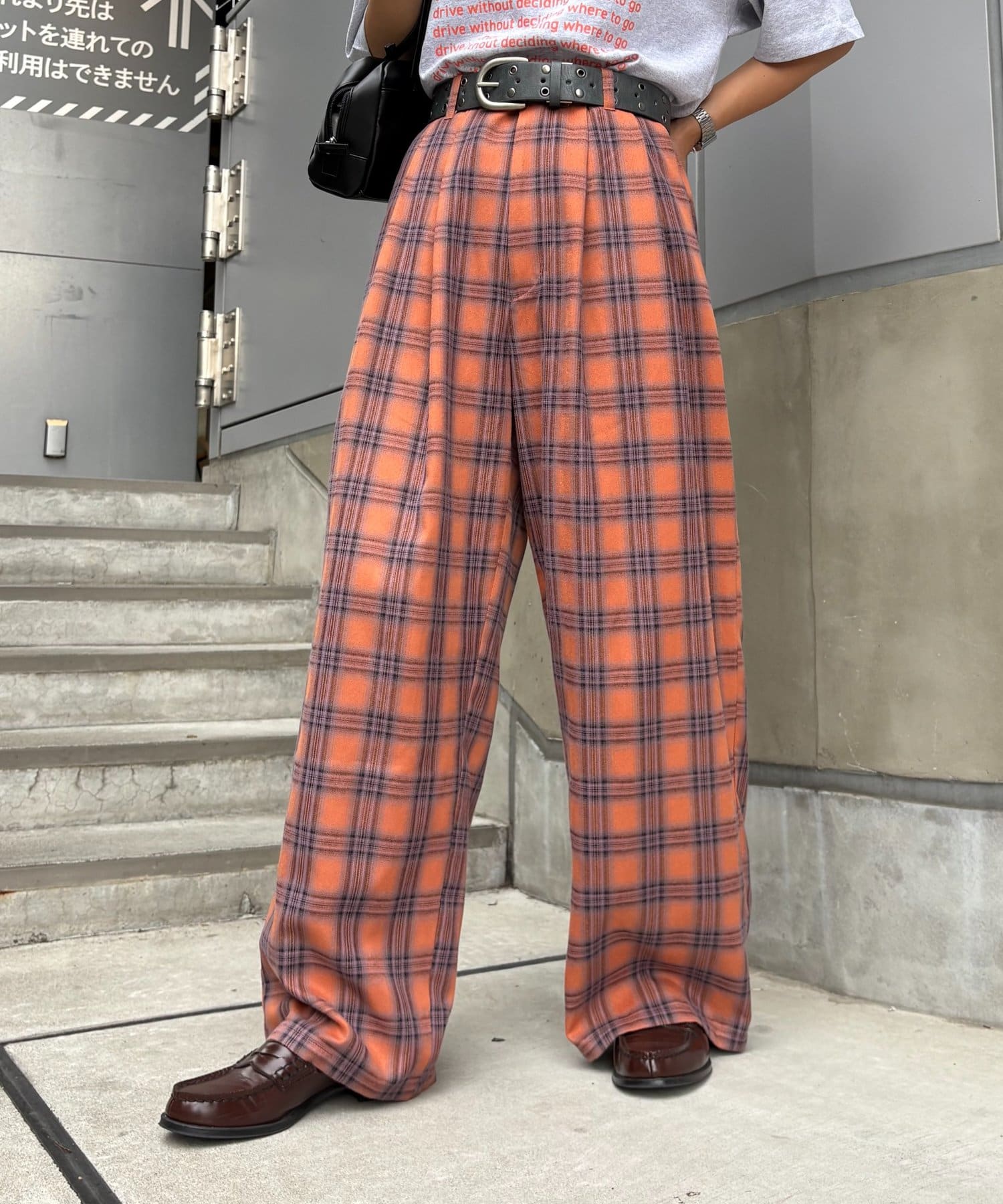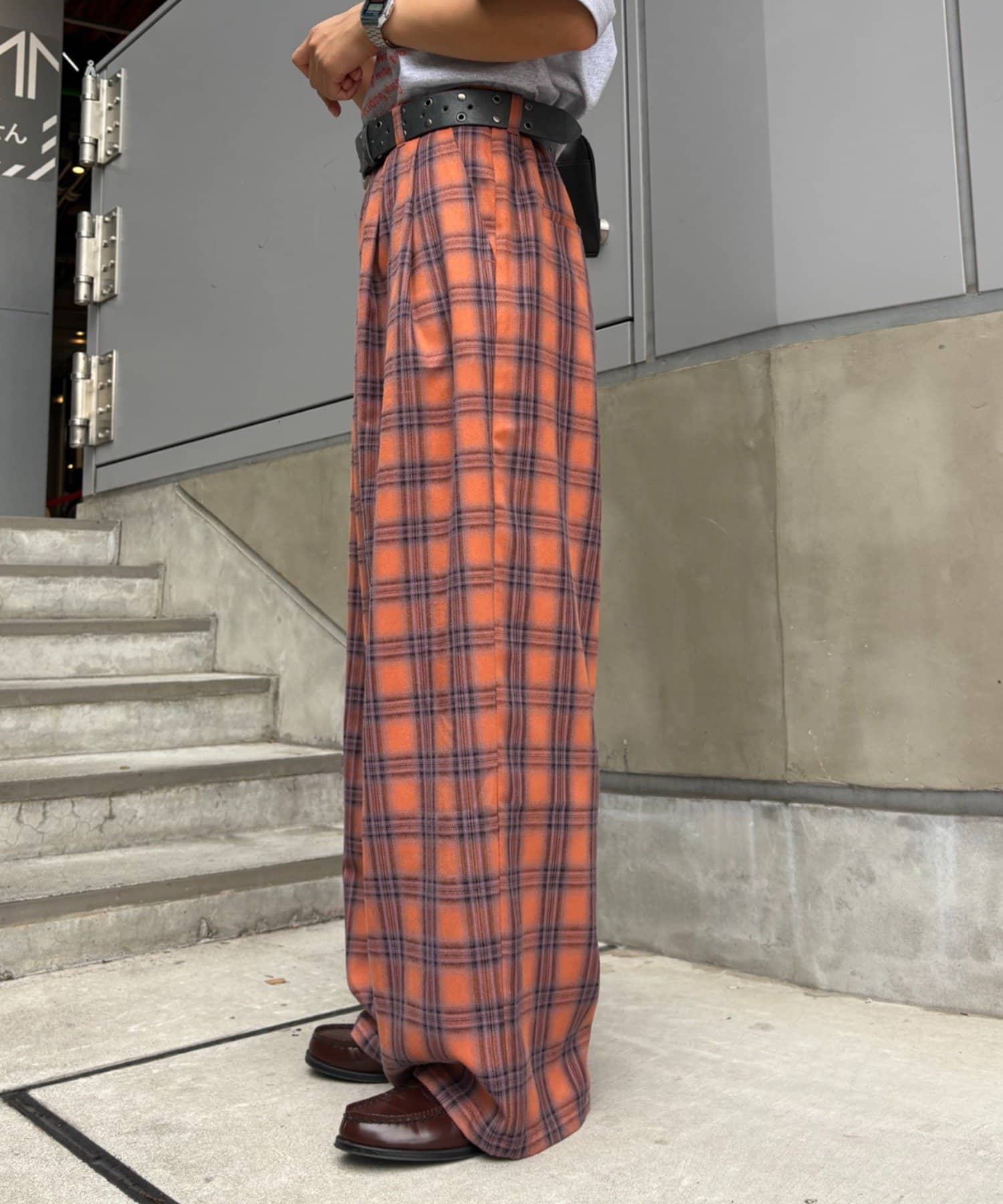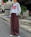 【UNISEX】ネルチェックタックボリュームワイドパンツ