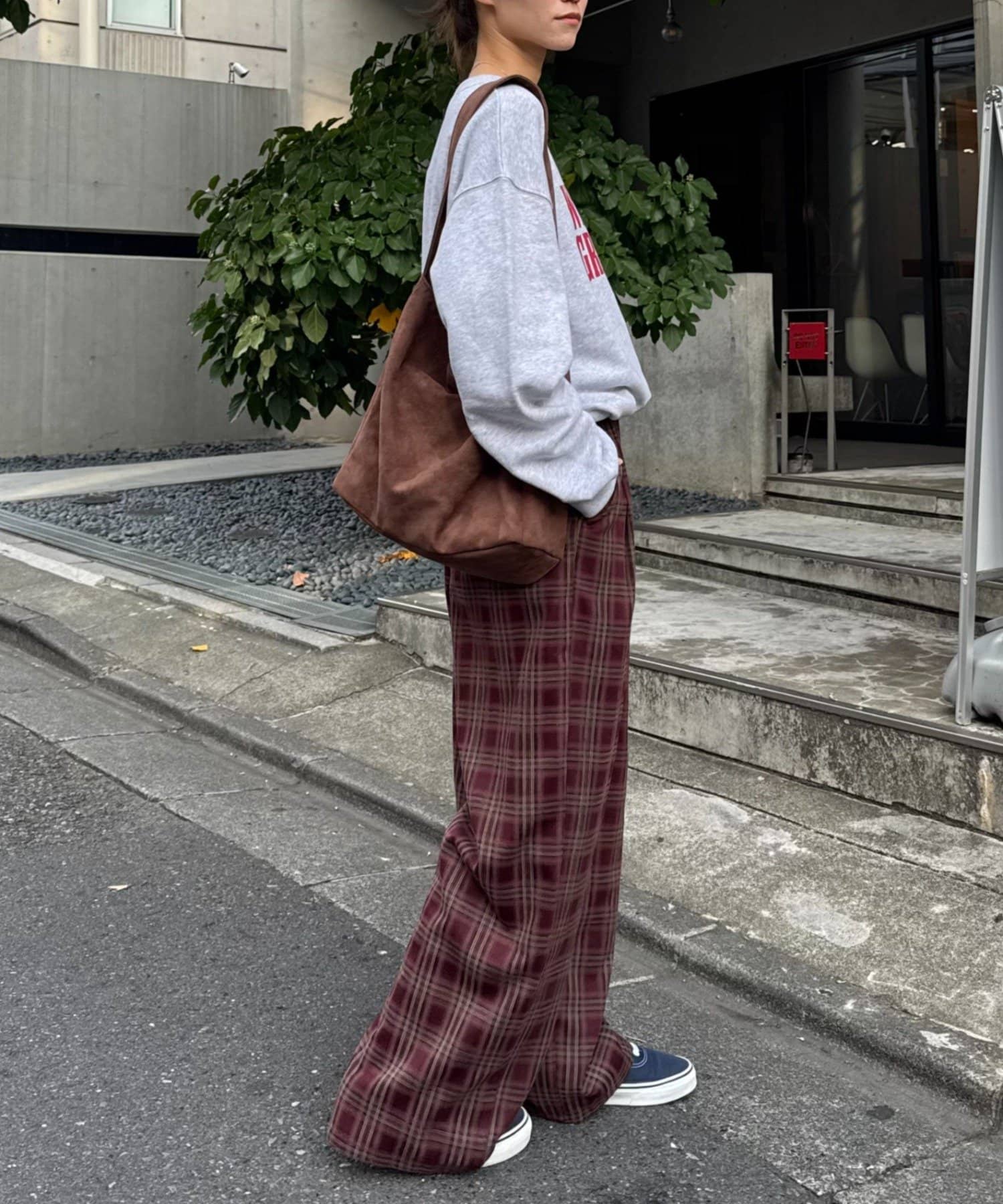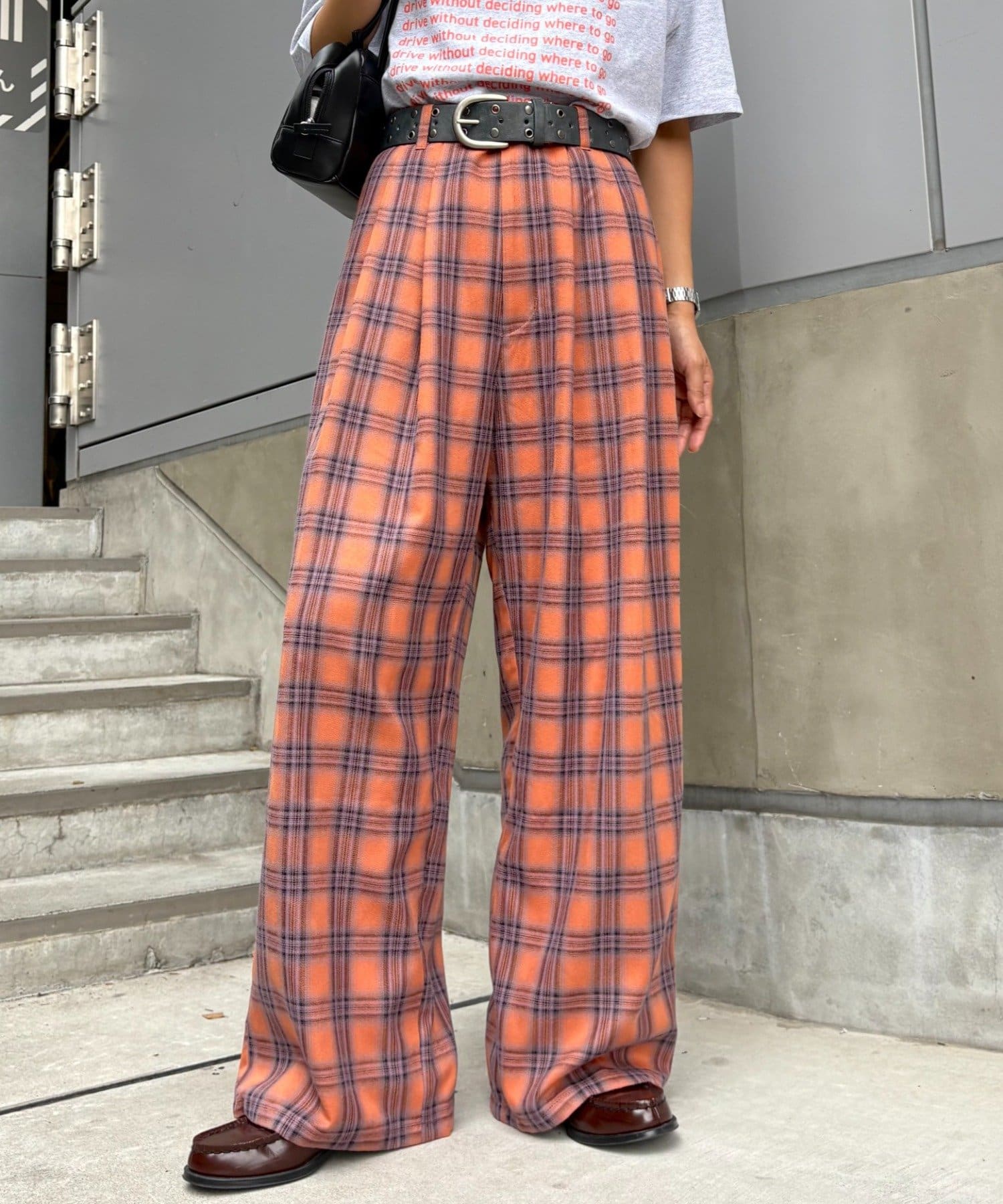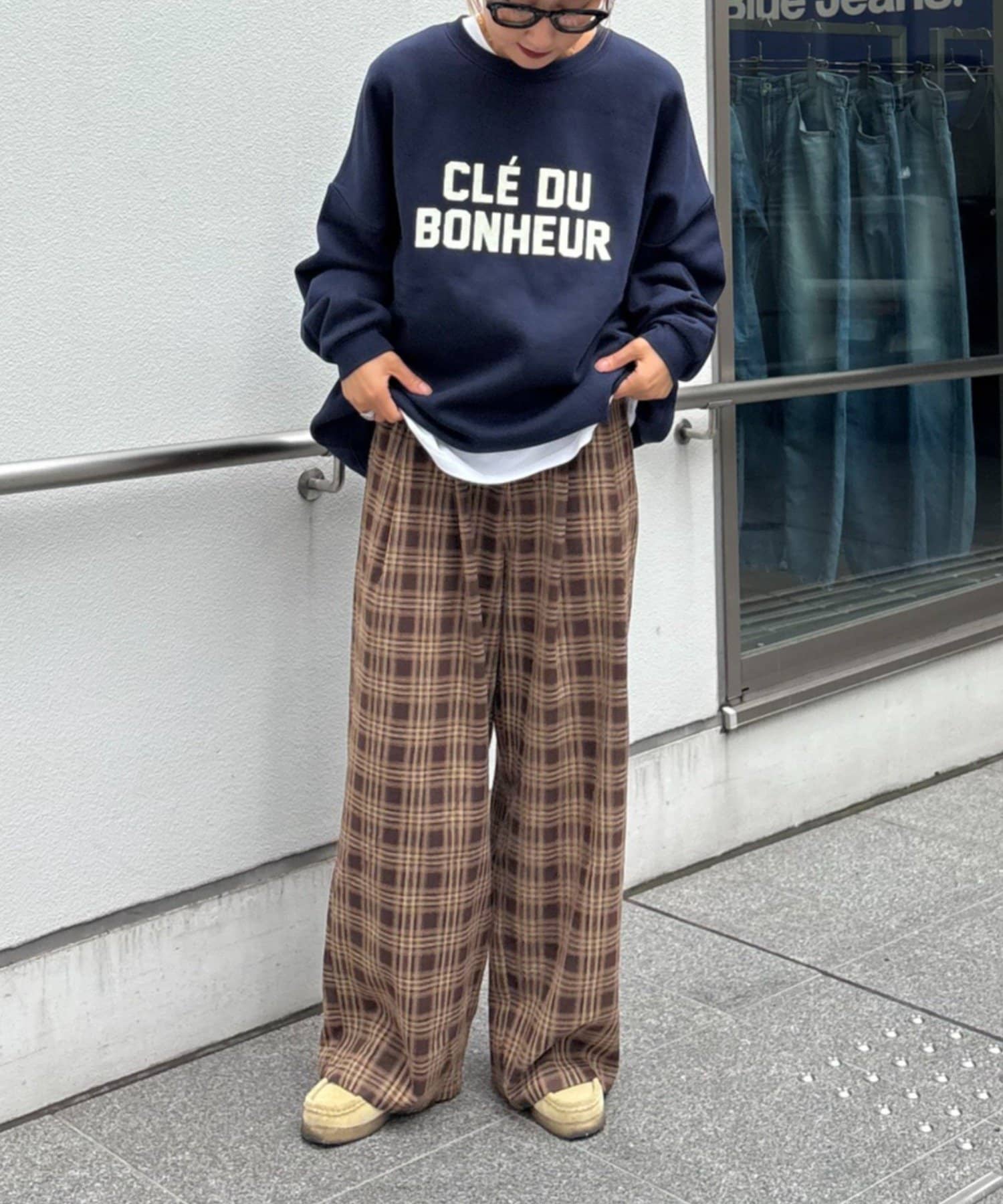 秋冬のスタイリングに取り入れたいオンブレチェックのワイドパンツ!