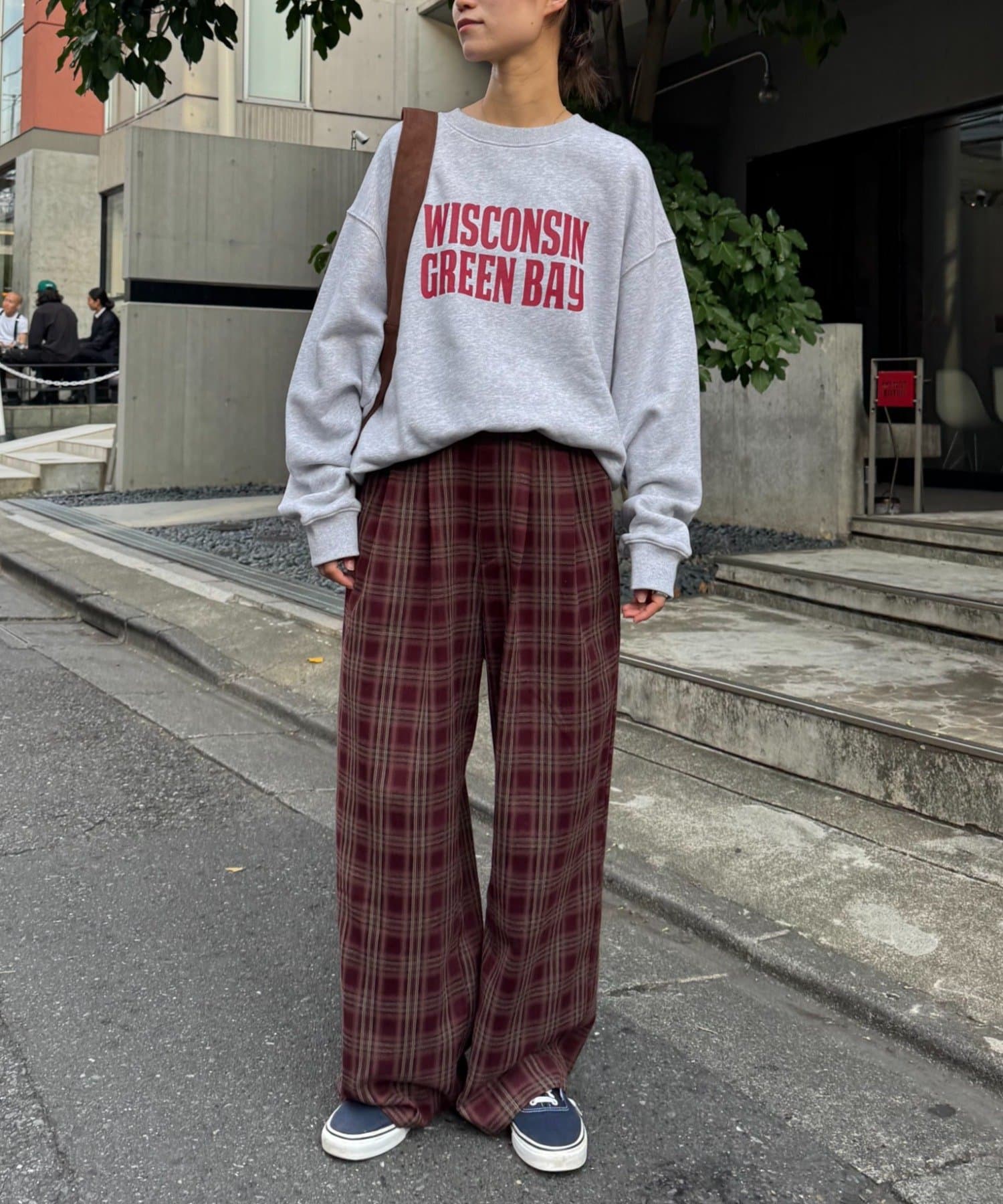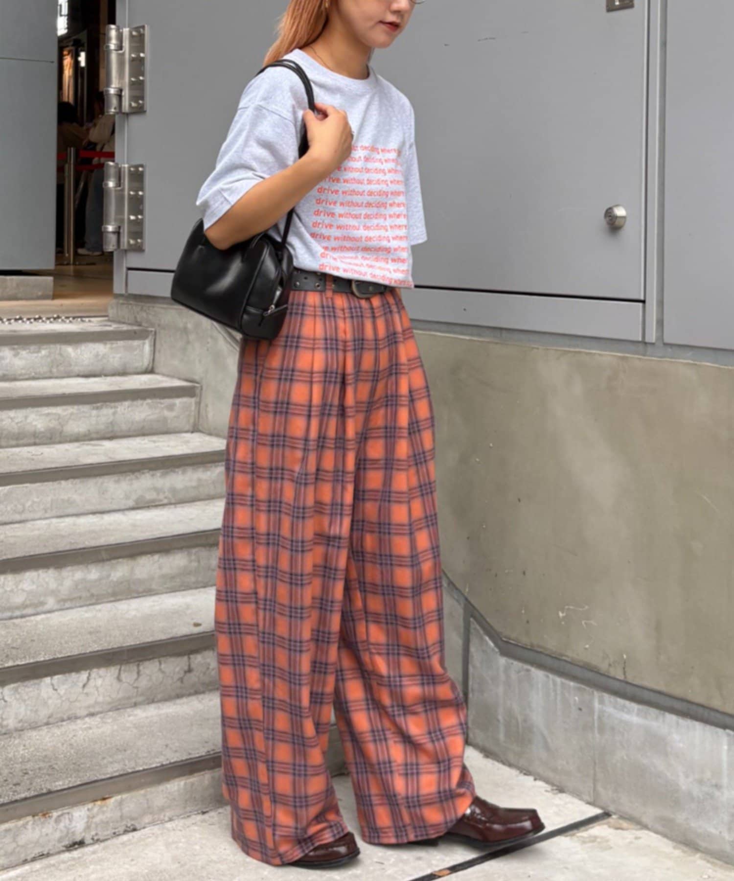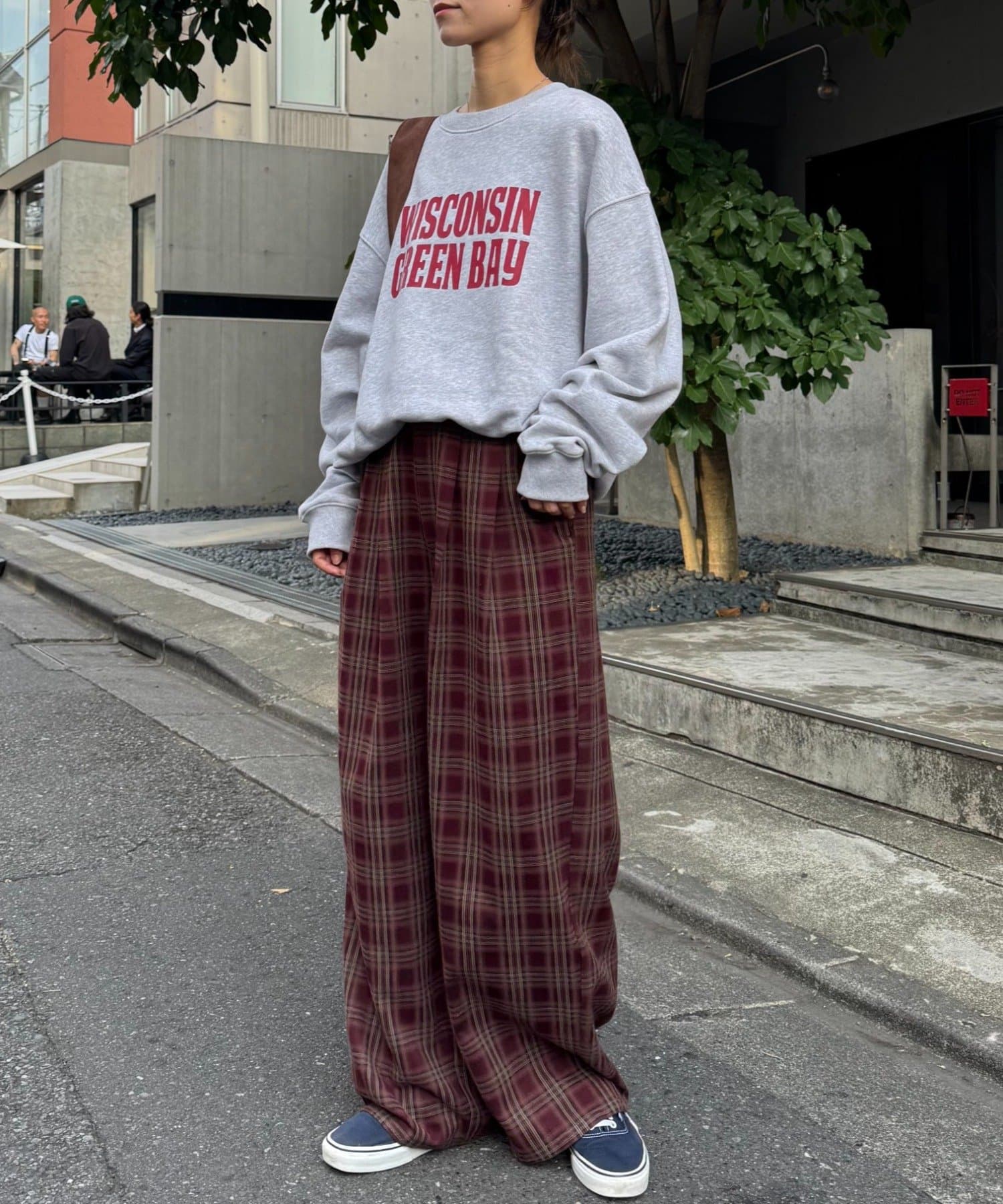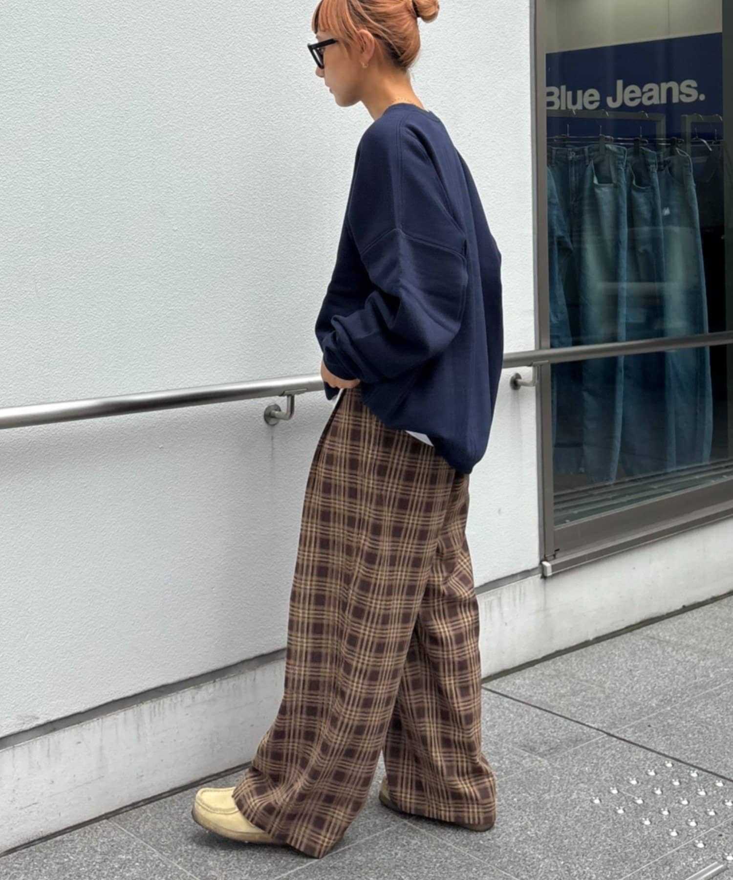 秋冬のスタイリングに取り入れたいオンブレチェックのワイドパンツ!