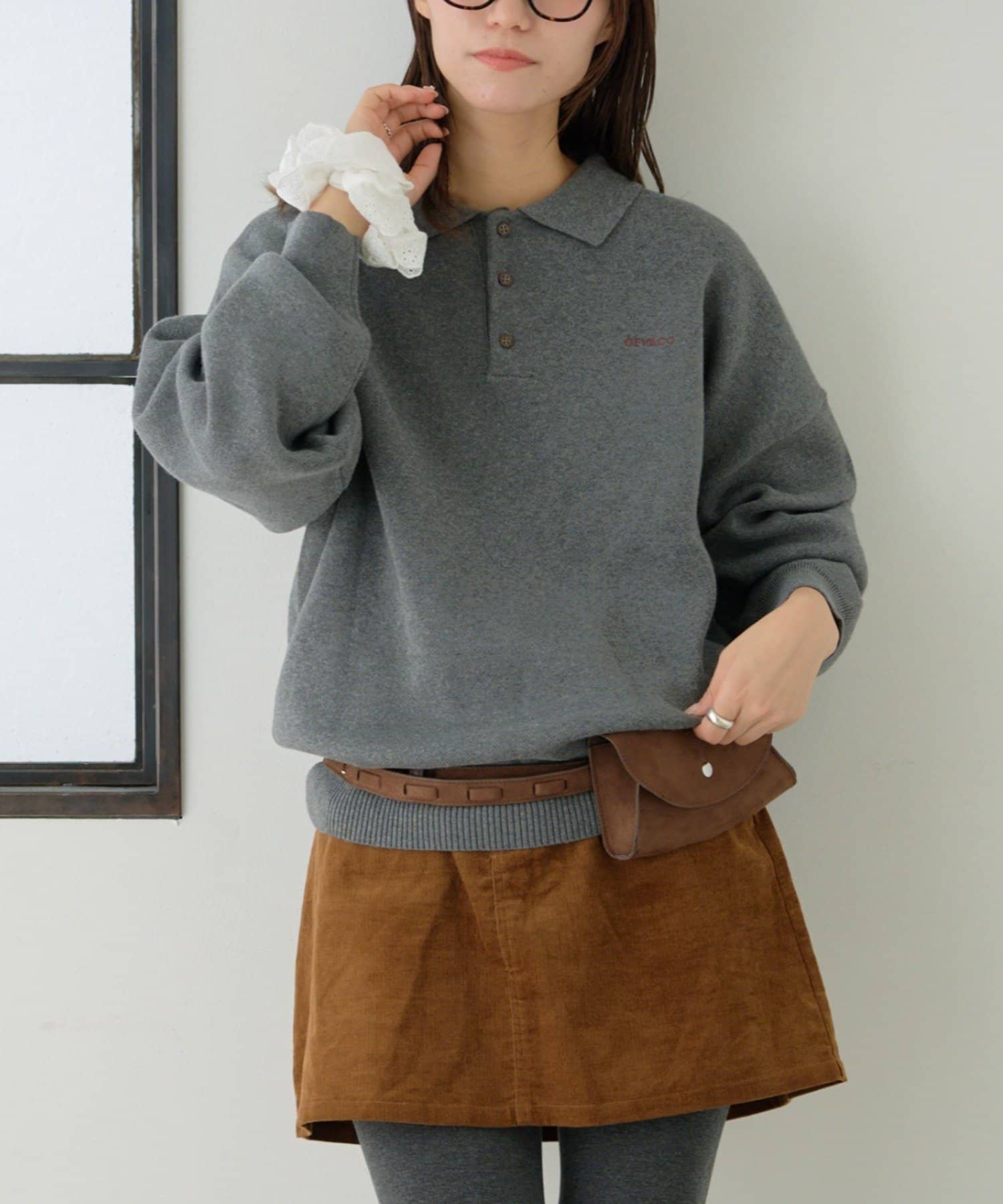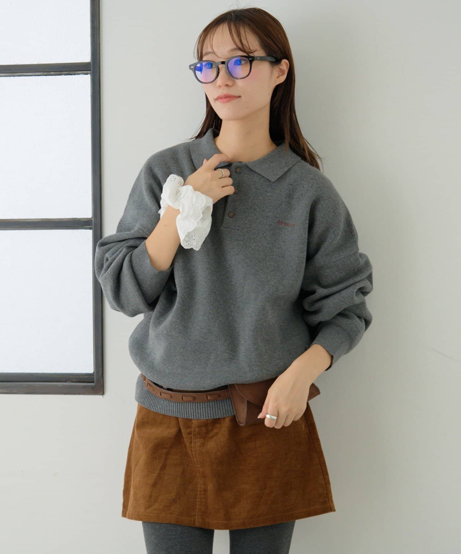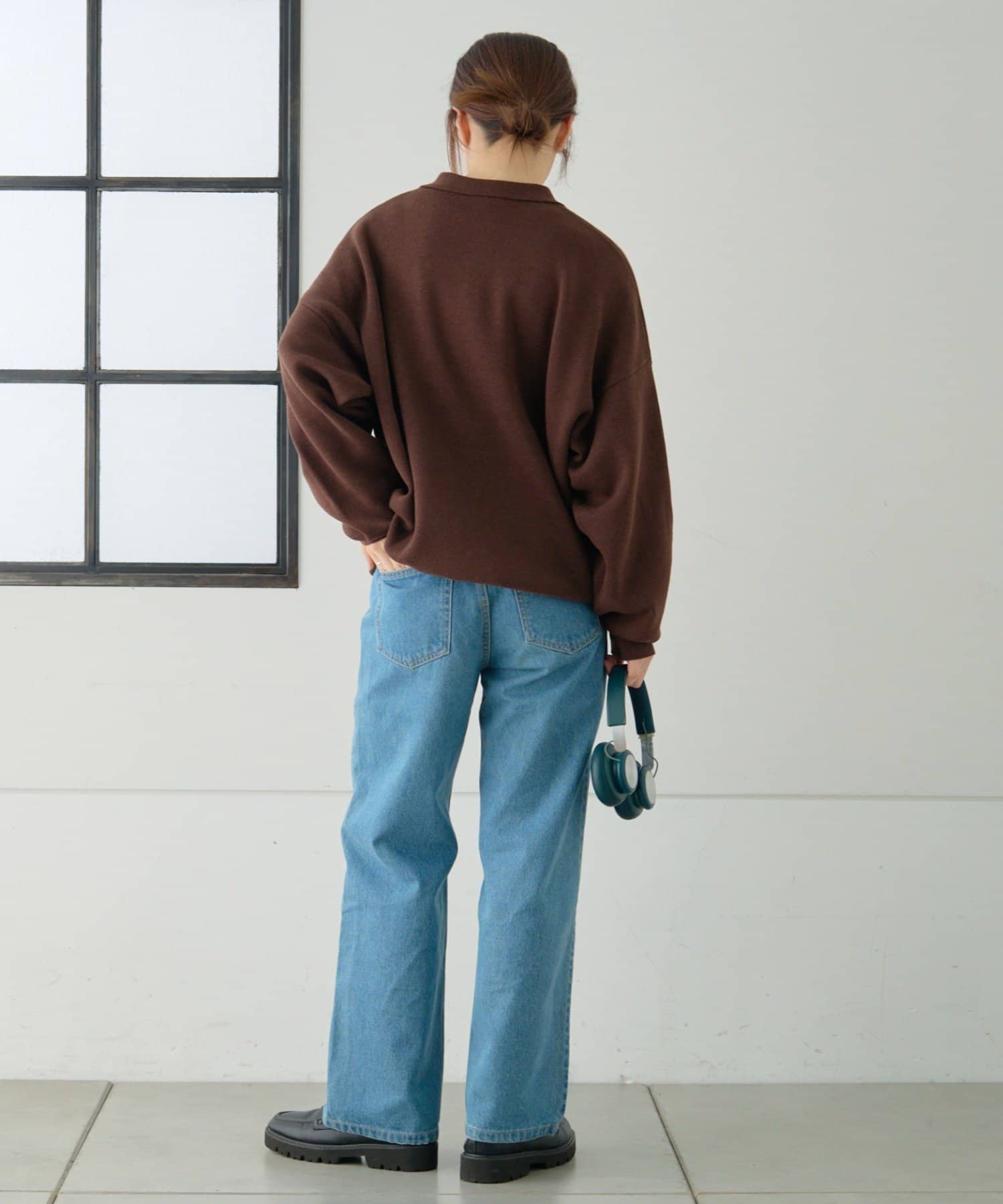 インナーに襟付きシャツやボーダーTを合わせて、チラ見せするスタイリングもおすすめ◎
