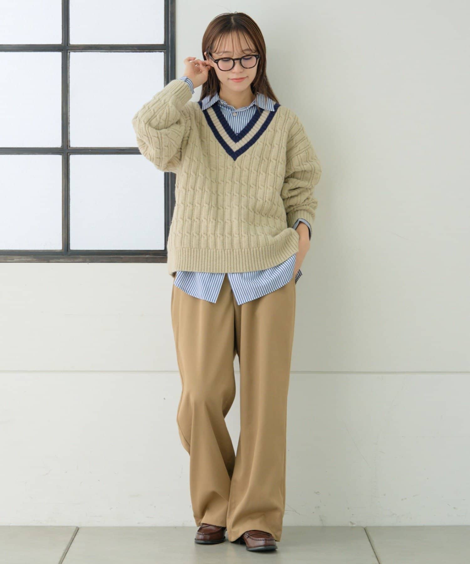 シャツをレイヤードして襟をのぞかせれば、こなれ感たっぷりのトラッドスタイルに。