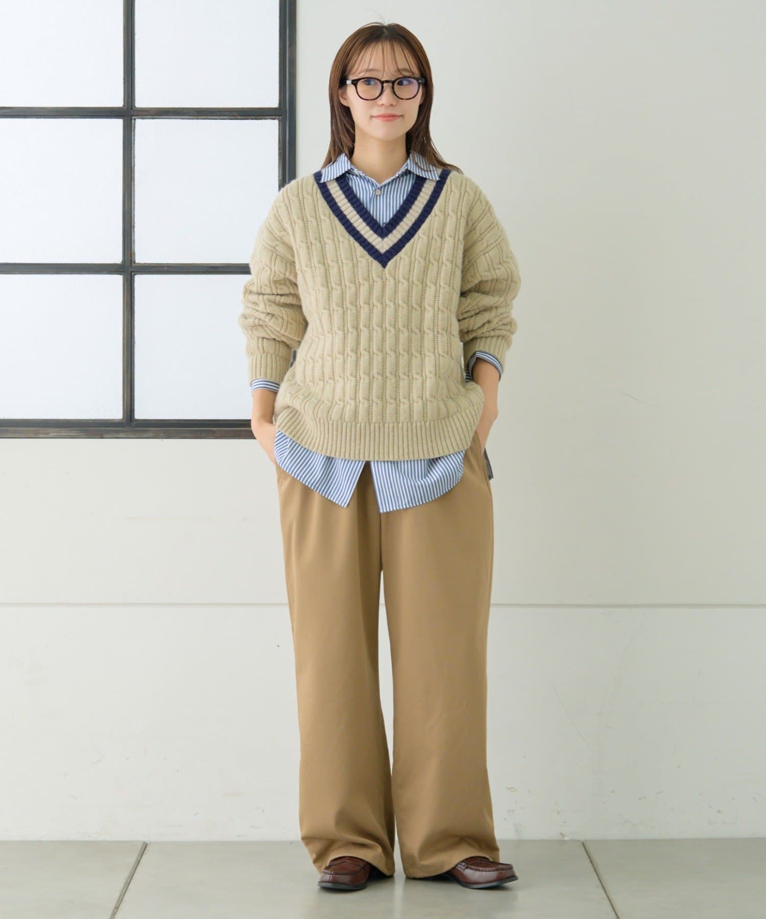 スニーカーやローファーなど、足元次第で幅広い雰囲気を楽しめます。