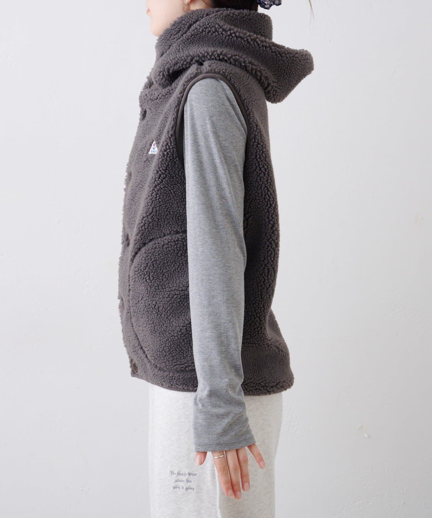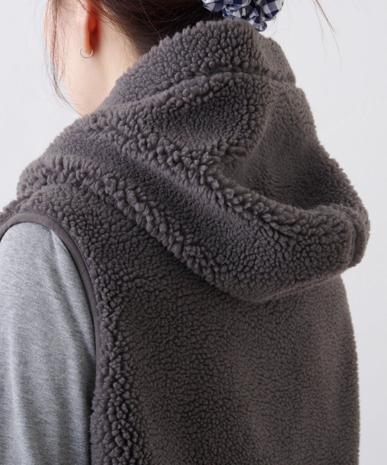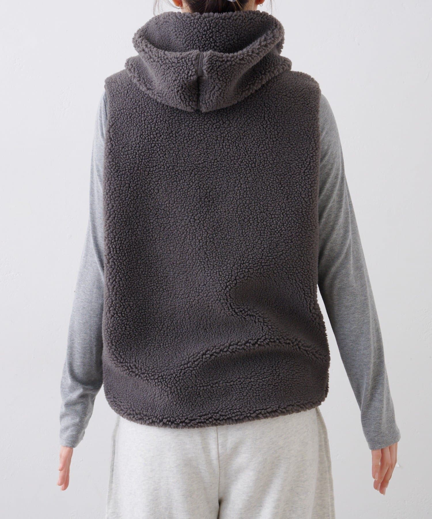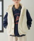 ふっくらと柔らかな素材感が特徴のボア素材が、着るだけで季節感を演出してくれるフード付きベスト。