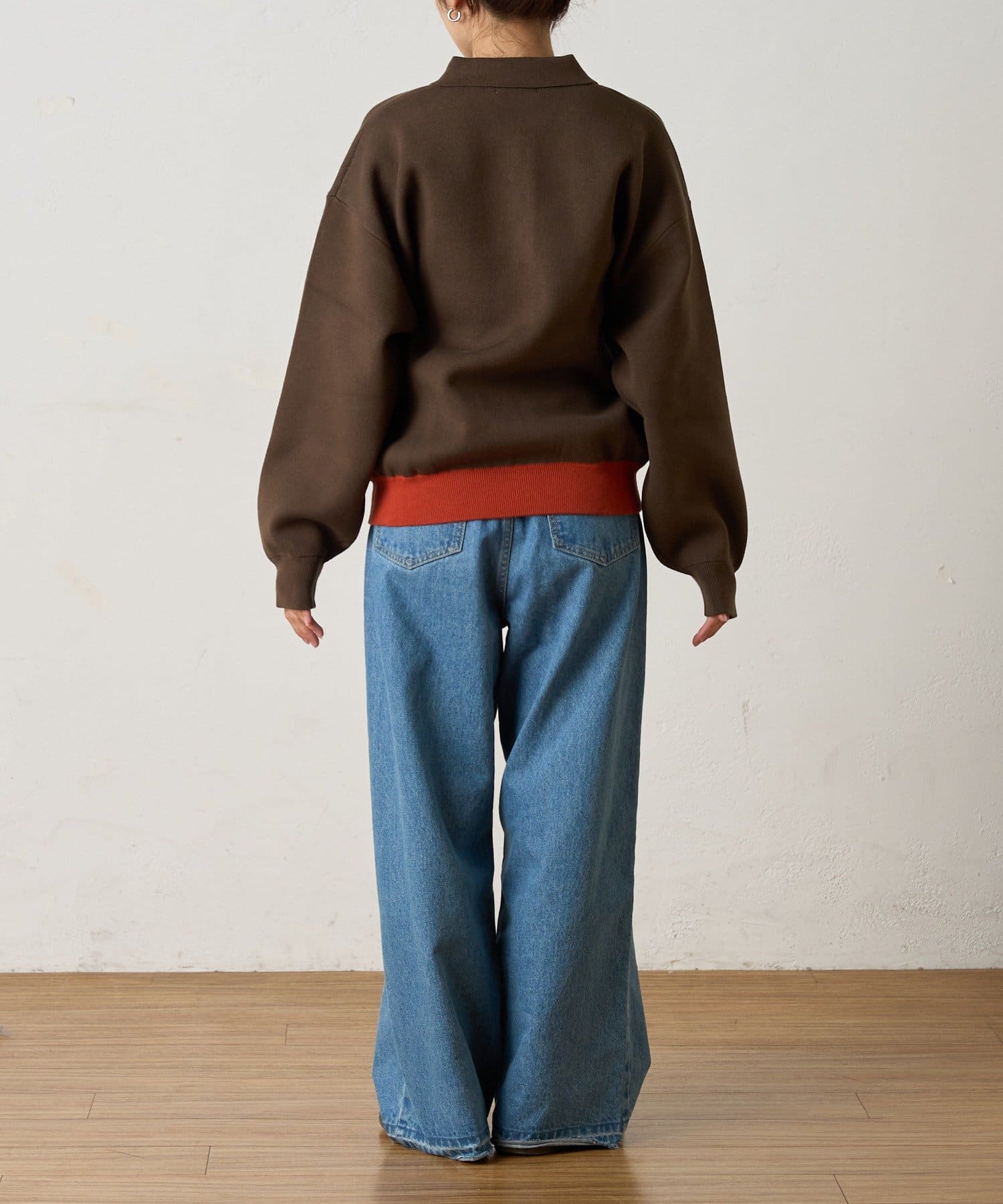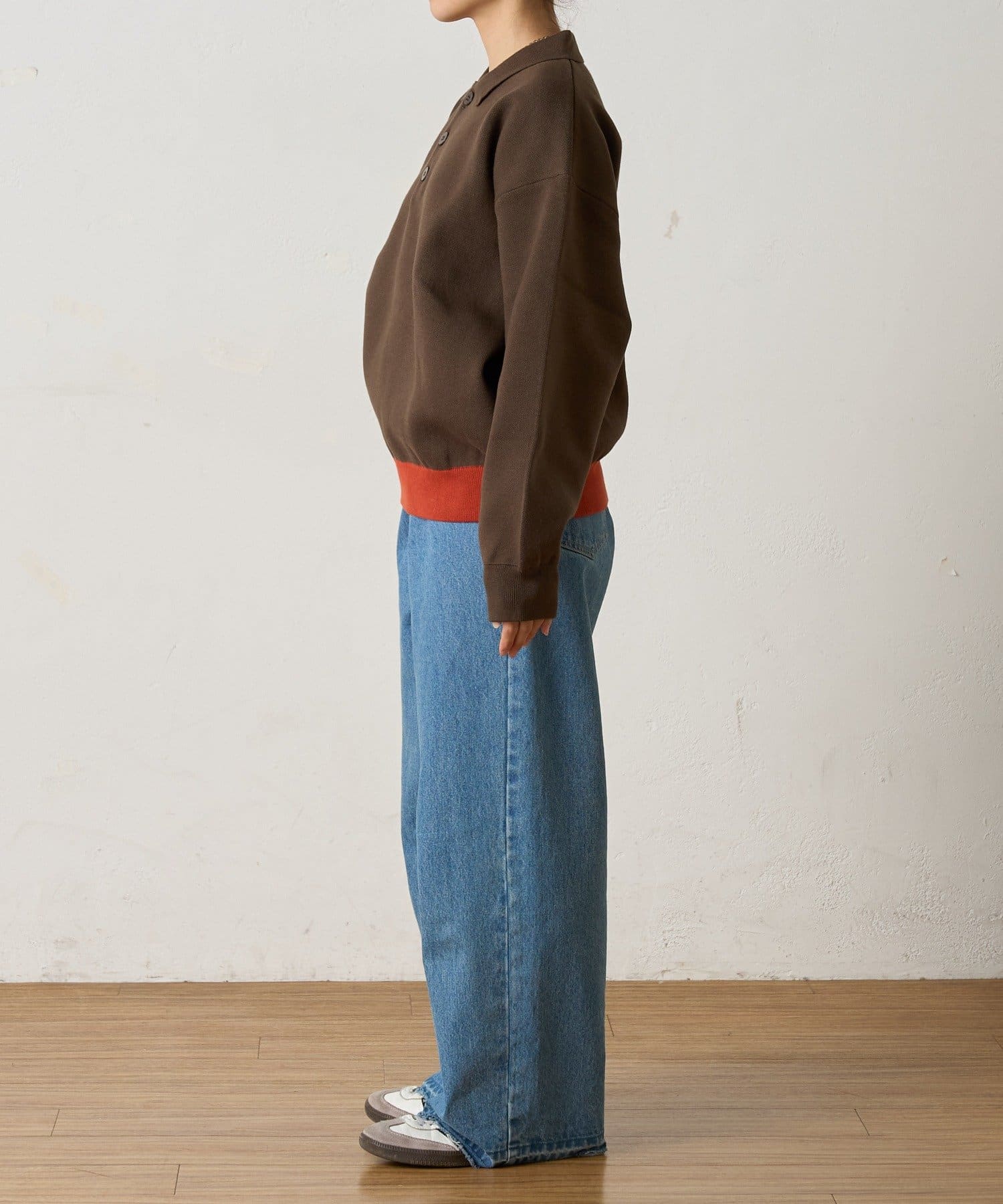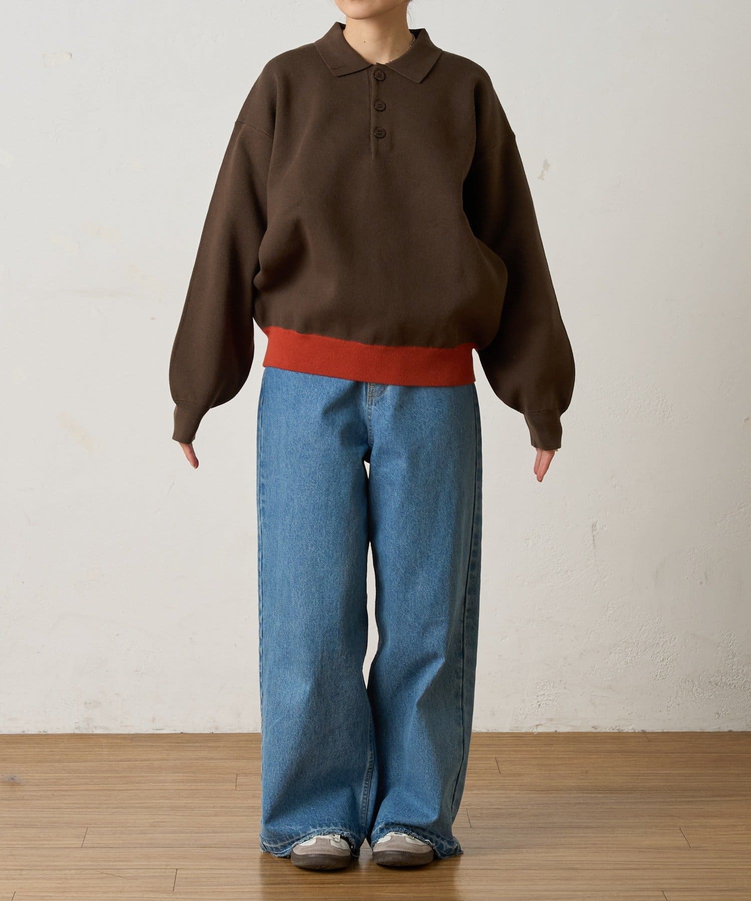 ゆったりとしたシルエットで、リラックス感がありながらも、裾のリブ配色がコーディネートにメリハリをプラス。