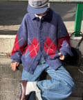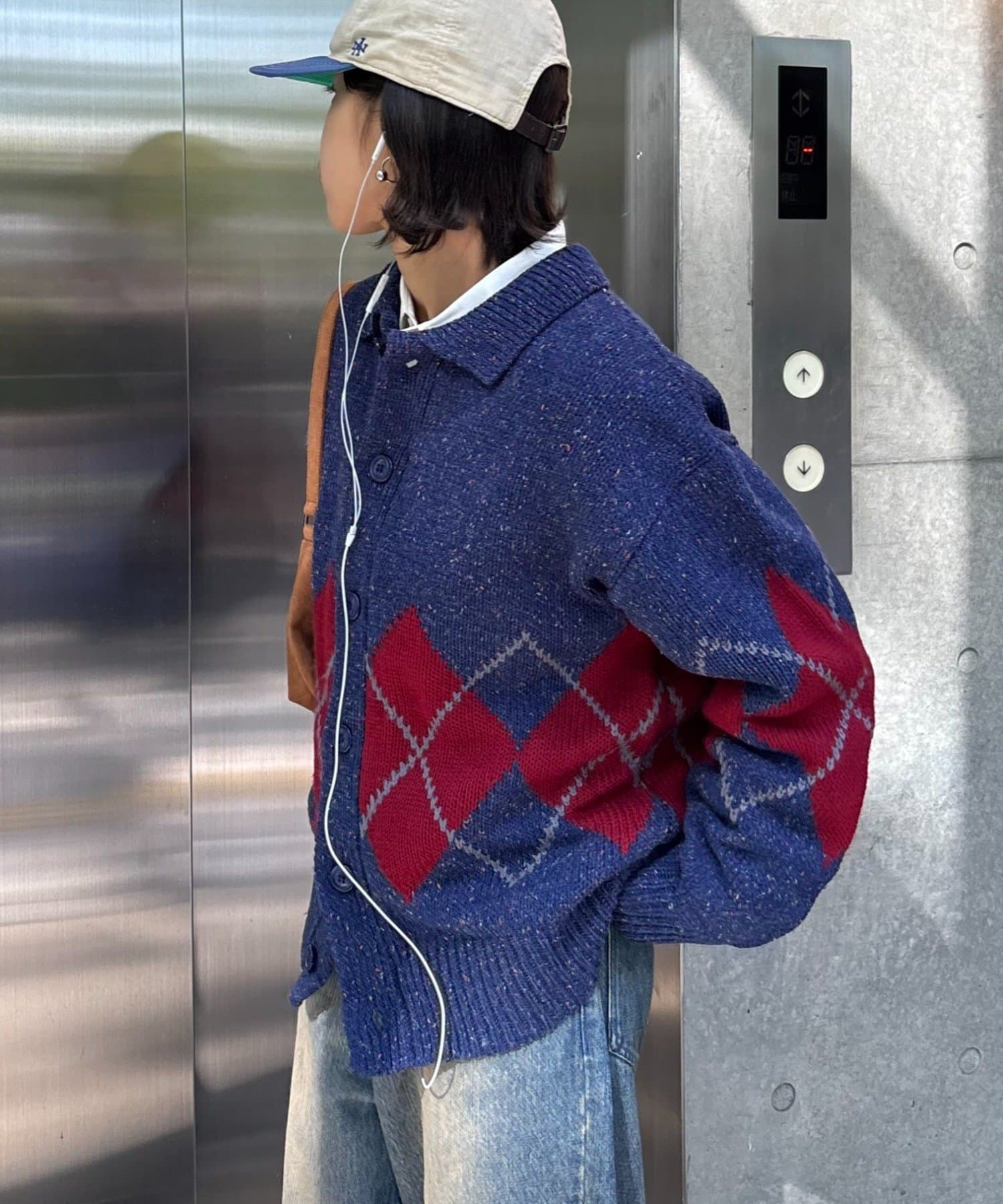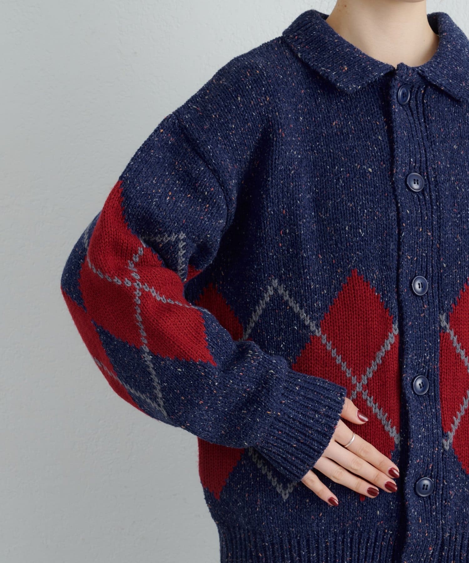 【UNISEX】アーガイル襟ネップニットカーディガン