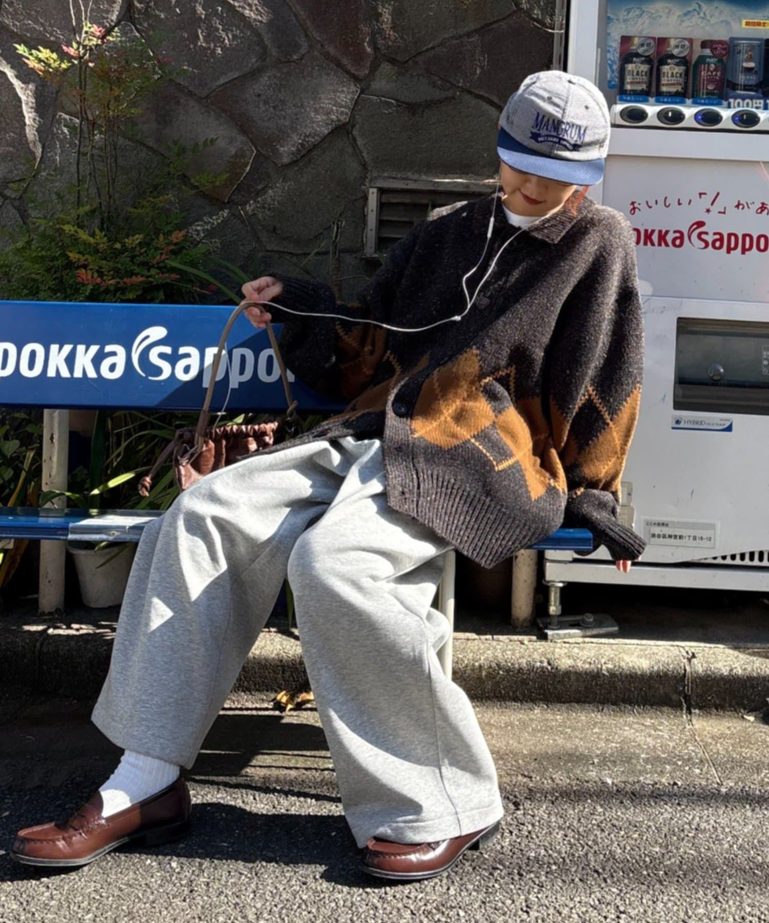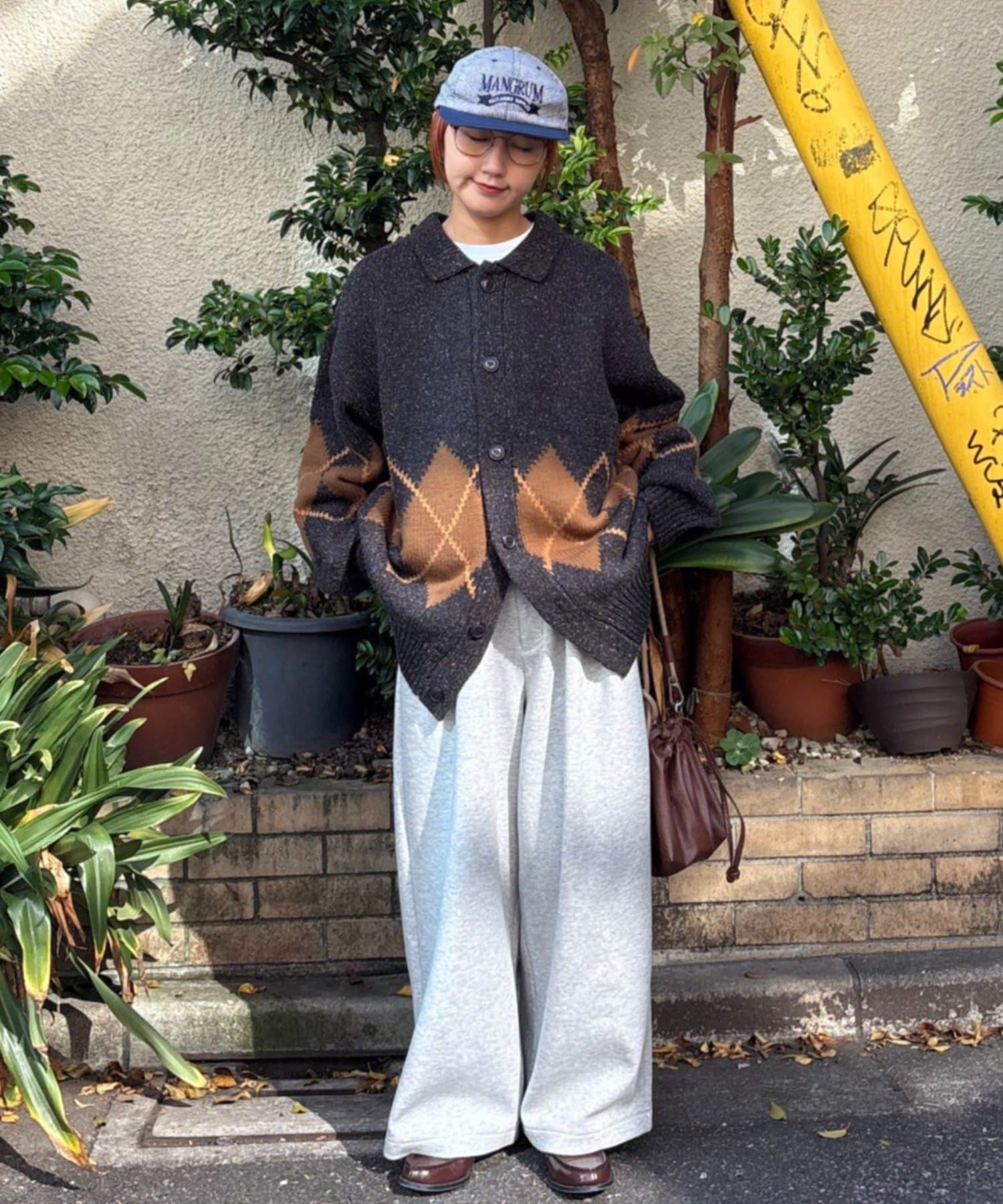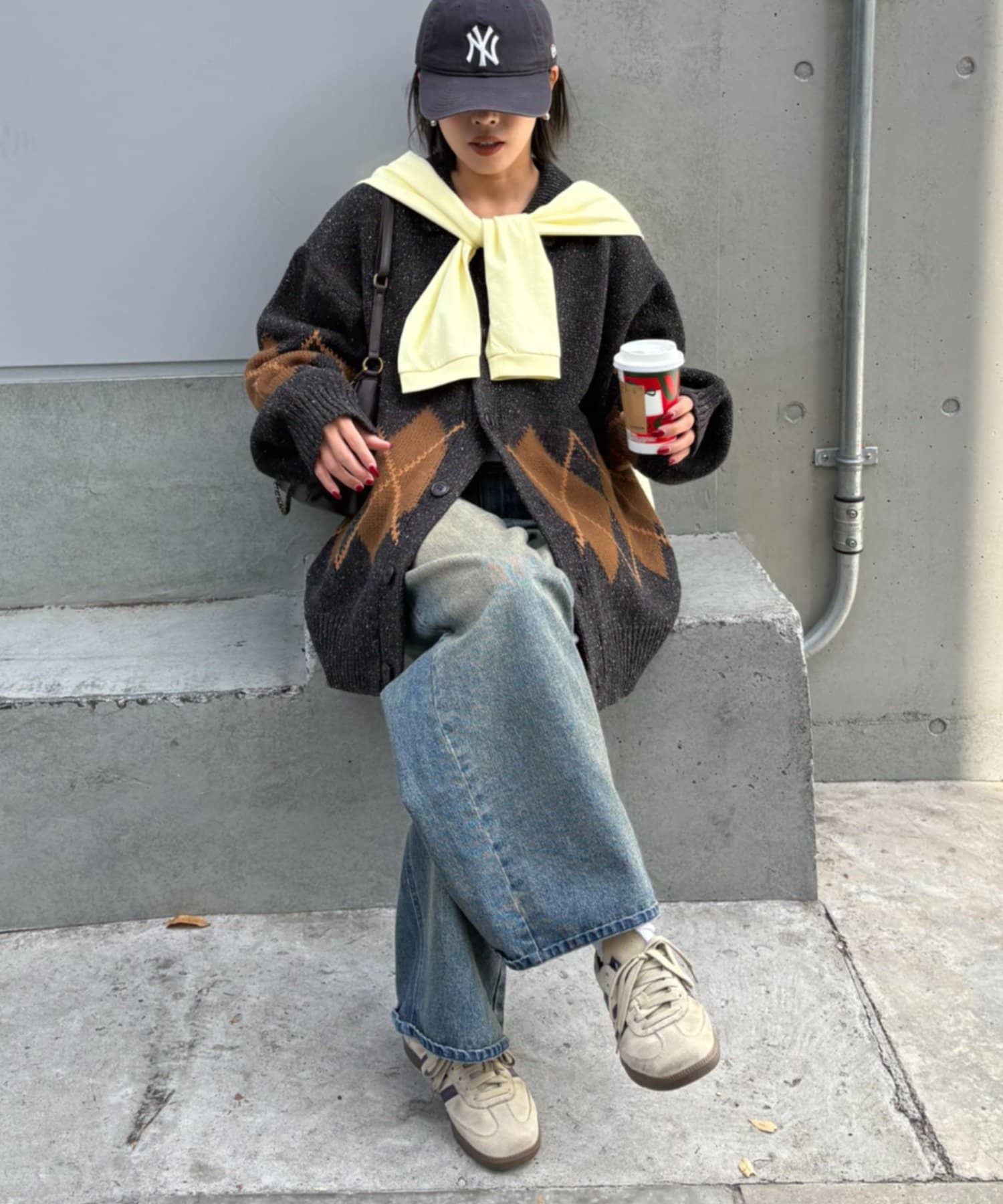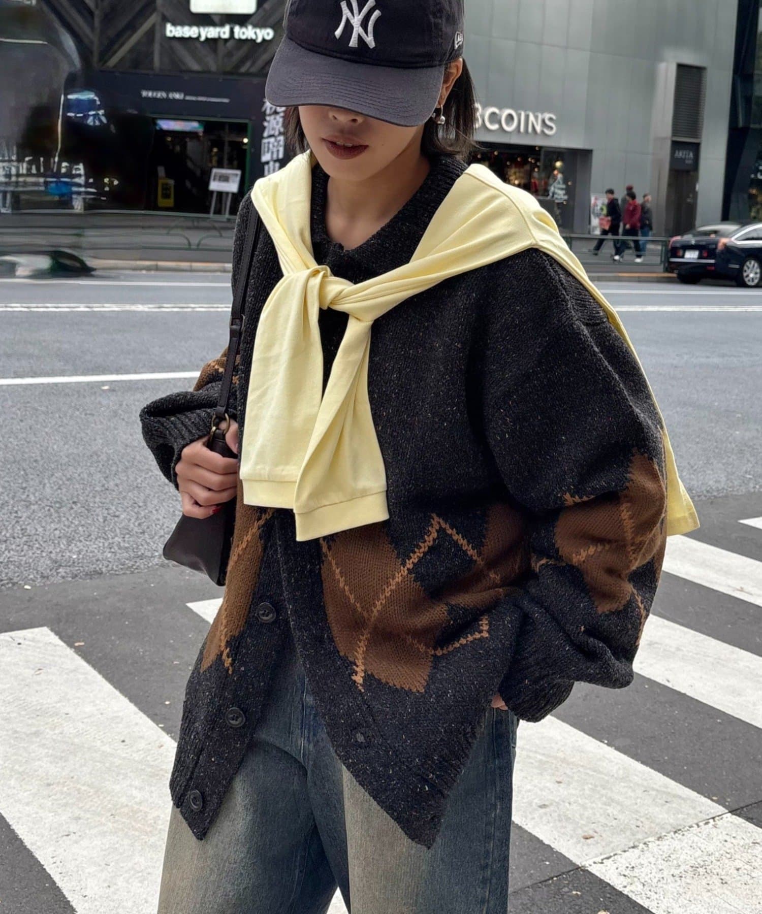 どこか懐かしい雰囲気のアーガイル柄ニット。