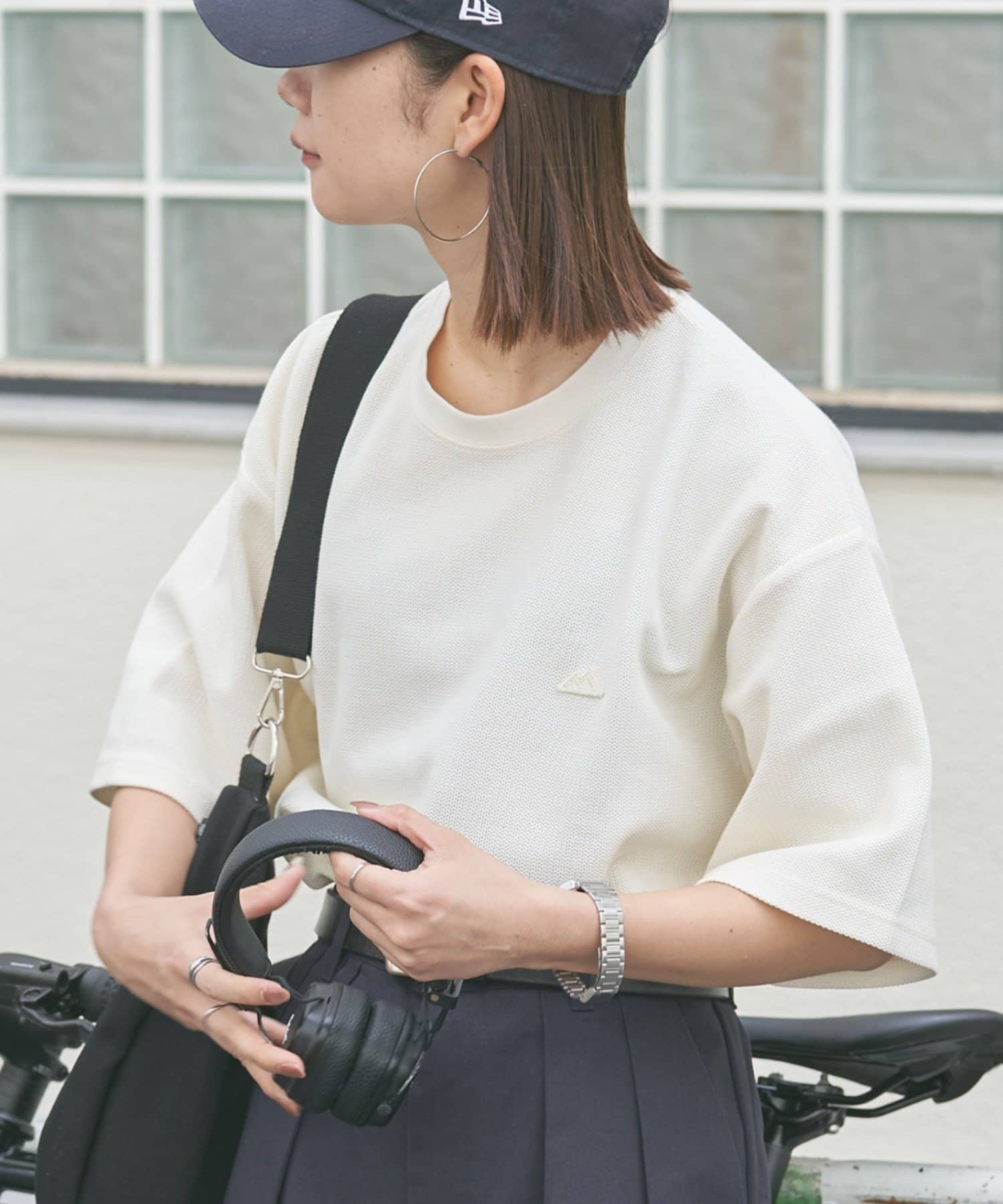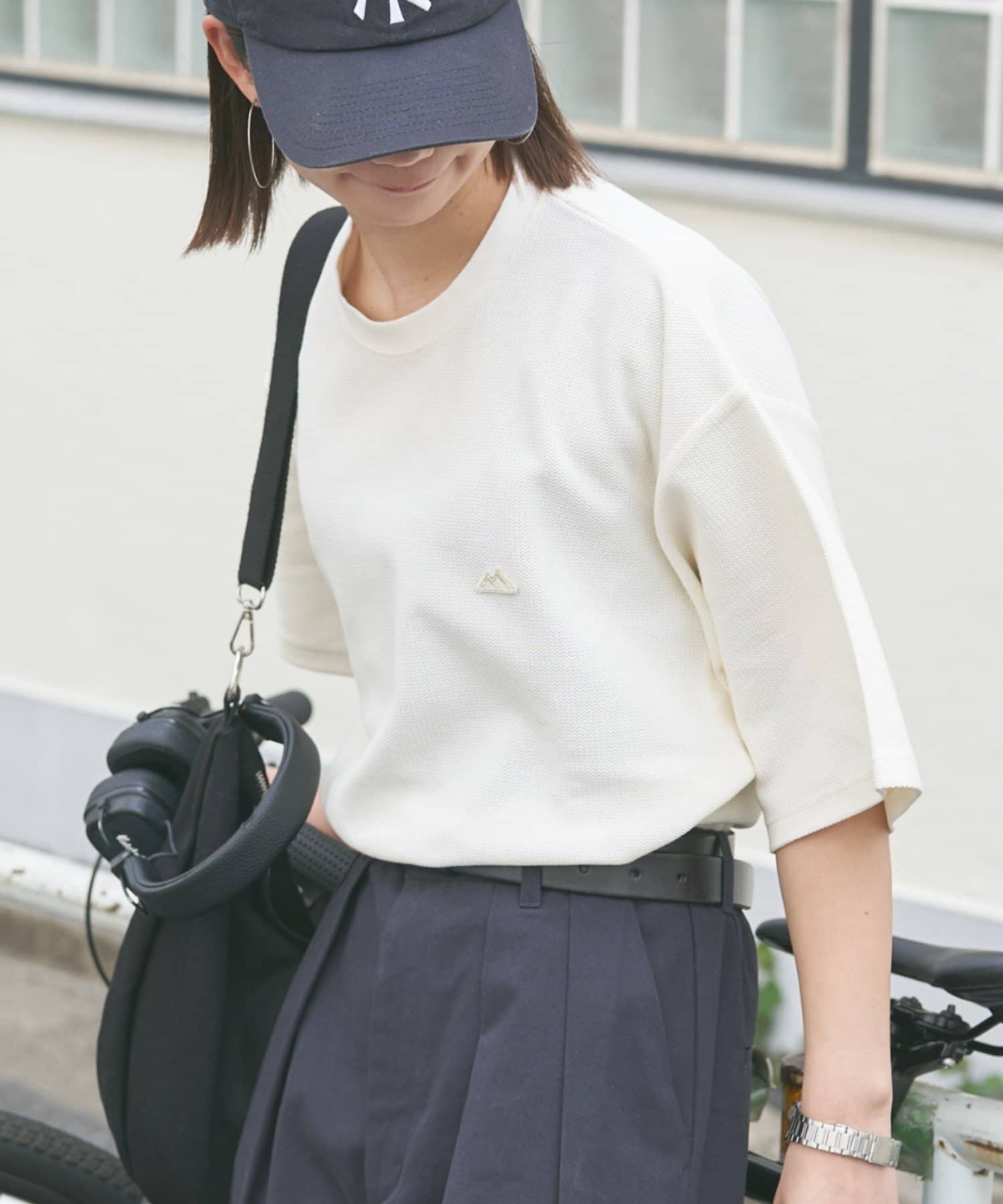 胸元に施されたさりげないワッペンが、おしゃれ見えポイント◎