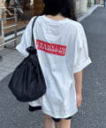 シンプルながらも力強いブランドロゴが、胸元と背面に存在感を放ちます。