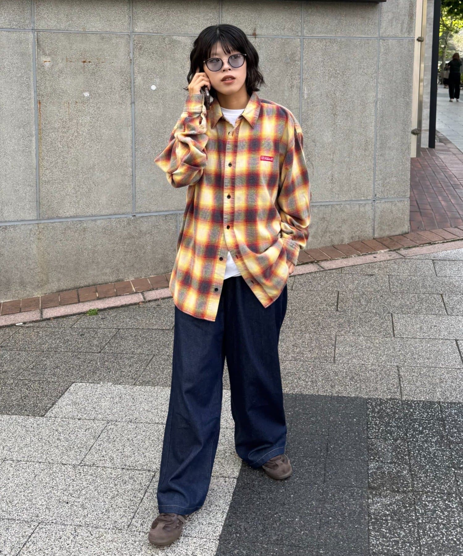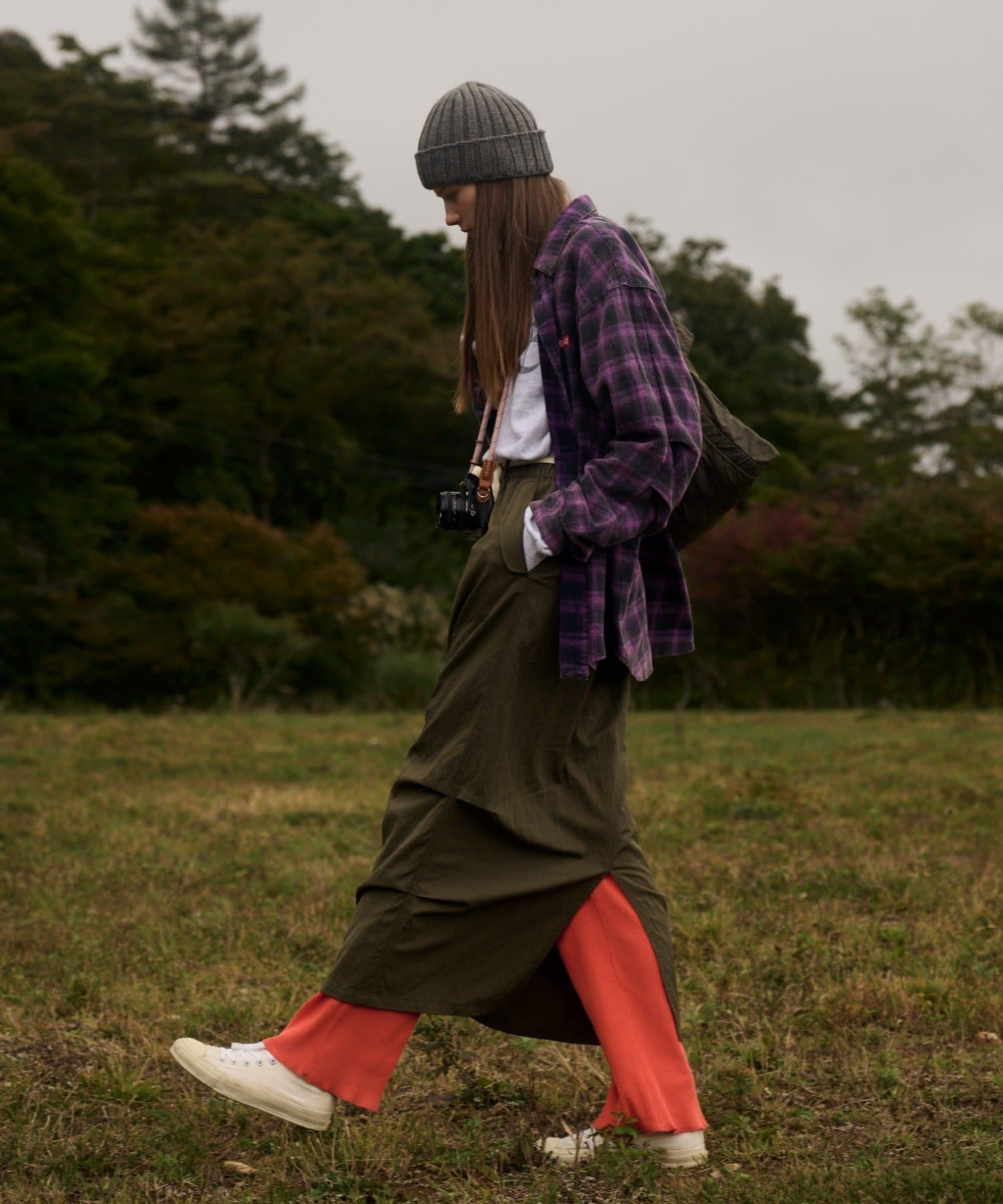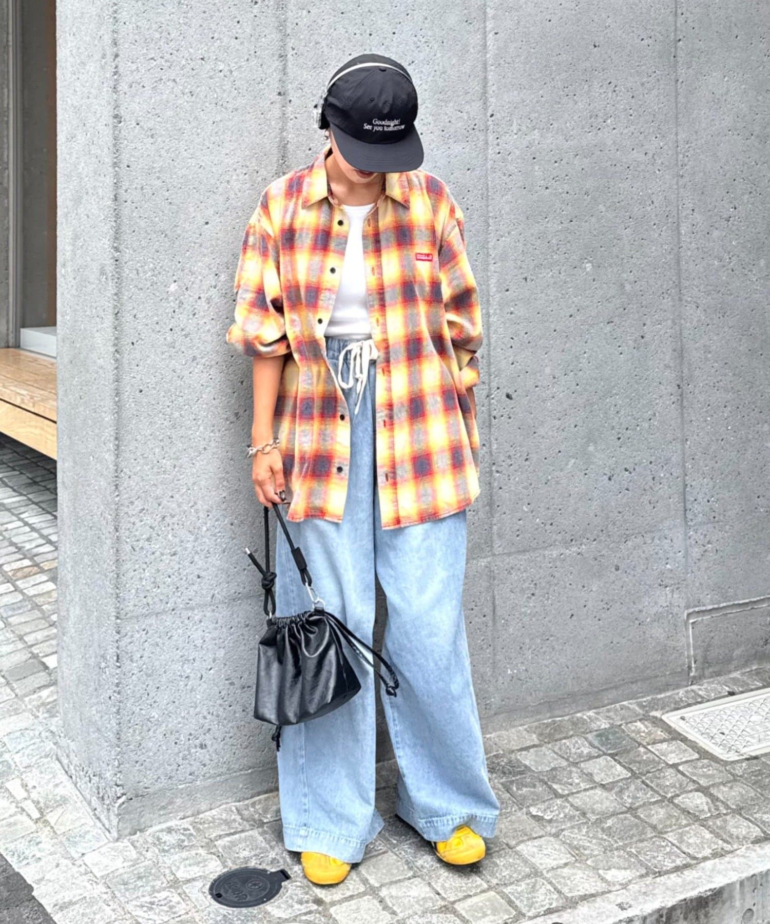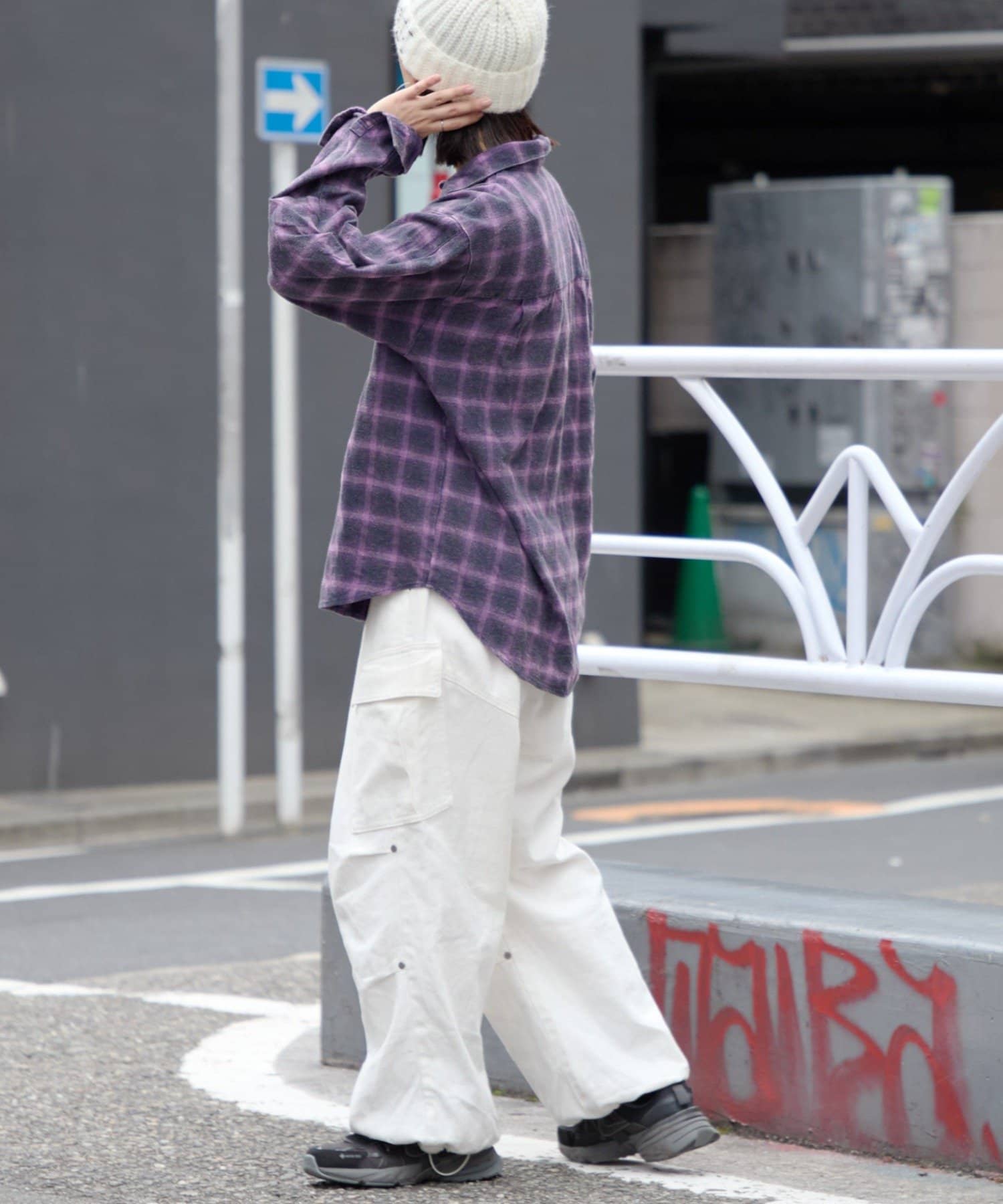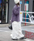 足元はスニーカーやブーツを合わせて、カジュアルさをプラス。