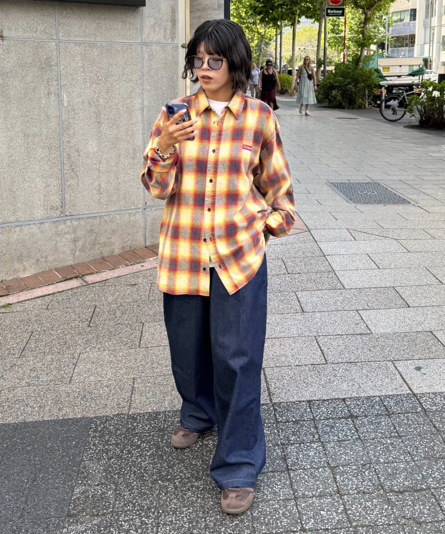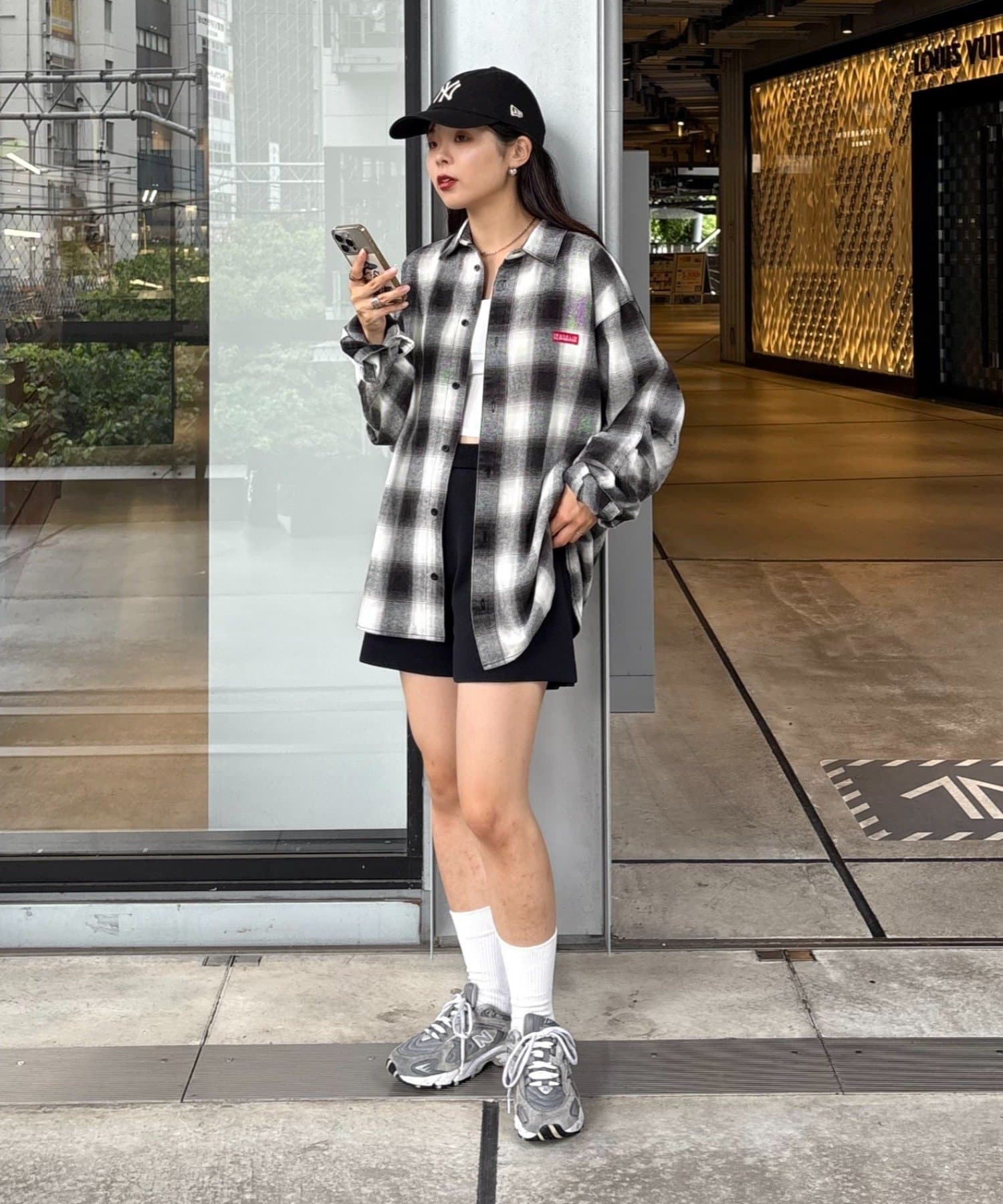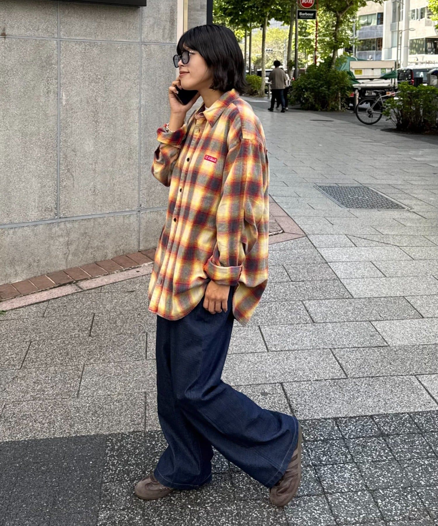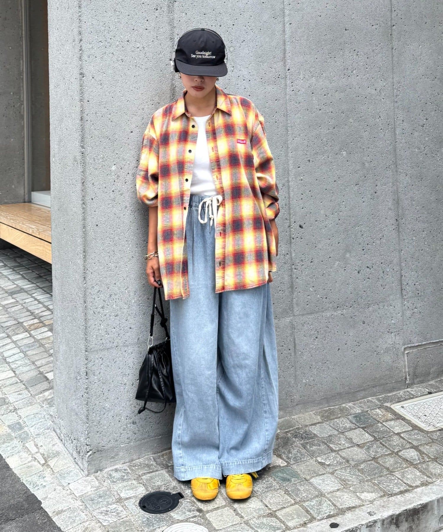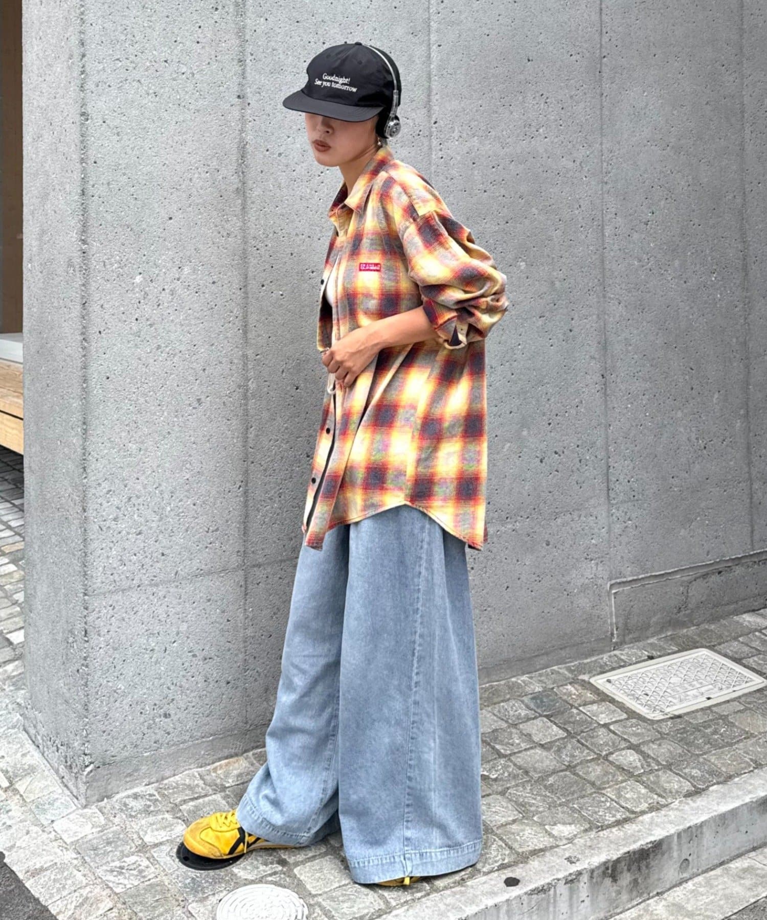 足元はスニーカーやブーツを合わせて、カジュアルさをプラス。