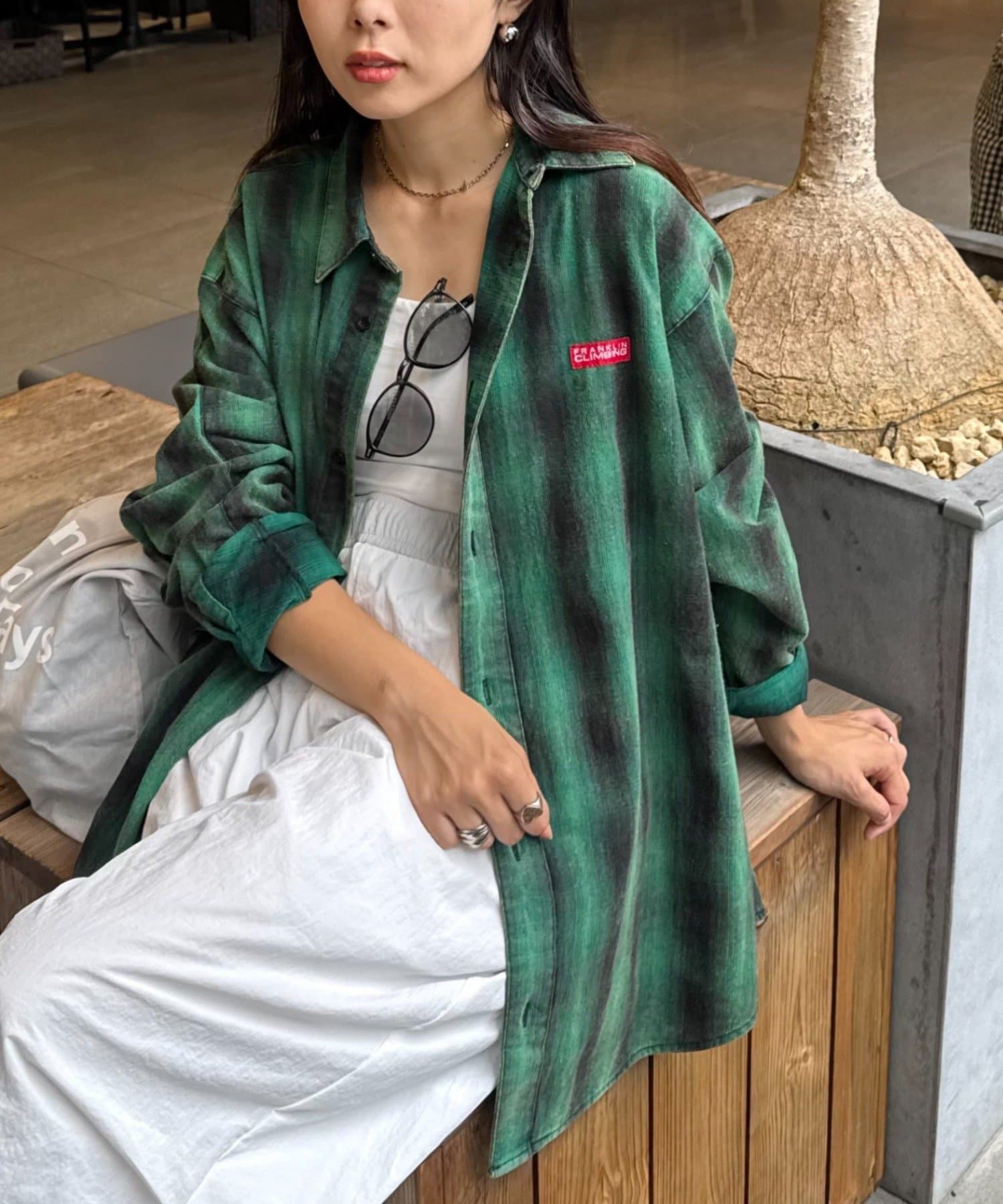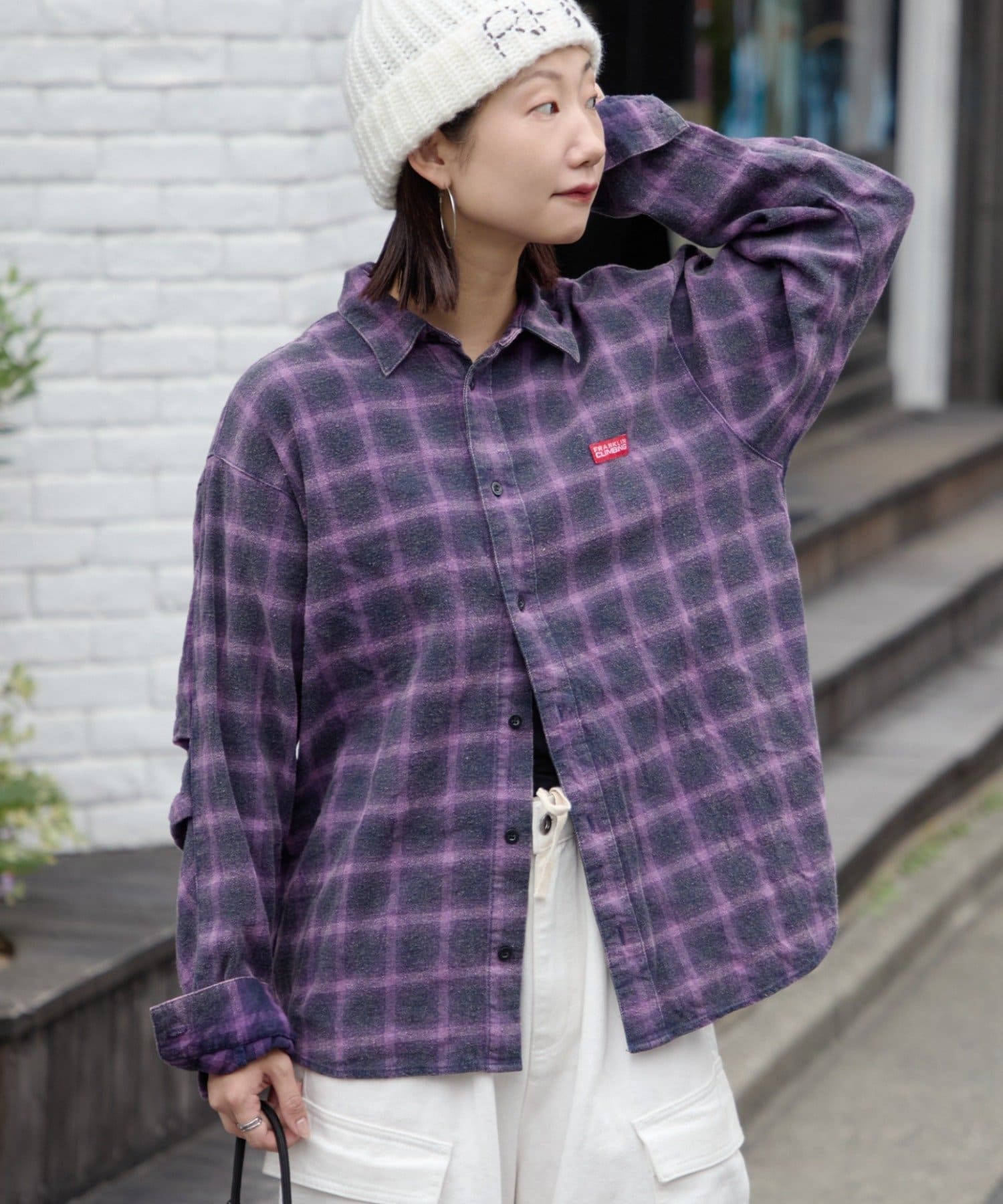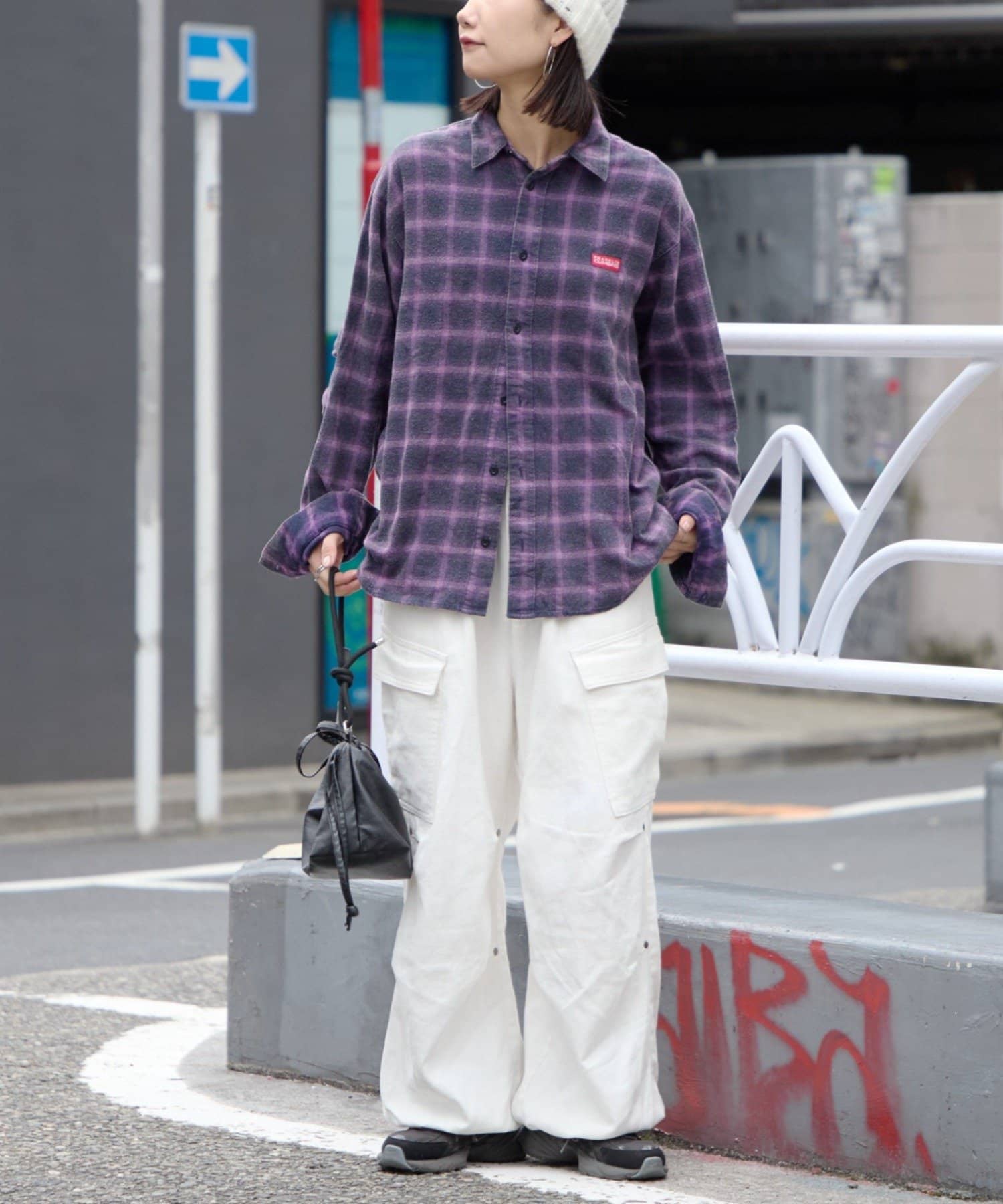 ユニセックスなデザインなので、女性がオーバーサイズで着用するのもおすすめです。