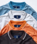 襟元からシャツやカットソーを覗かせれば、レイヤードスタイルも楽しめます。
