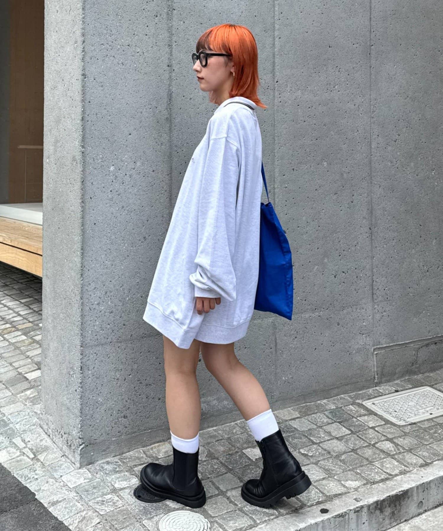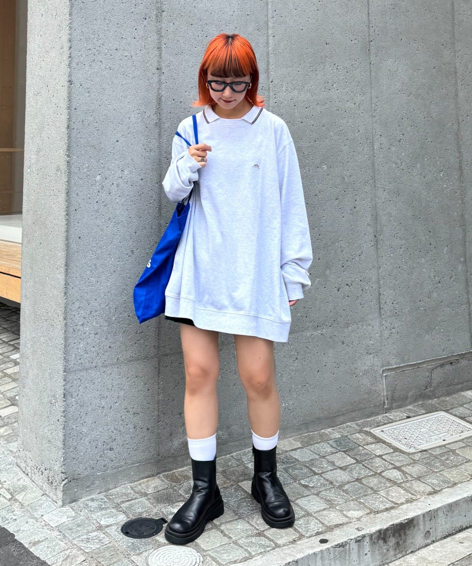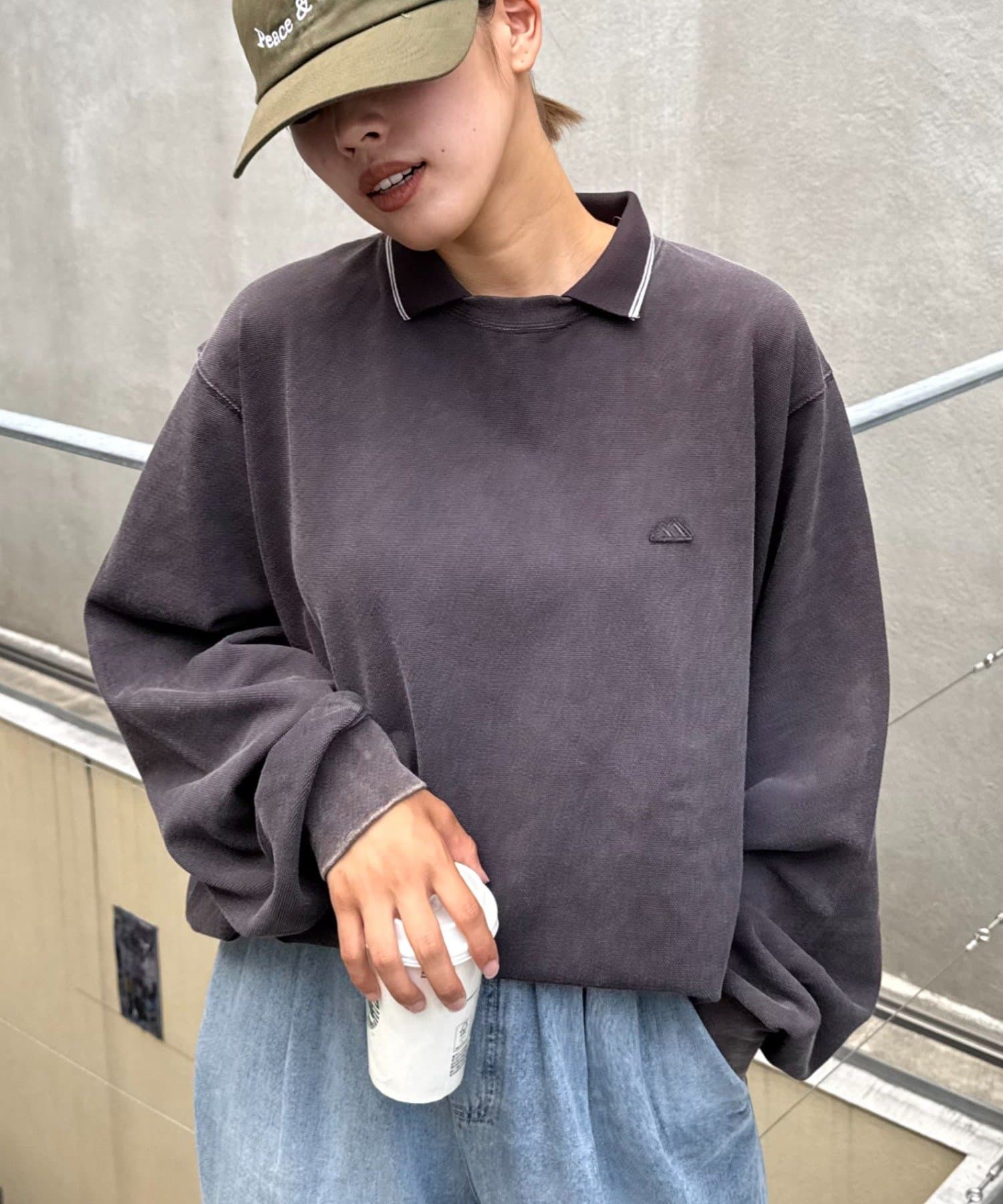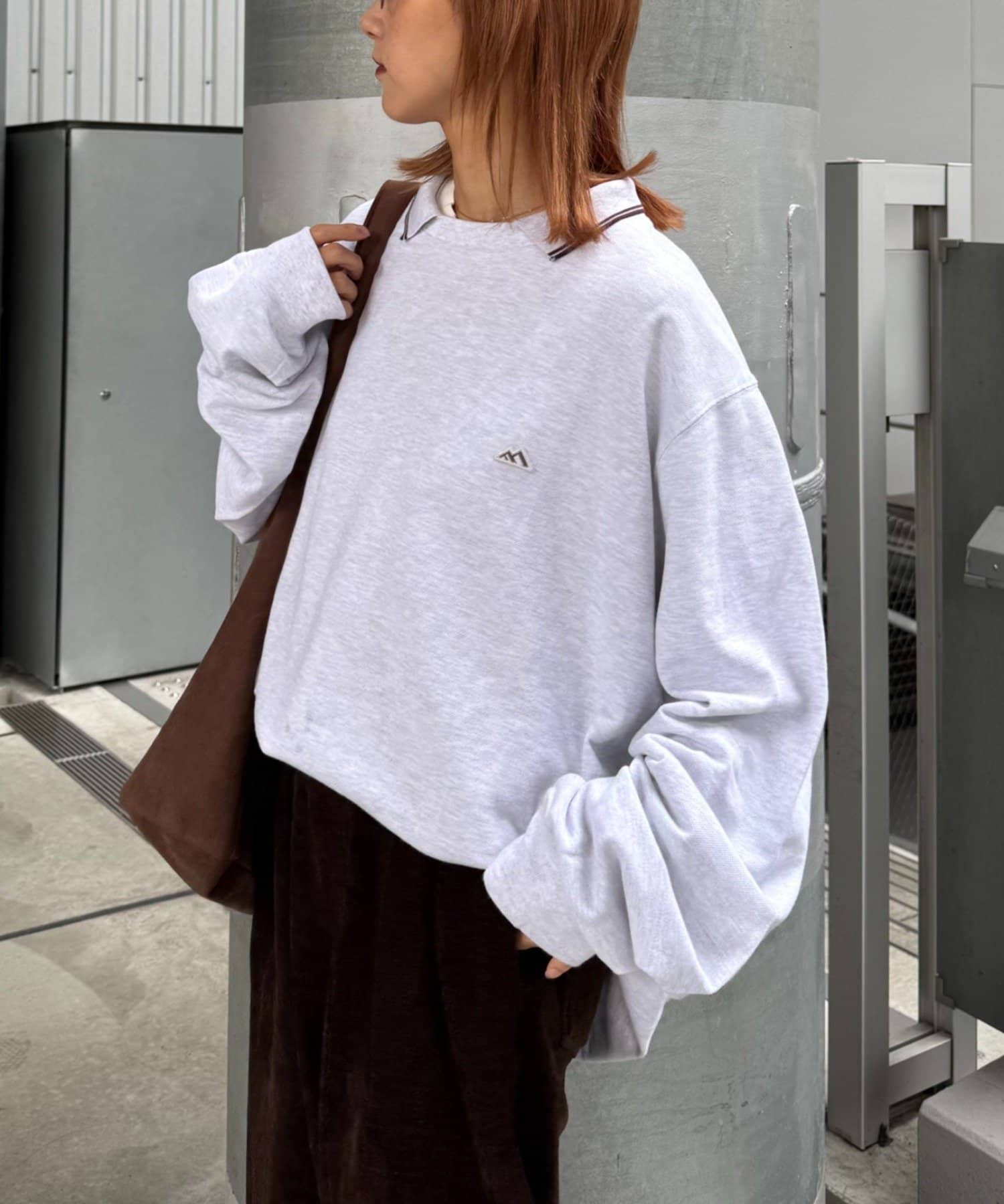 襟付きデザインが新鮮な、オーバーサイズスウェット。