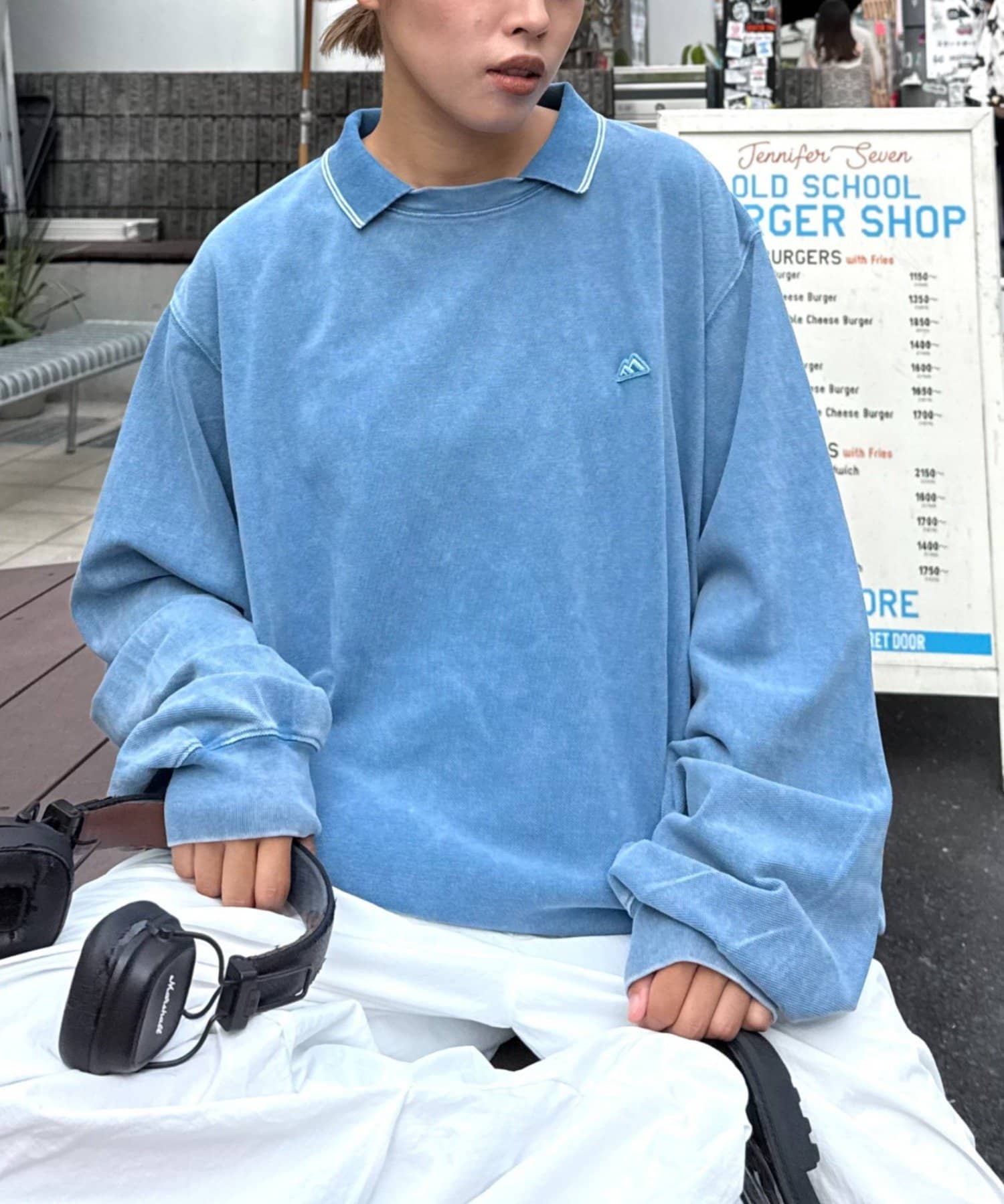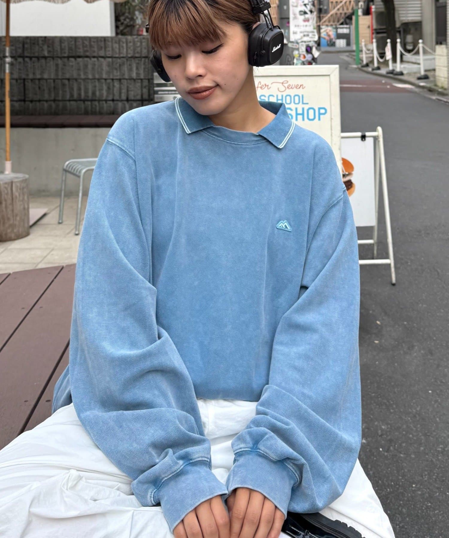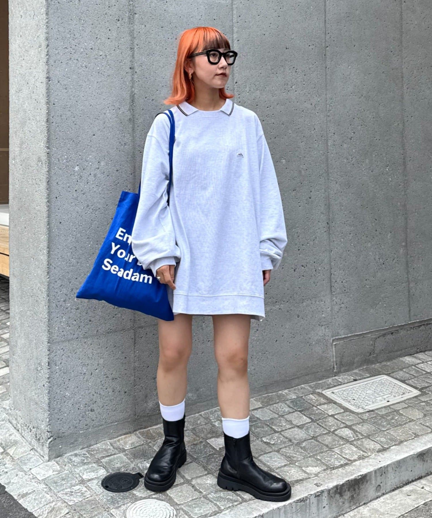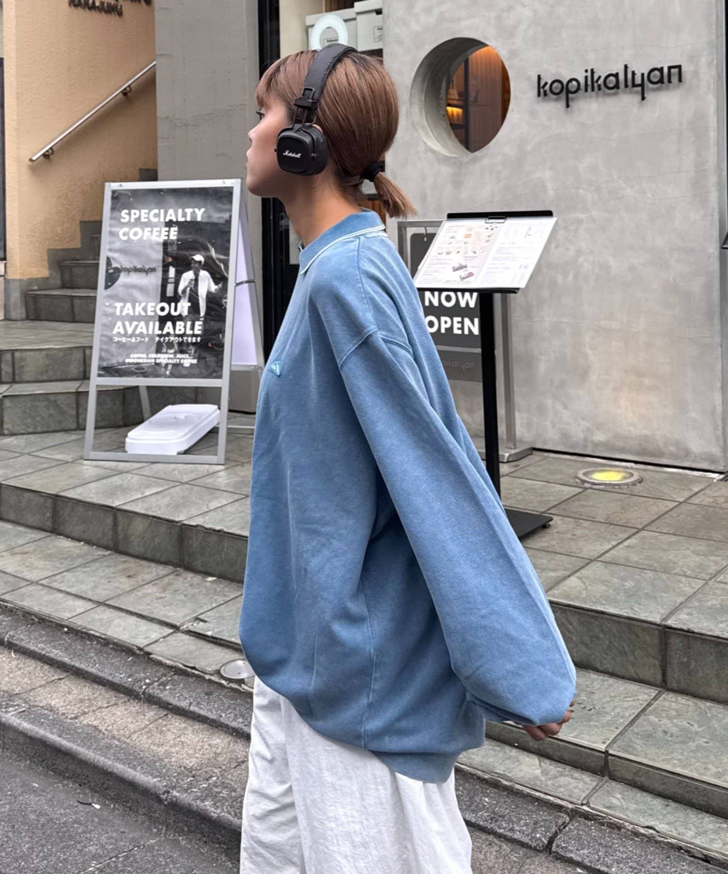 襟付きデザインが新鮮な、オーバーサイズスウェット。