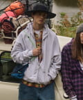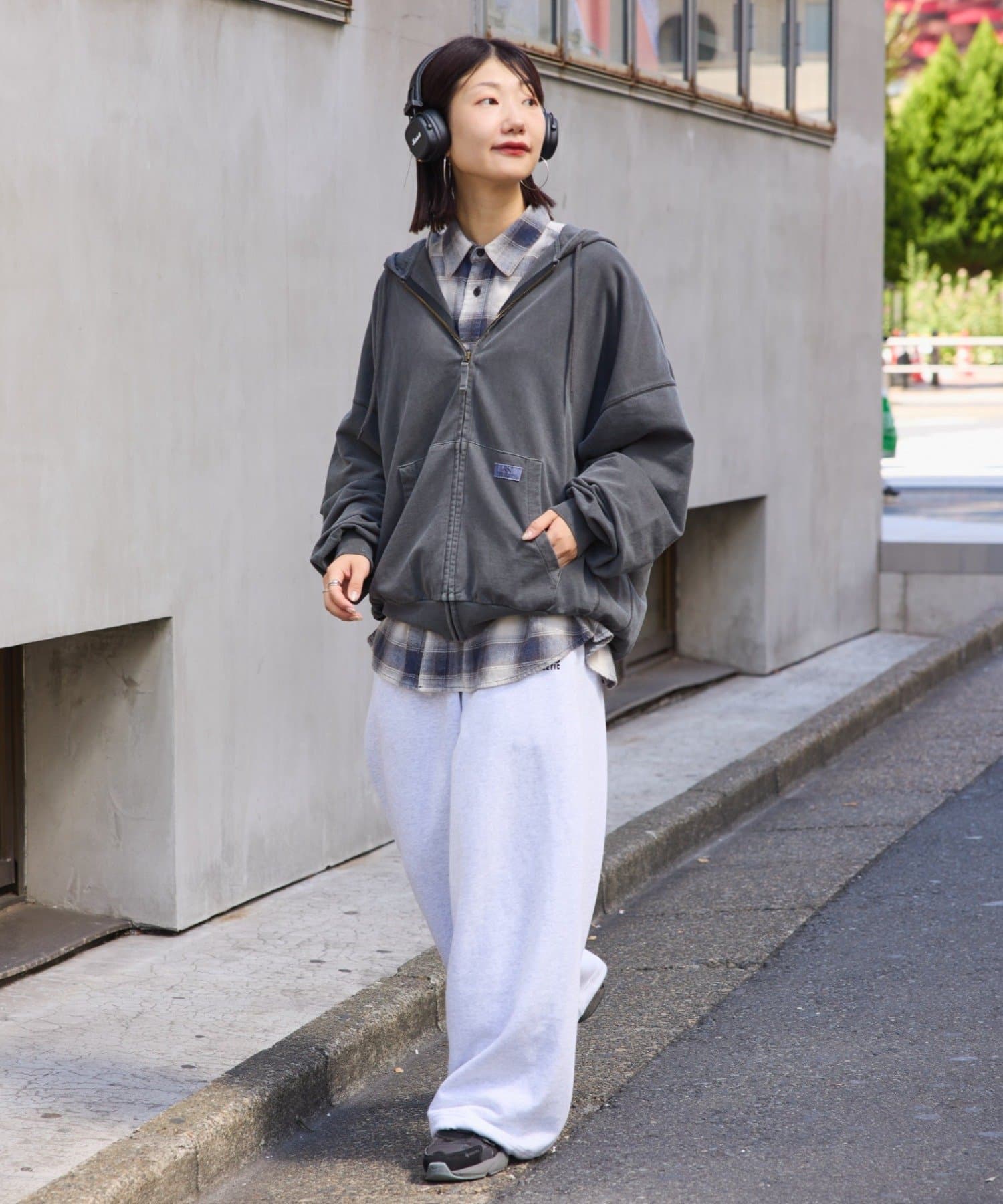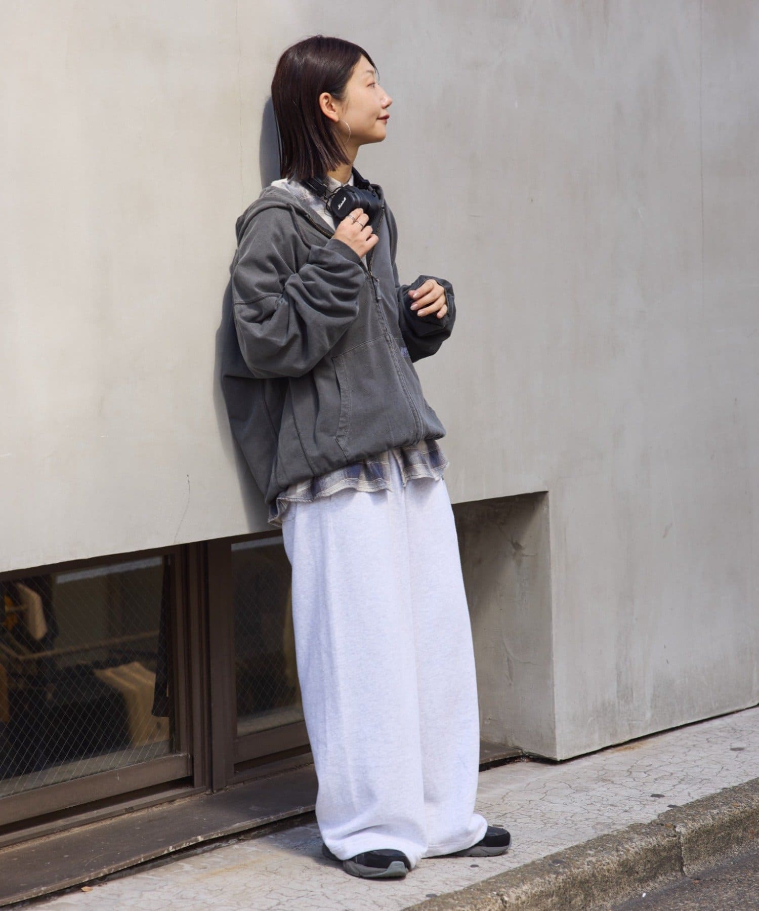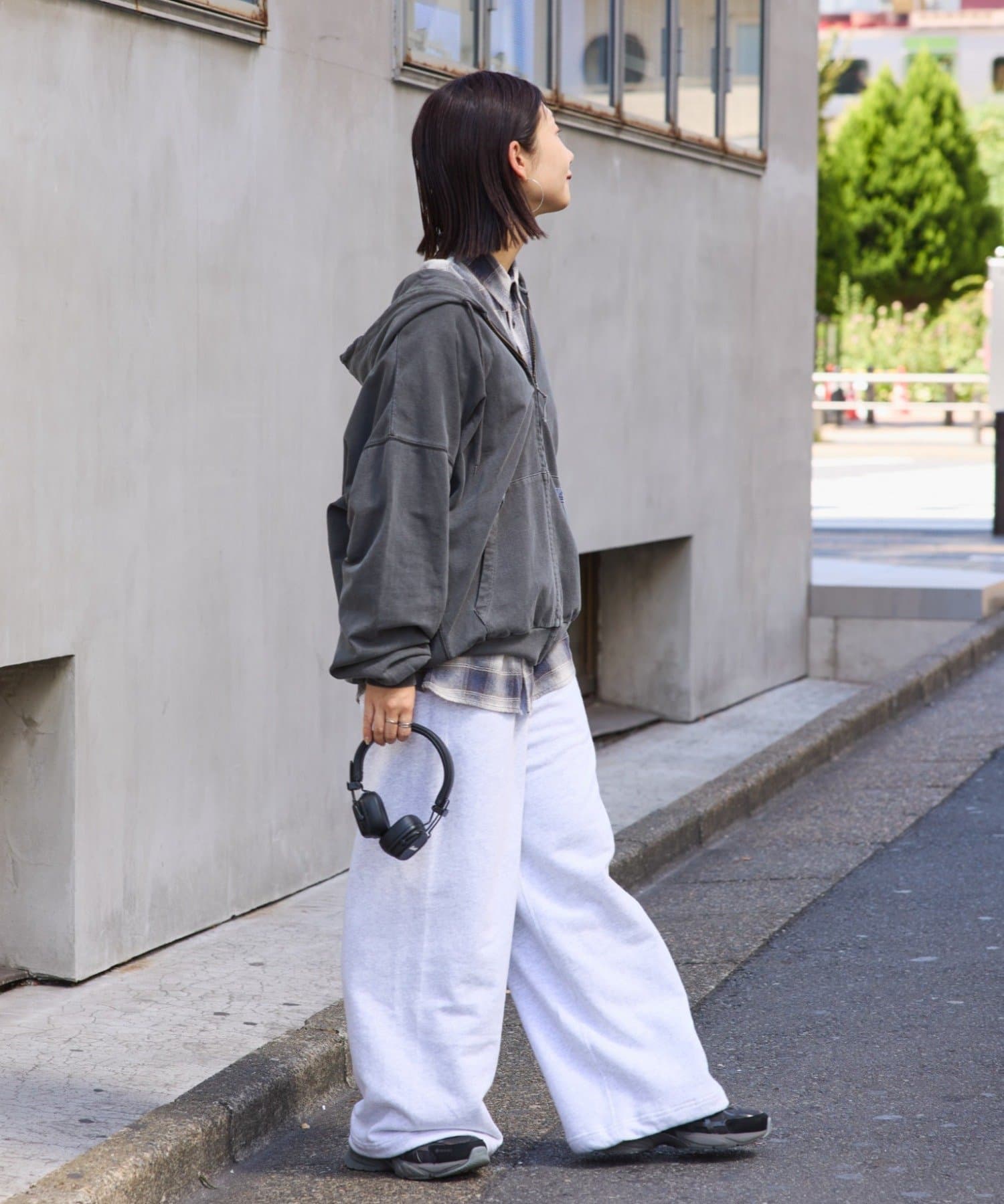 あえてスウェットパンツと合わせた、ラフコーデもおすすめ!