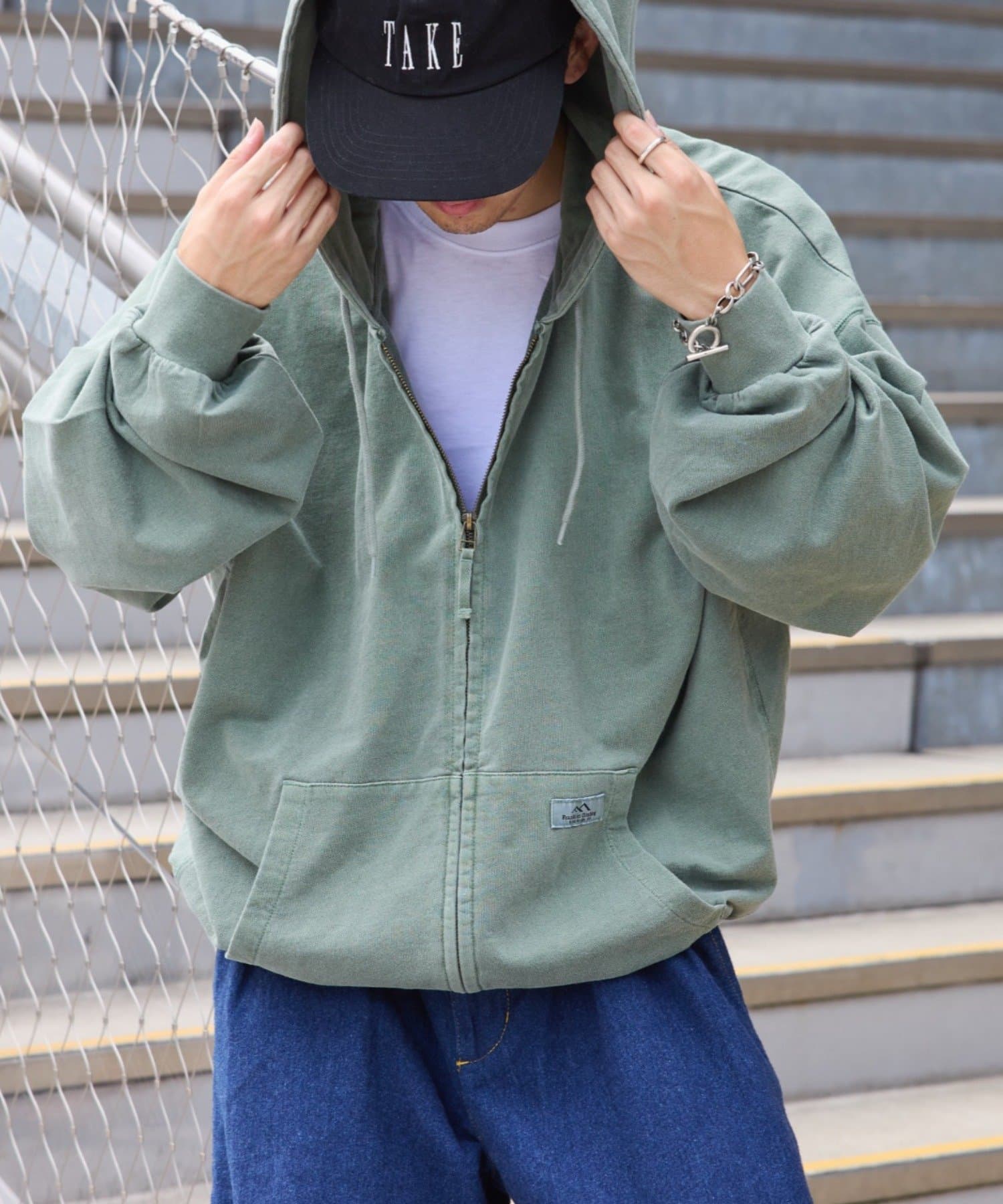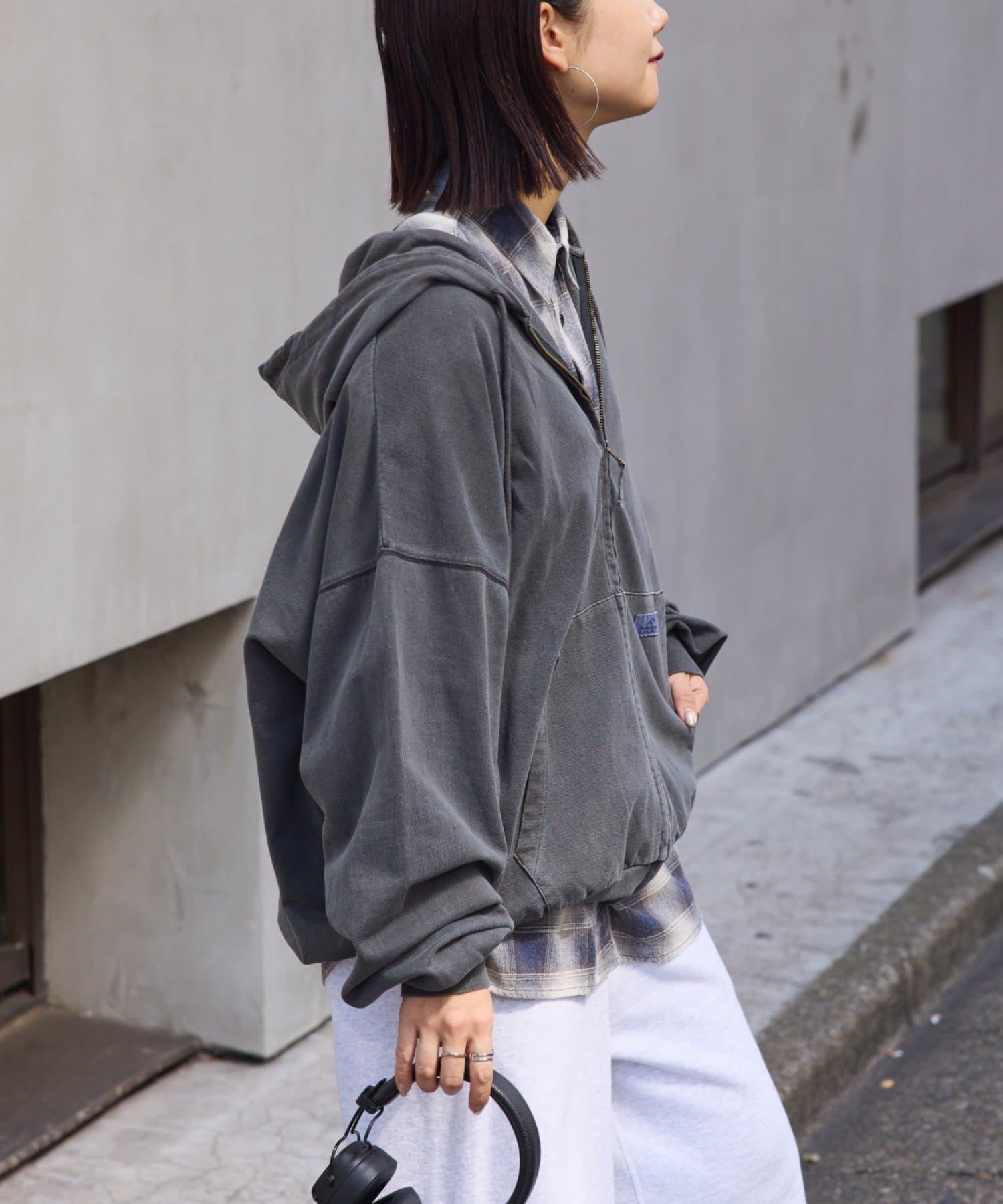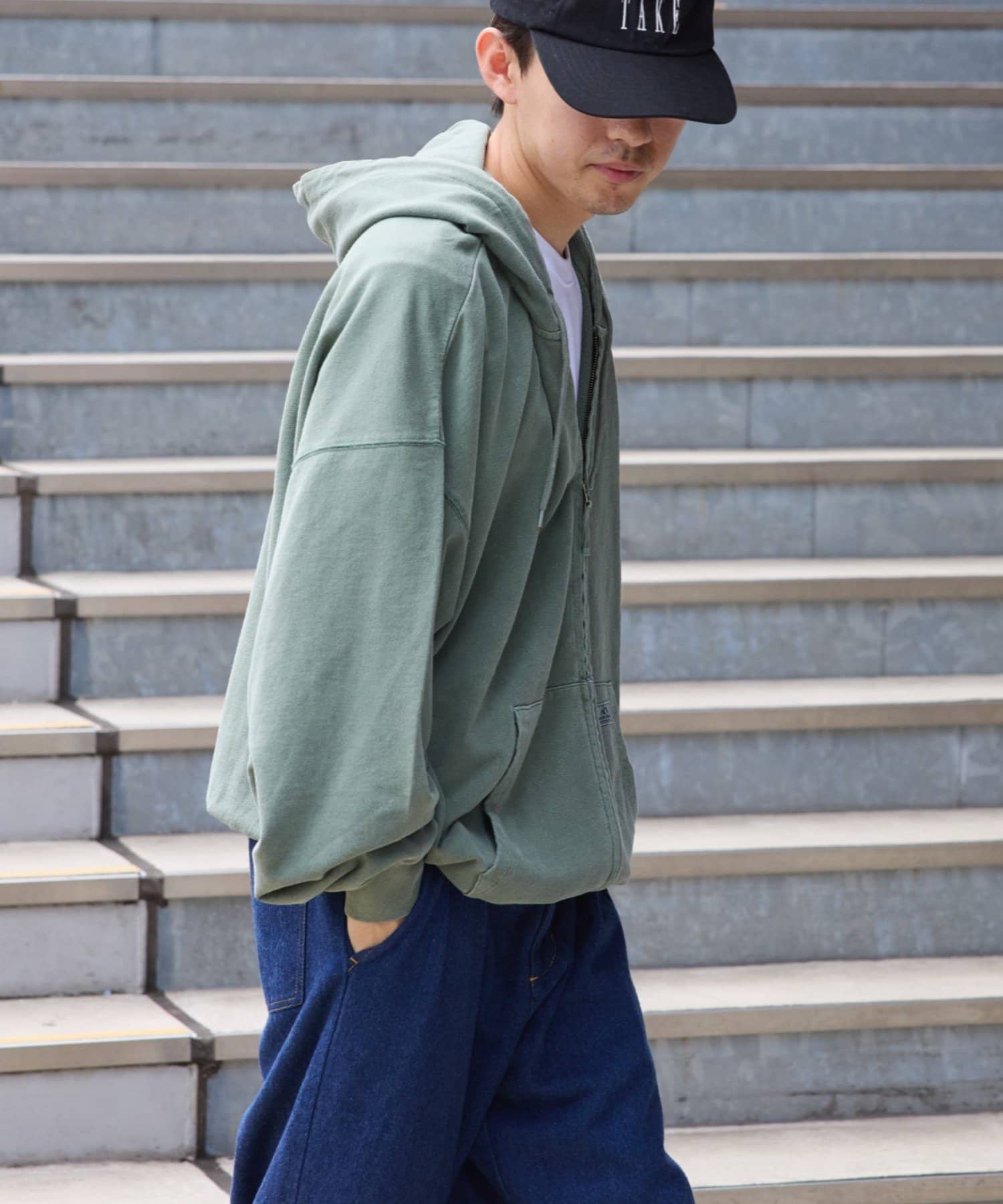 製品染めを全体に施し、着るだけで古着っぽさをプラス!