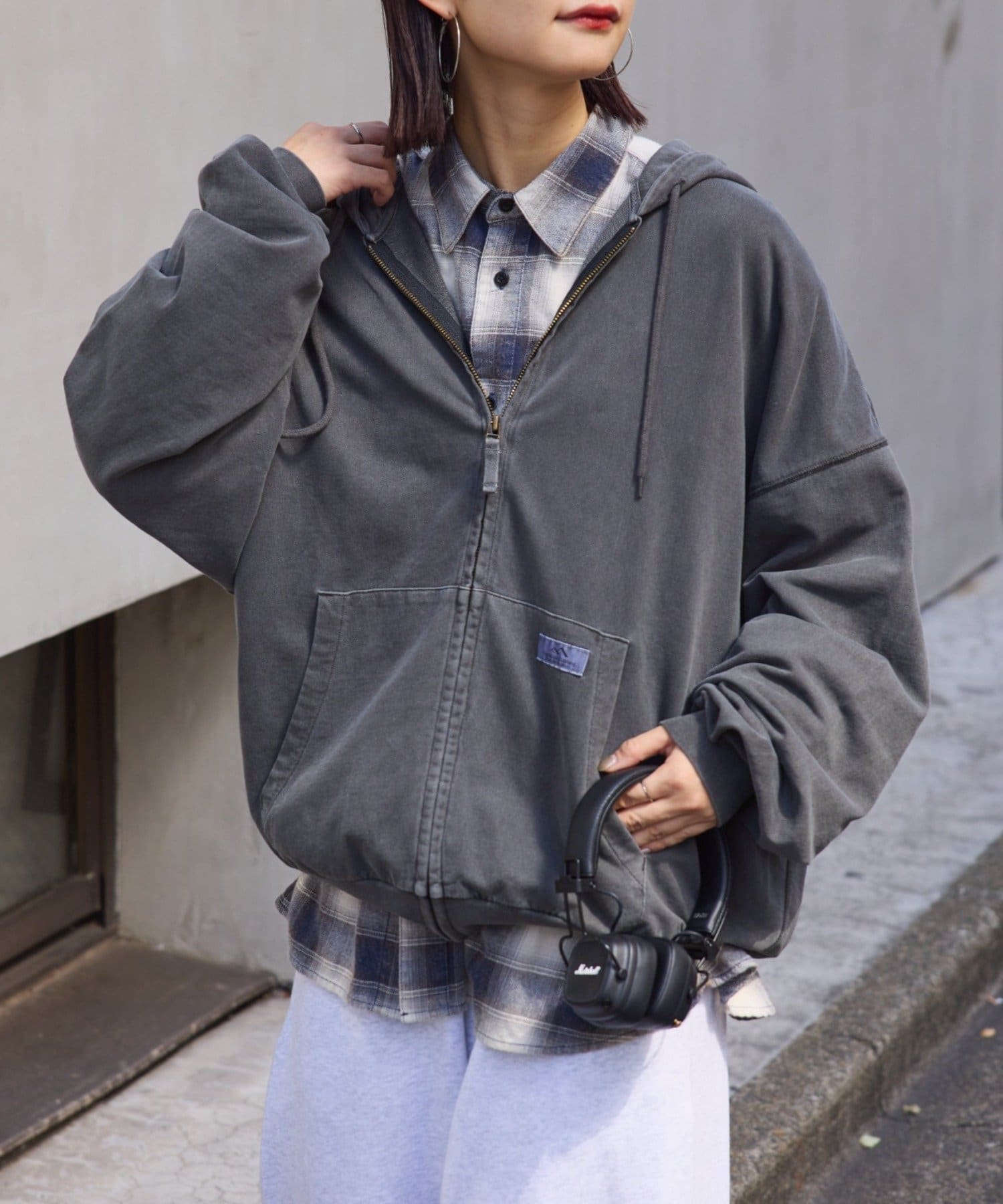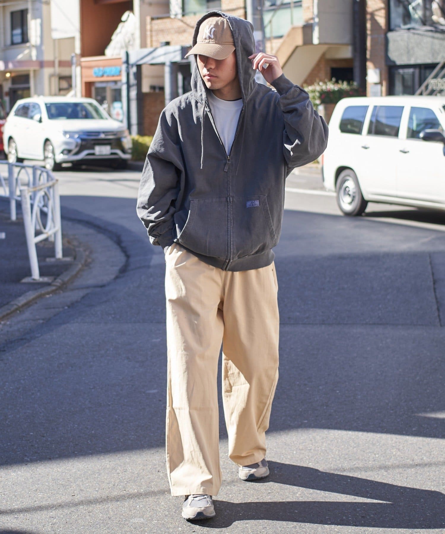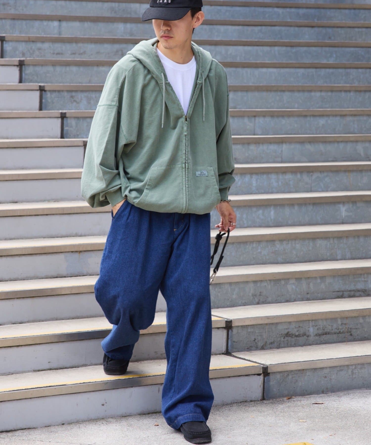 製品染めを全体に施し、着るだけで古着っぽさをプラス!