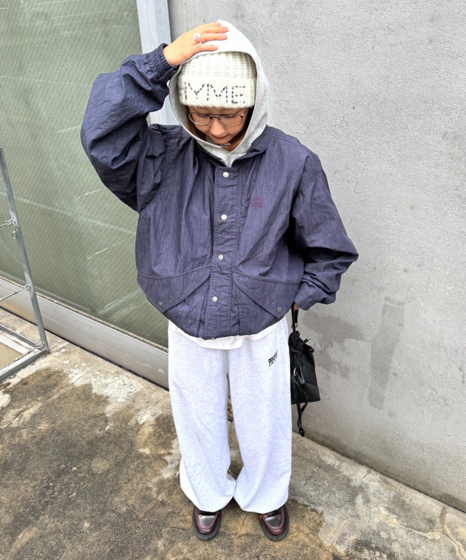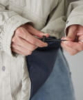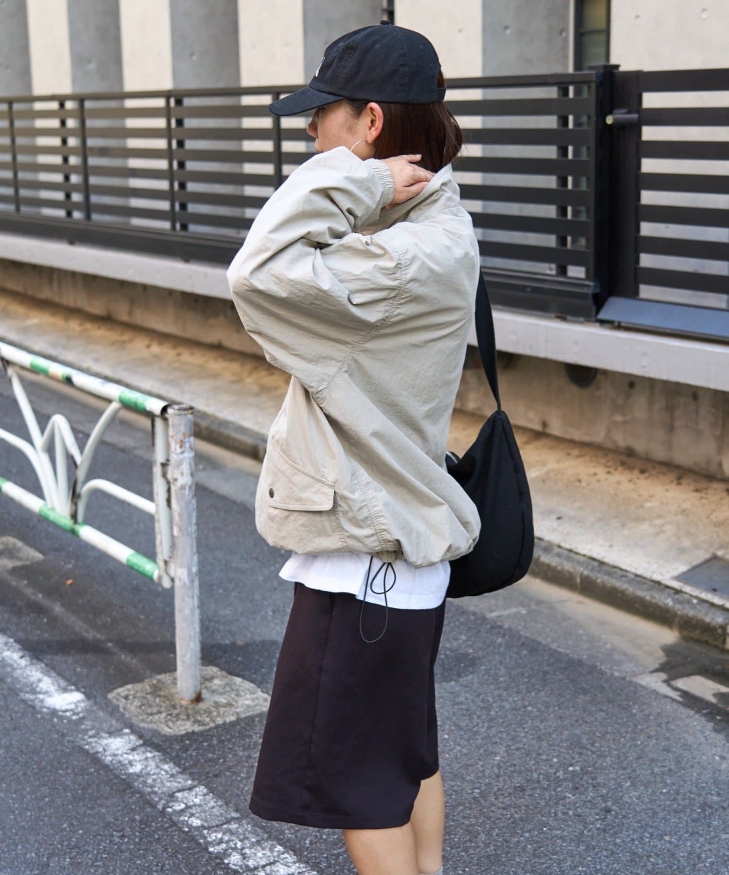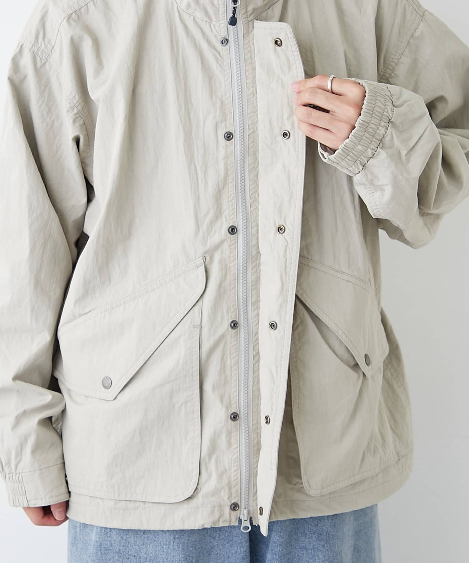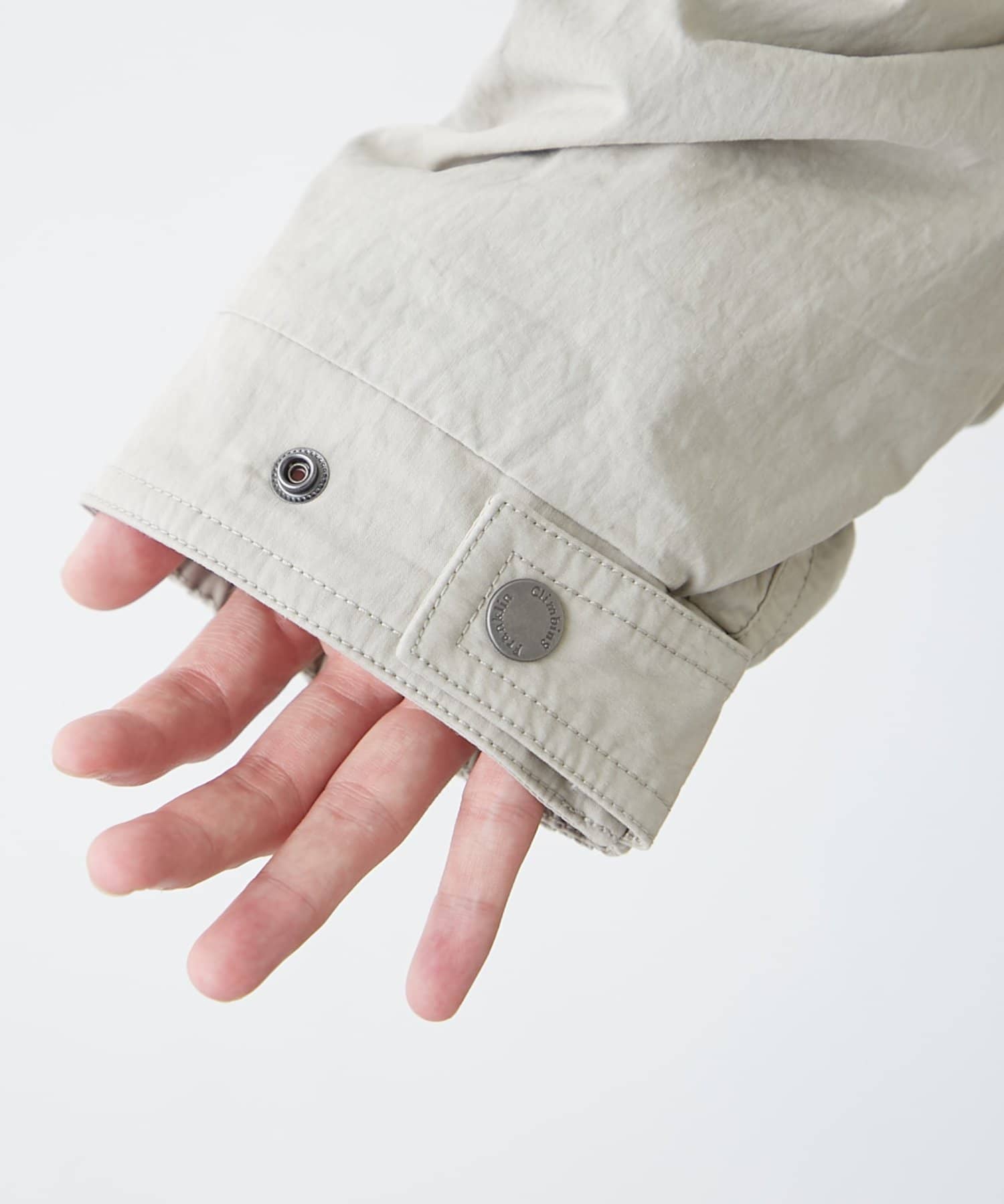 シルエットはゆったりとしており、リラックスした着心地。袖口は絞ることができ、防風性を高めることも可能です。